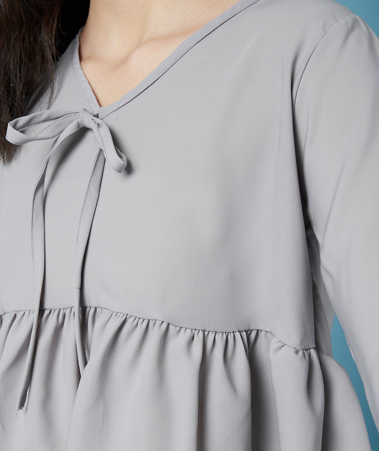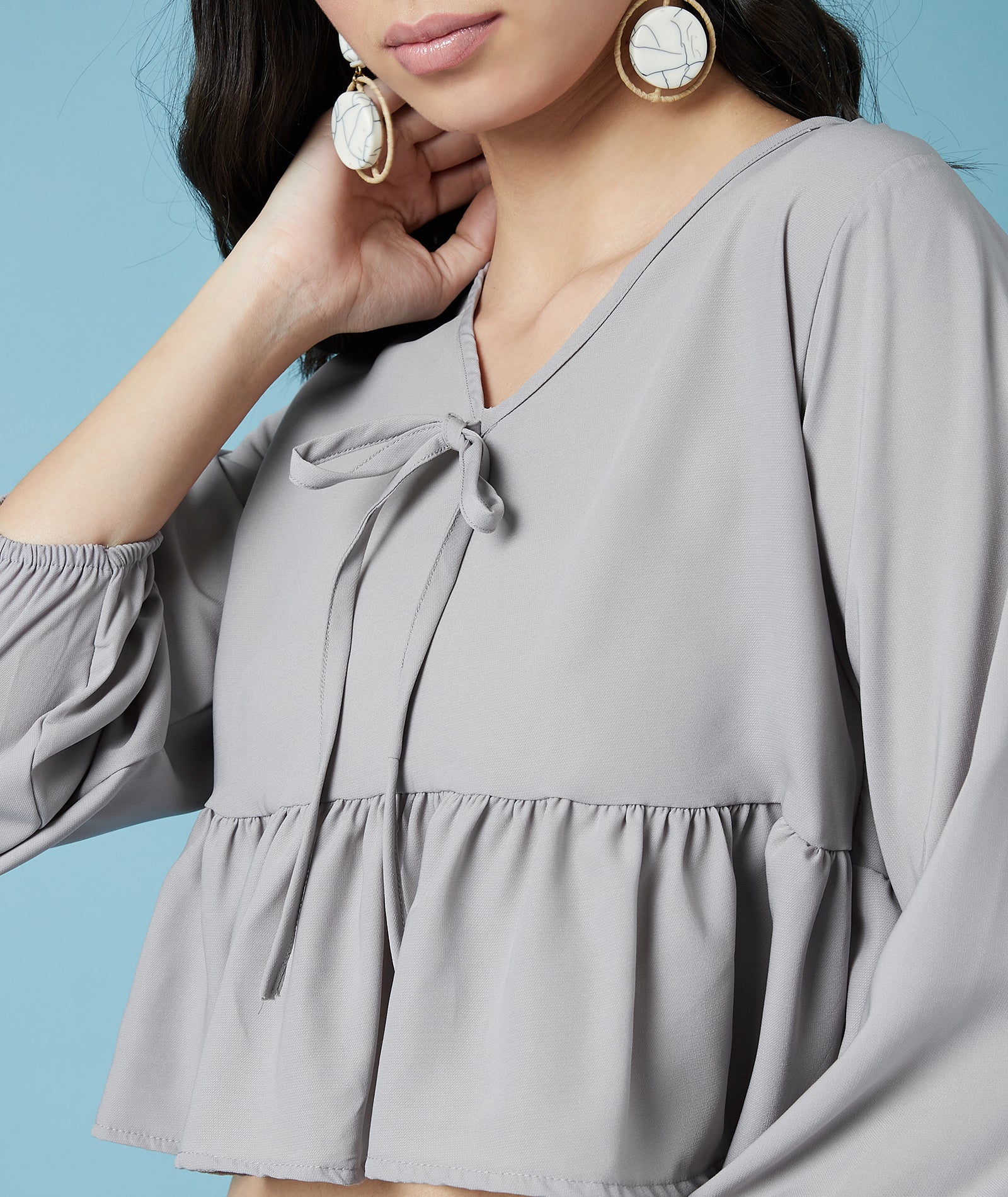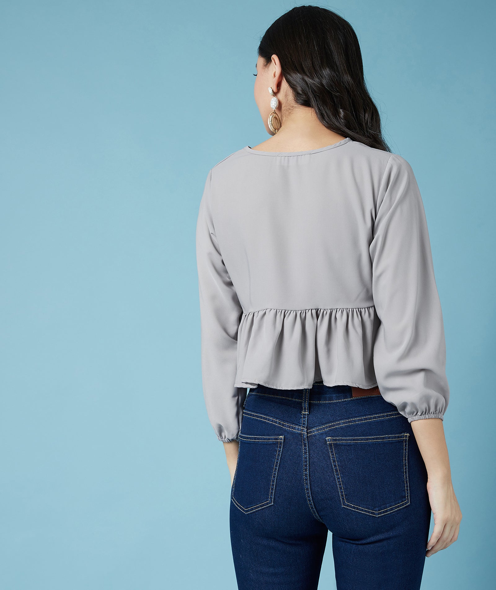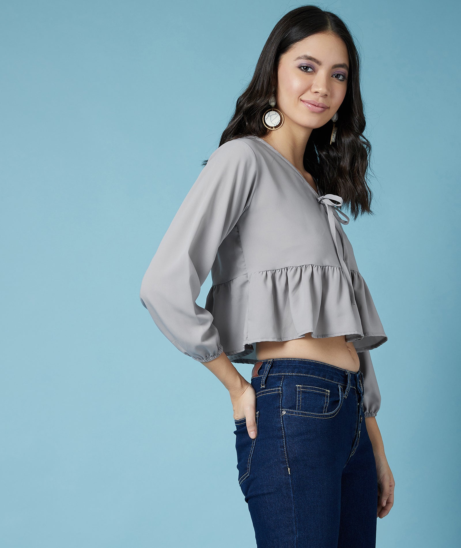 Chimpaaanzee Women Babydoll Cropped Grey Top