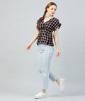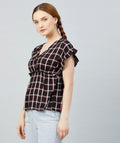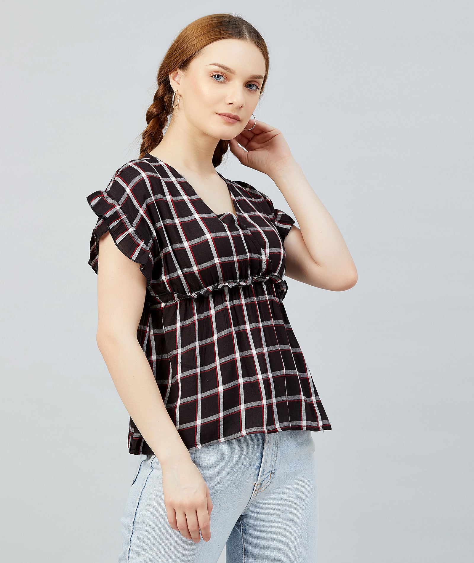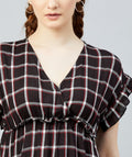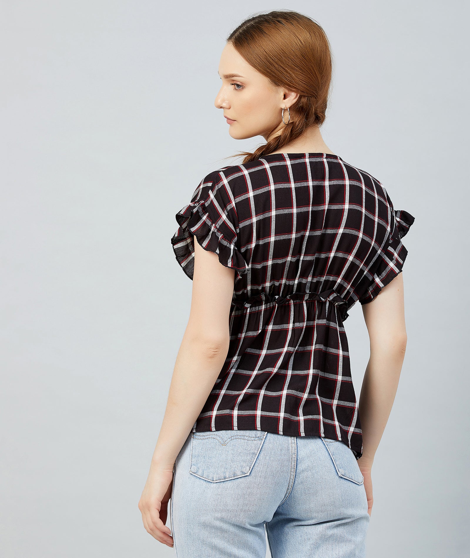 Chimpaaanzee Women Black and Red Checks Viscose Peplum Top