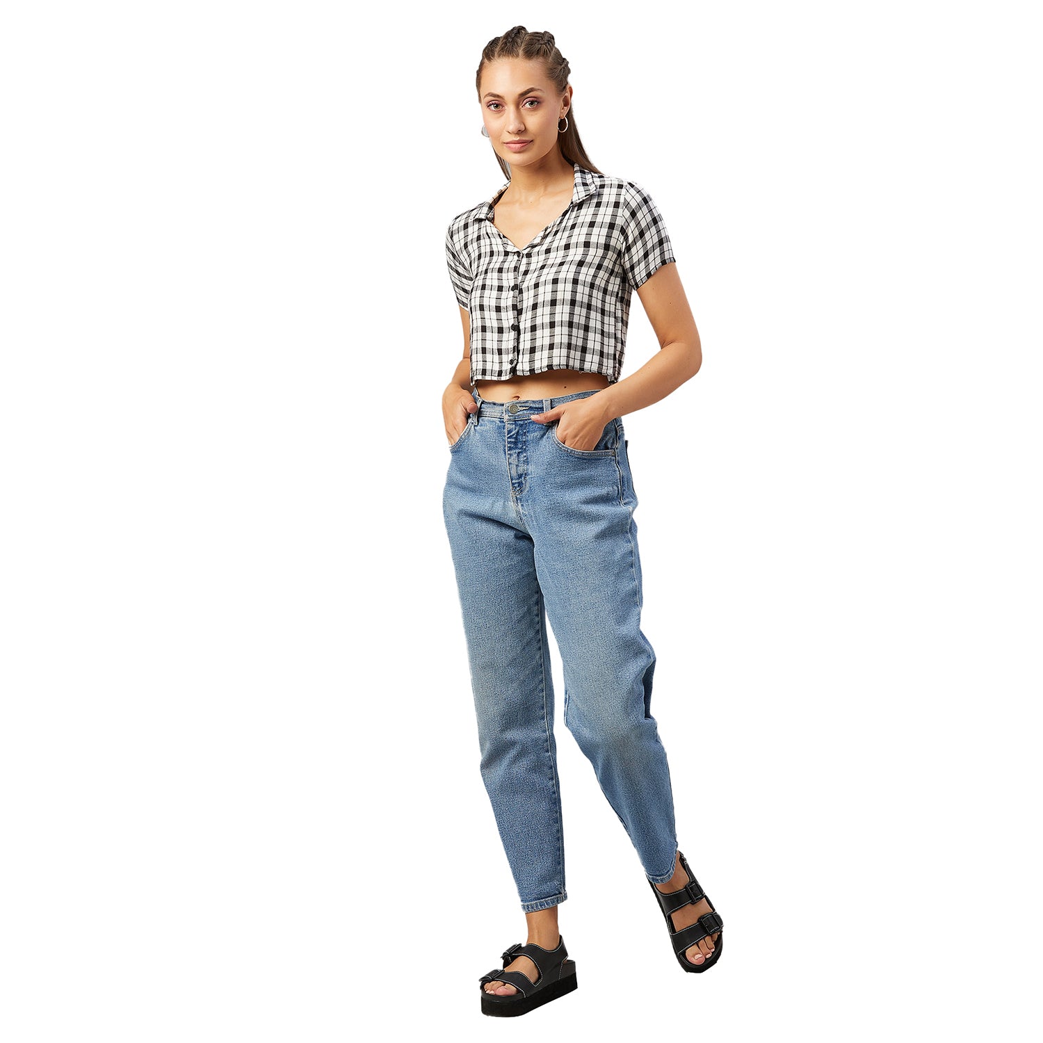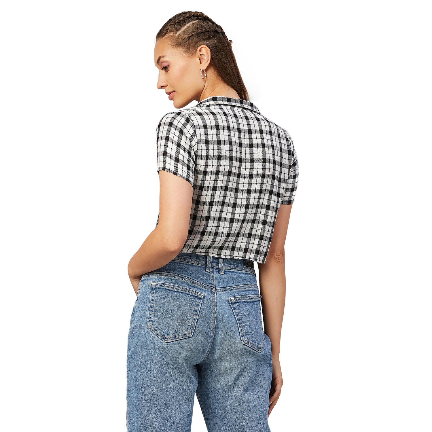 Chimpaaanzee Women Black and White Checkered Viscose Crop Shirt