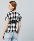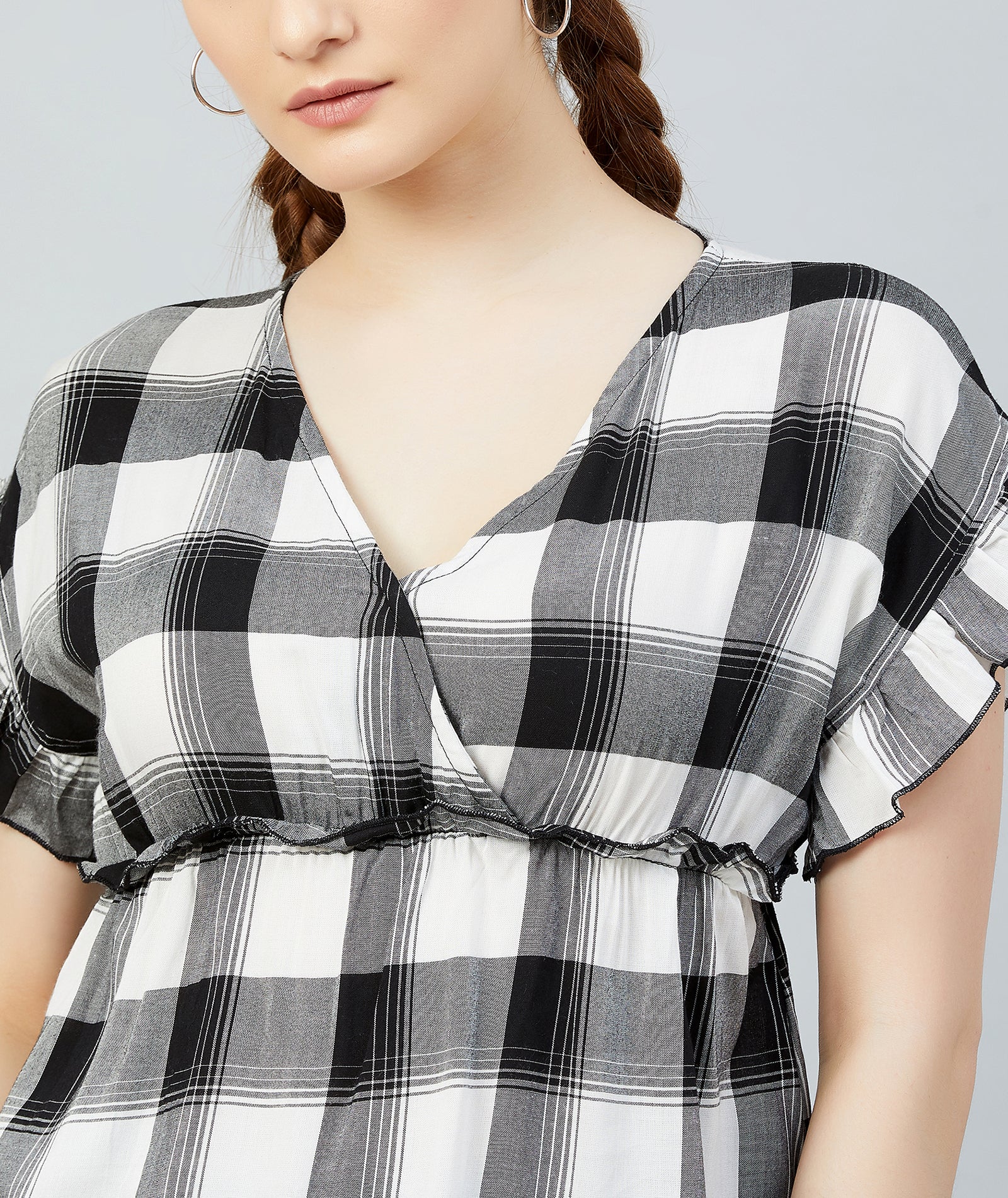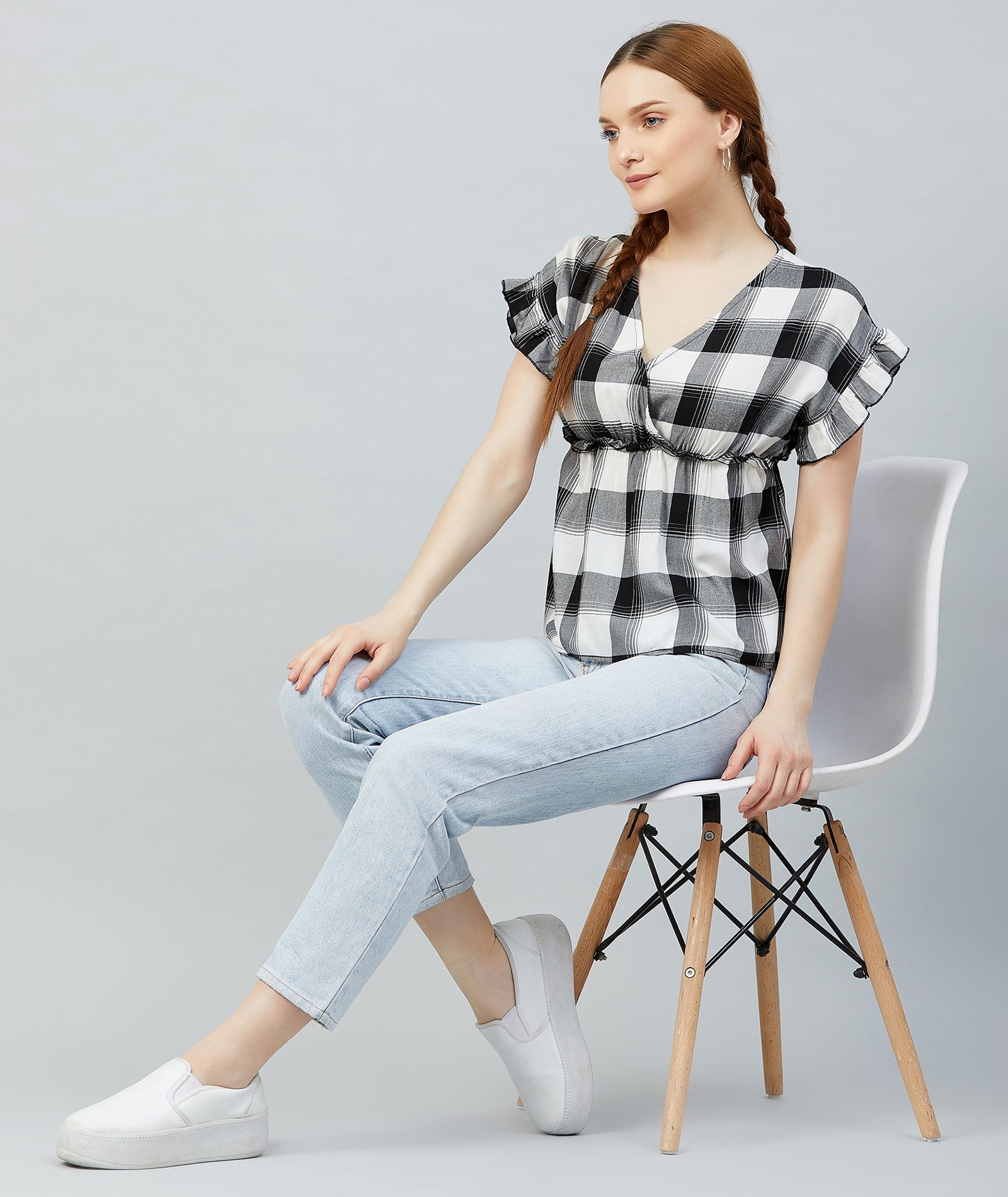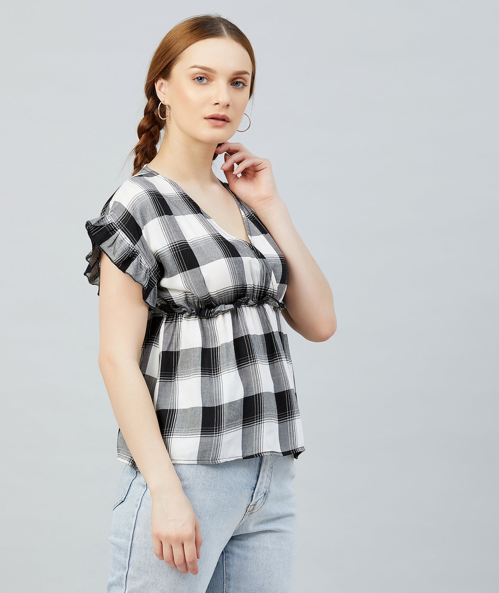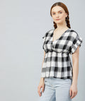 Chimpaaanzee Women Black and White Checks Viscose Peplum Top