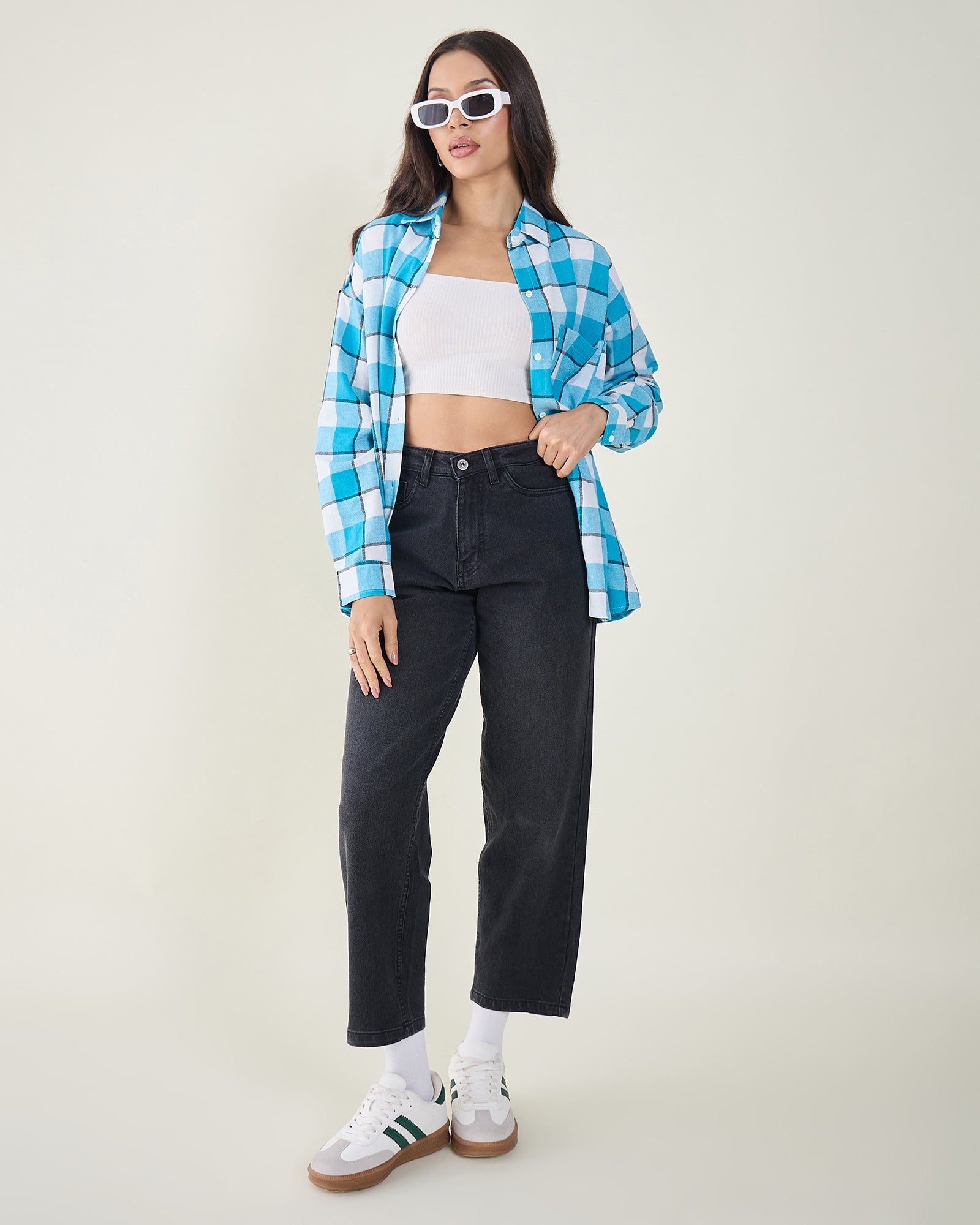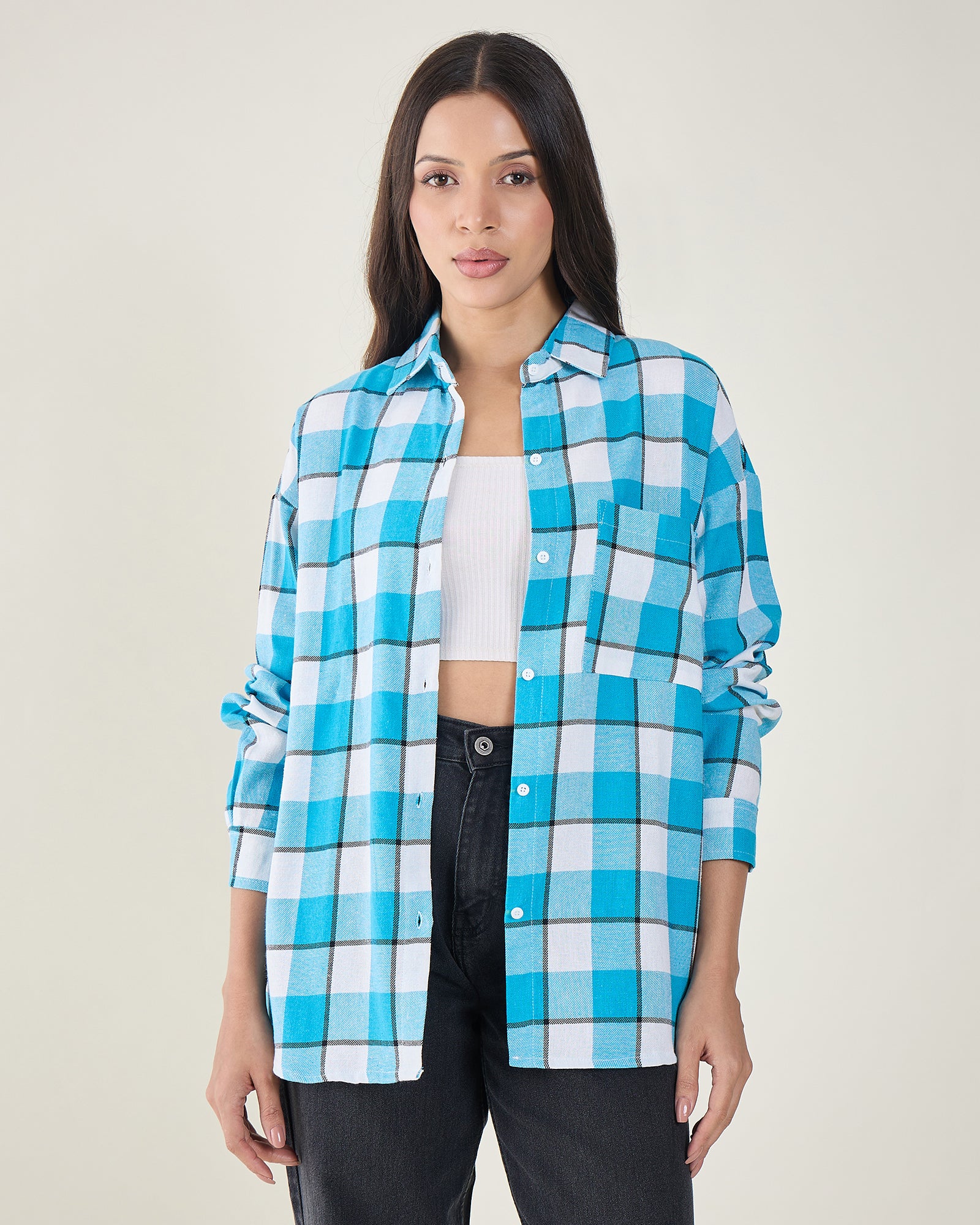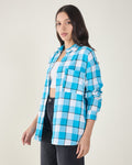 Chimpaaanzee Women Skyblue & White Oversized Shirt