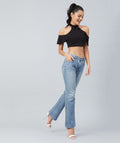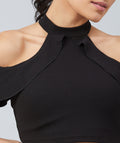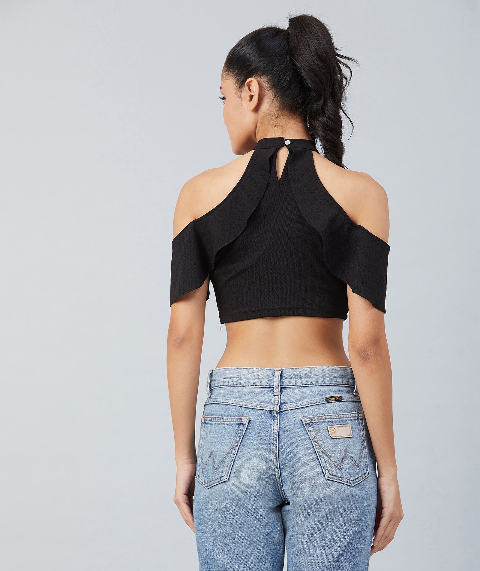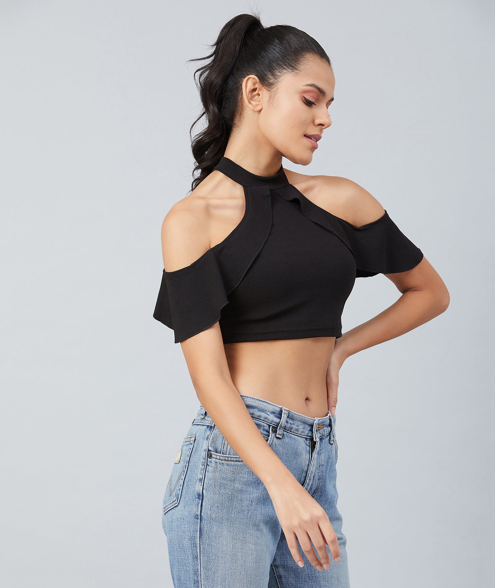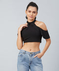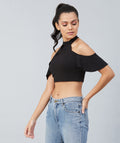 Chimpaaanzee Women Black Cold Shoulder Style Crop Top