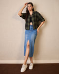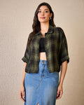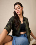Chimpaaanzee Women Green & Black Crop Shirt