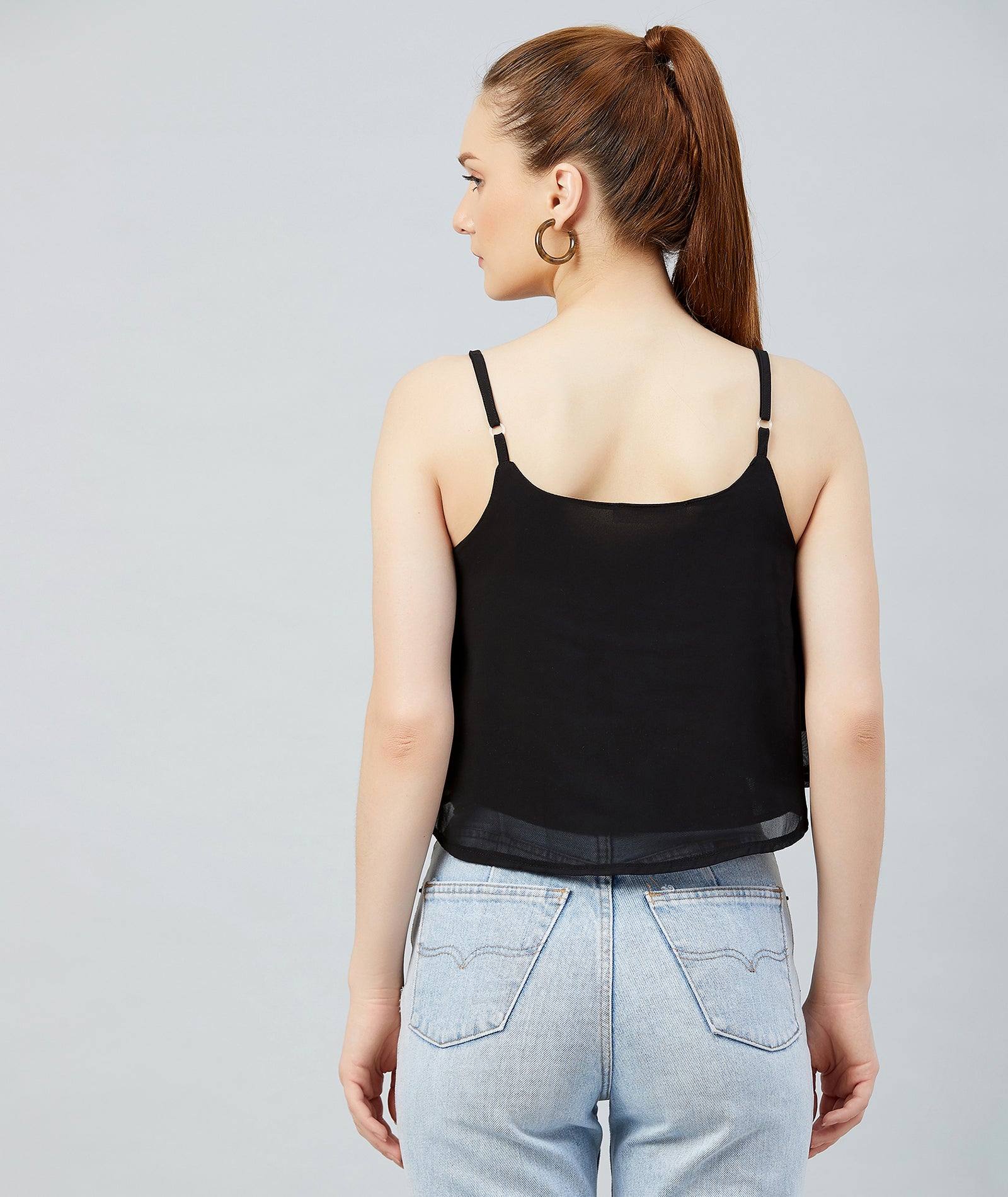 Chimpaaanzee Georgette Noodle Strap Crop Top