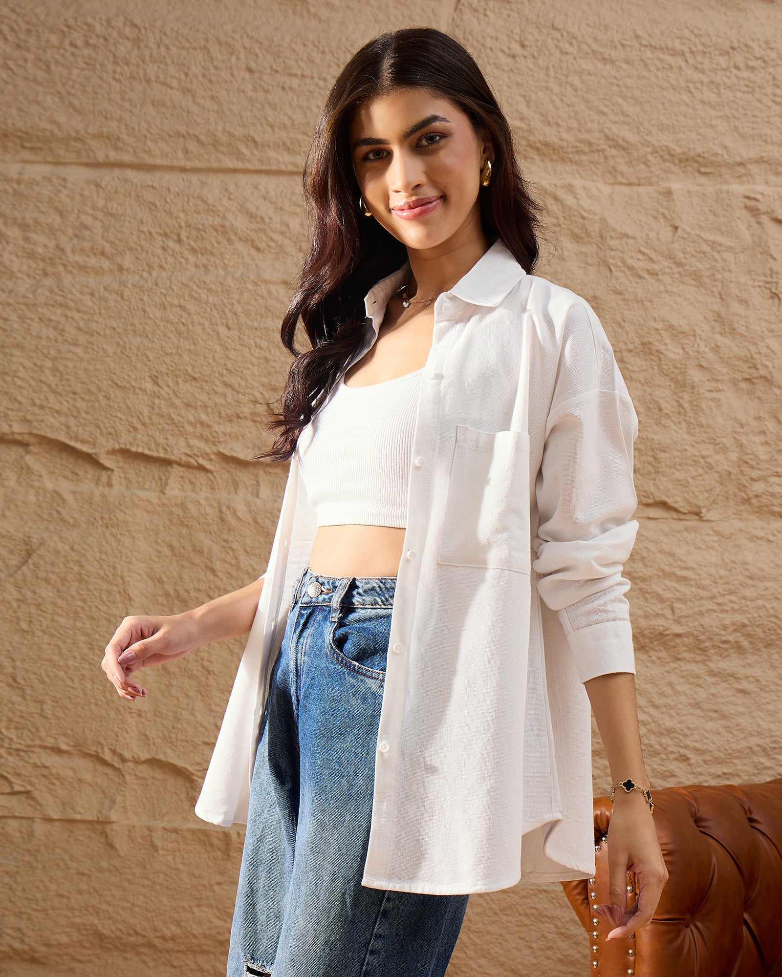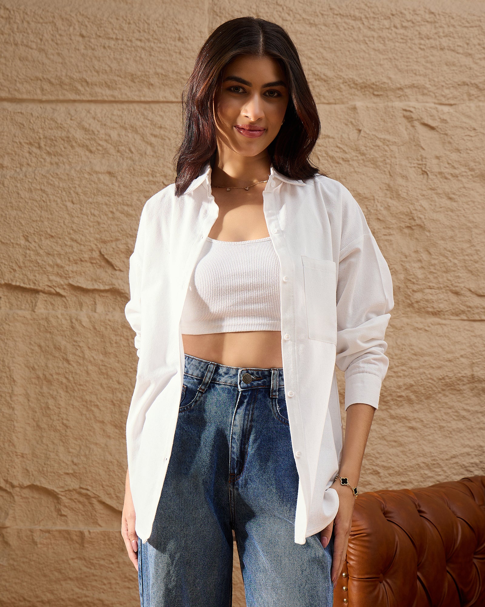 This model has a height of 5 feet 7 inches and is wearing a Top of Size "S"