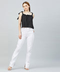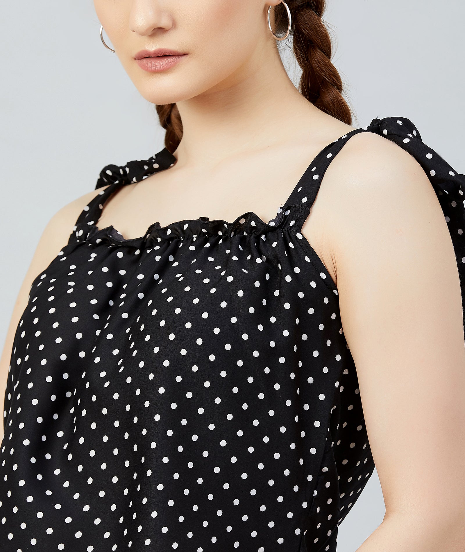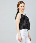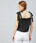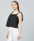 Chimpaaanzee Women Black Polka Doted Crepe Ruffled Top