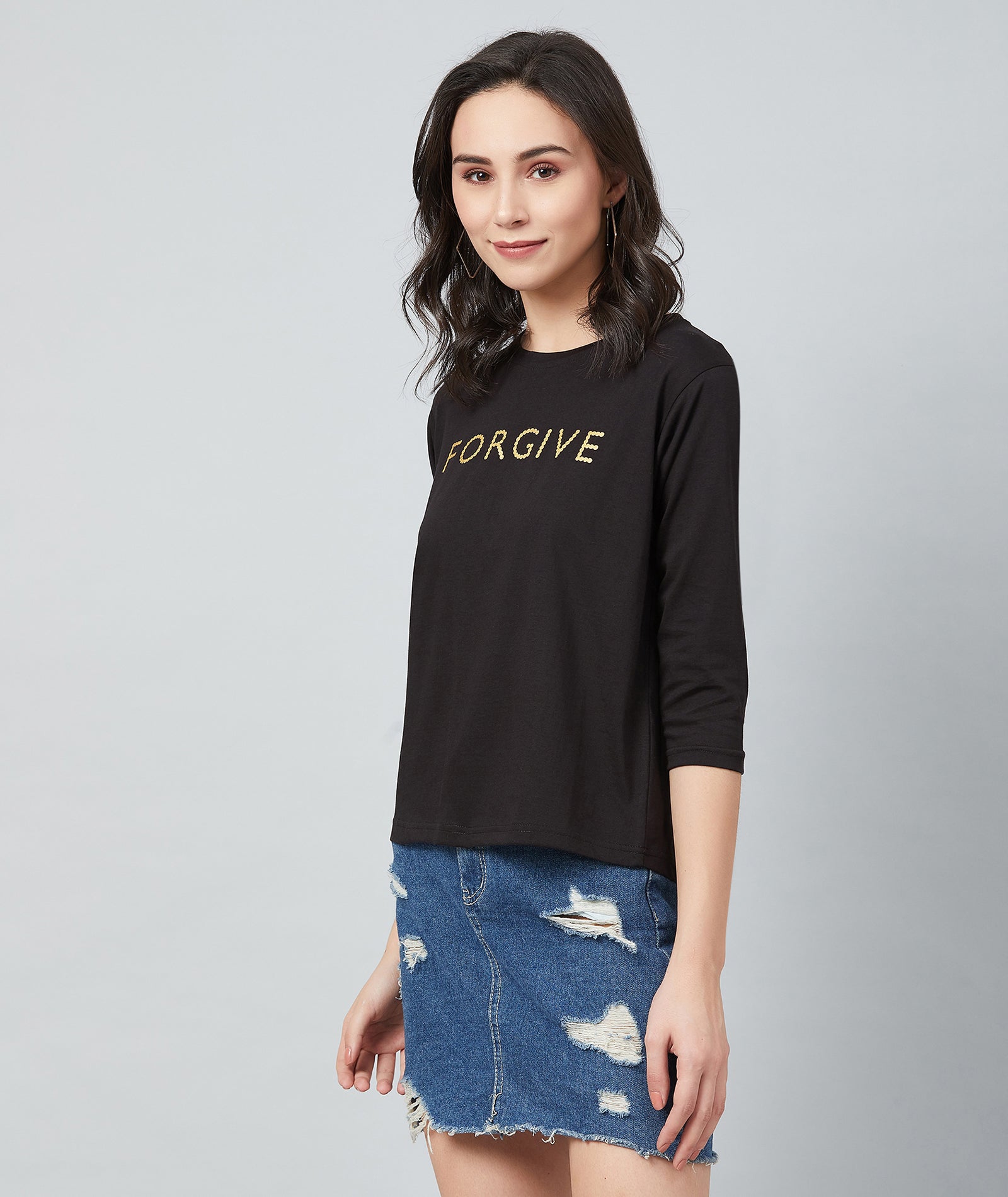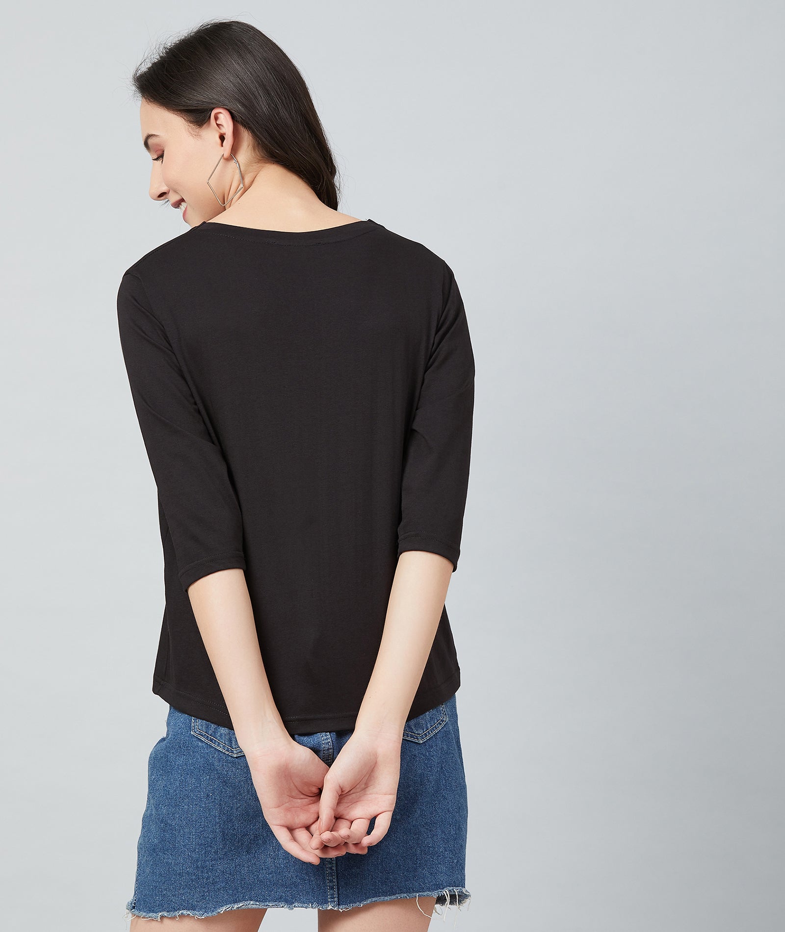 Chimpaaanzee Women Black Round Neck Full Sleeve T-shirt