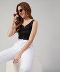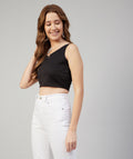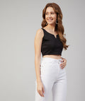 Chimpaaanzee Women Black Solid Bodycon Crop Top