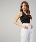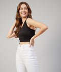 Chimpaaanzee Women Black Solid Bodycon Halter Neck Crop Top