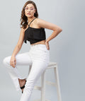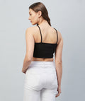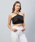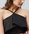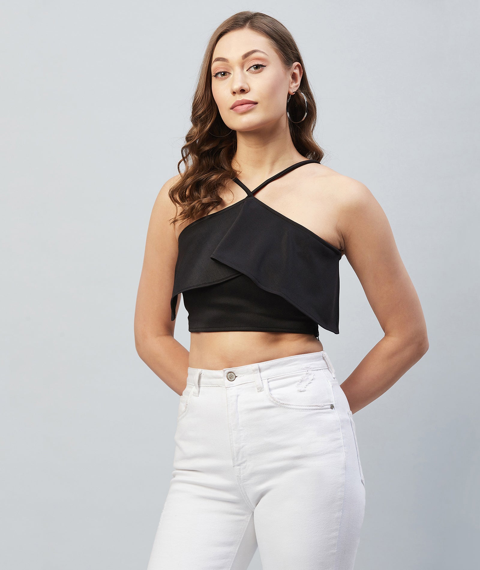 Chimpaaanzee Women Black Solid Ruffled Crop Top
