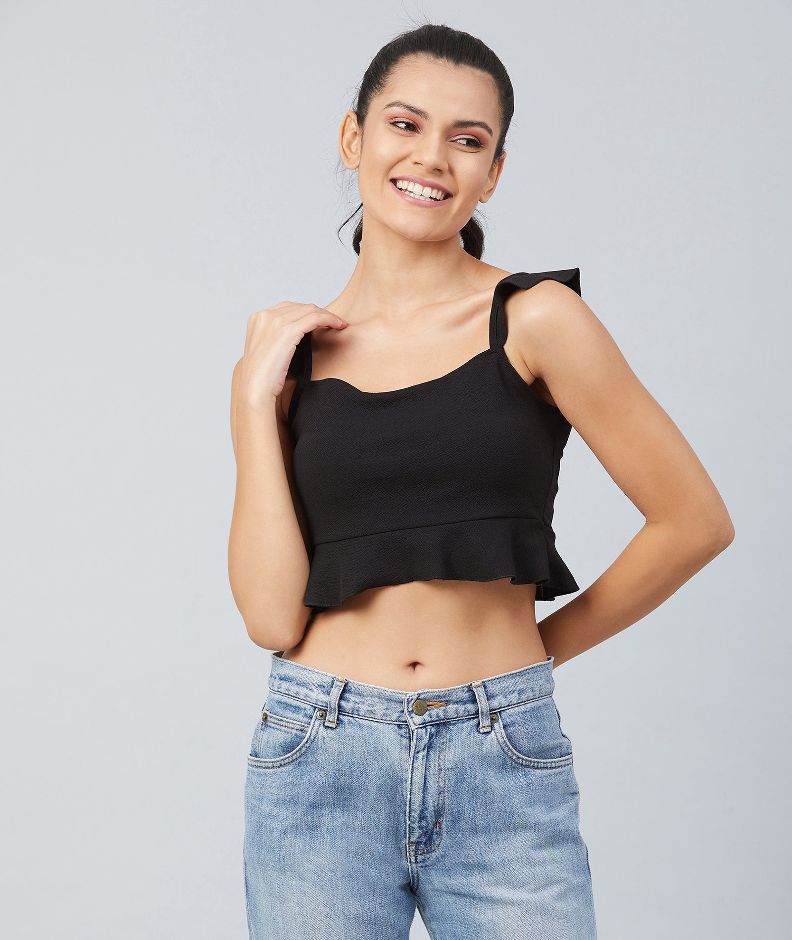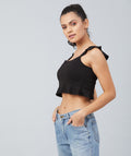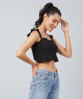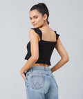 Chimpaaanzee Women Black Square Neck & Ruffle Sleeve Crop Top