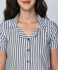 Chimpaaanzee Women Black Viscose Crop Striped Shirt