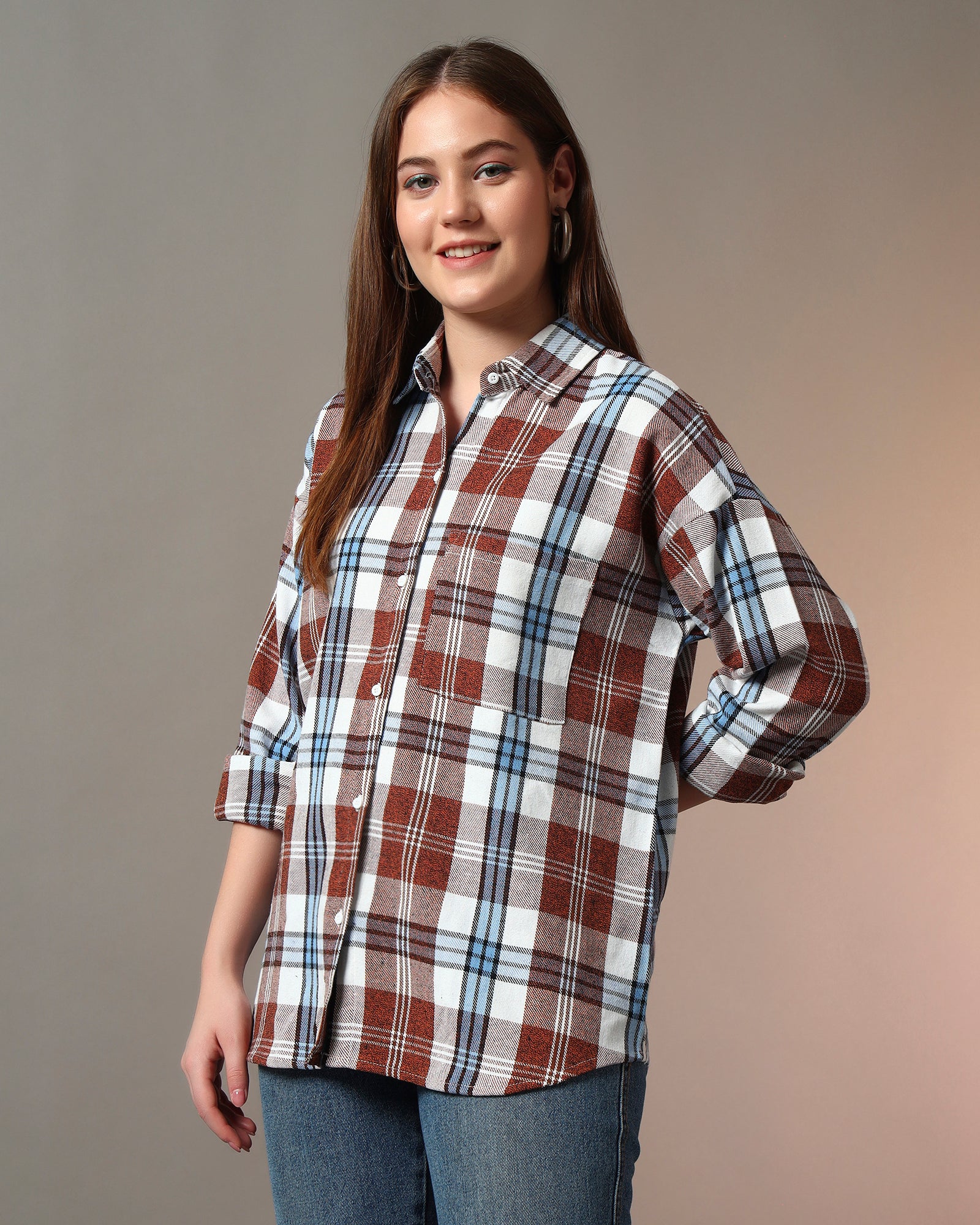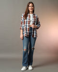 Chimpaaanzee Women White & Orange Oversized Shirt