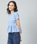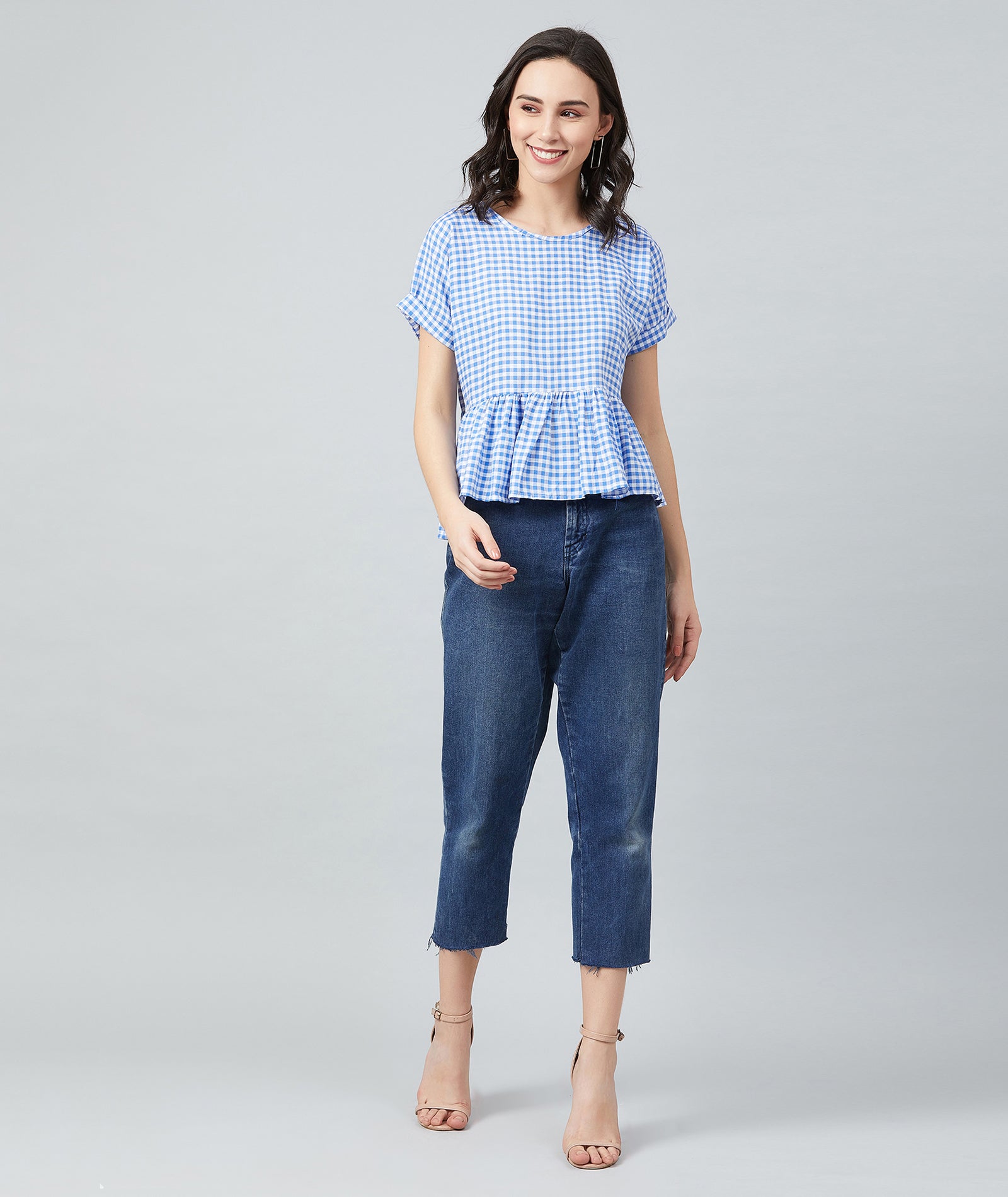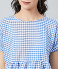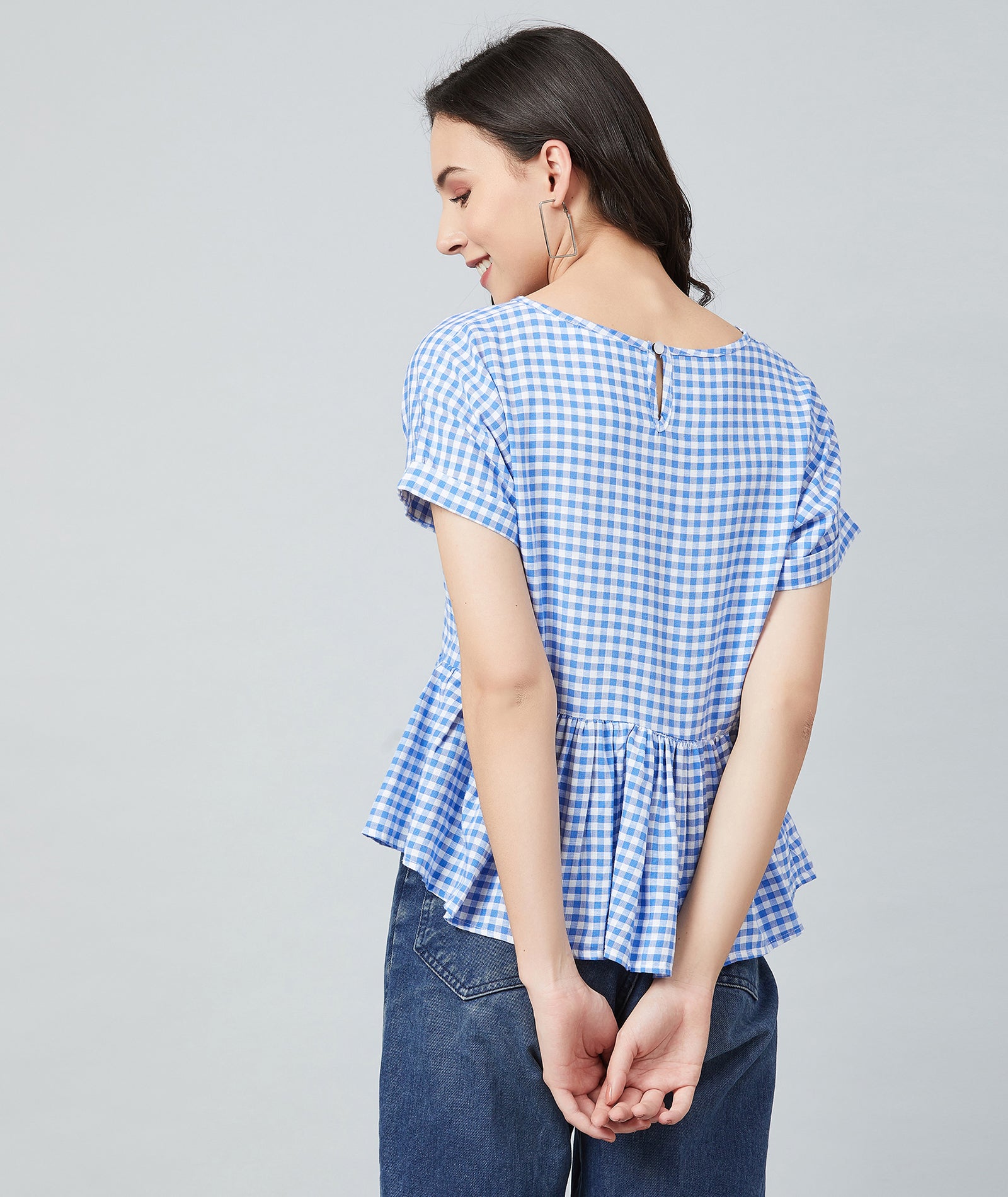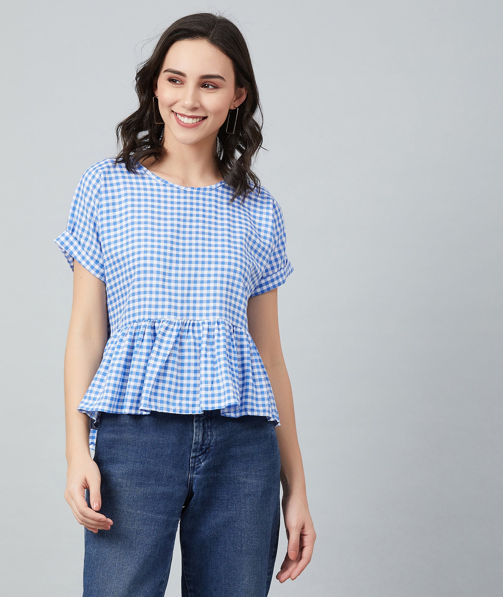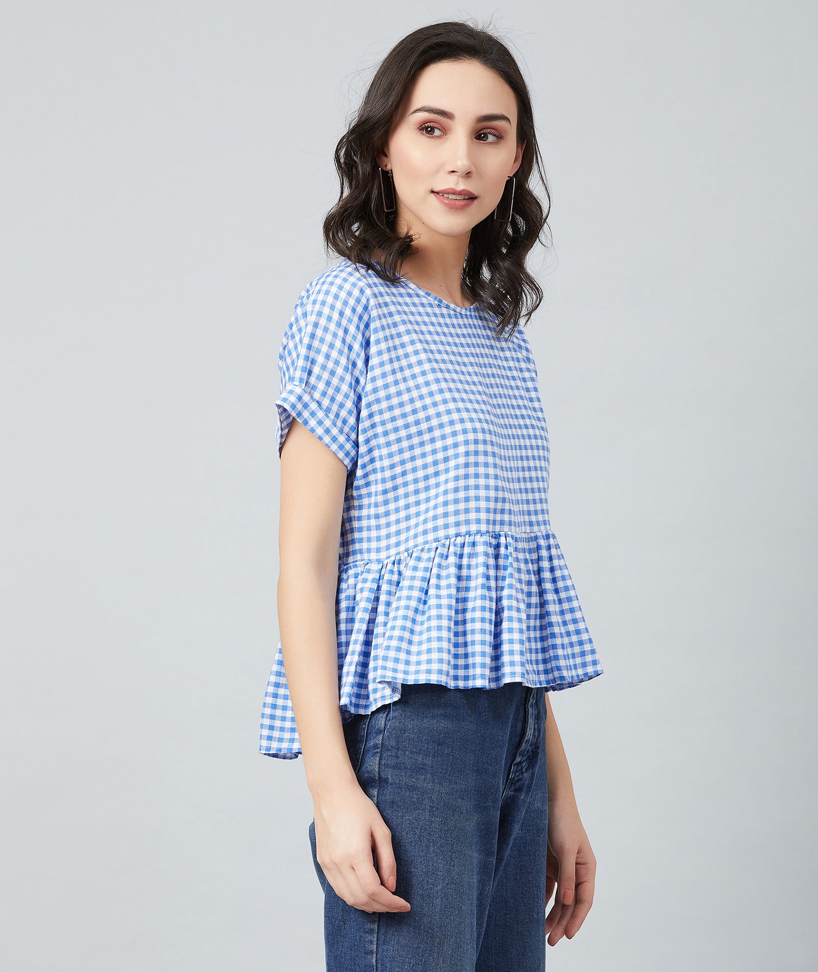 Chimpaaanzee Women Blue Checks Frill Style Top