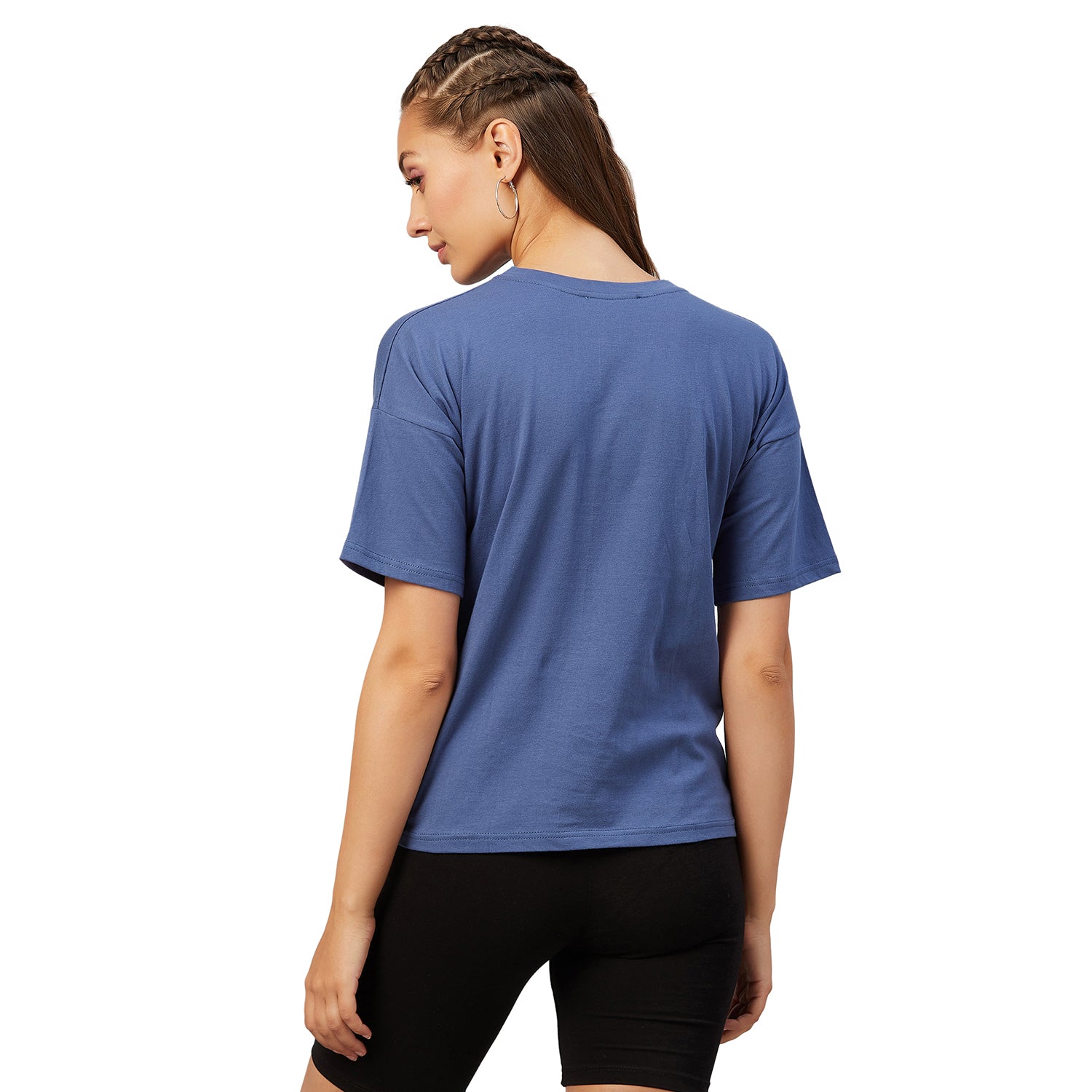 Chimpaaanzee Women Blue Round Neck T-shirt