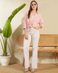 This model has a height of 5 feet 6 inches and is wearing a Top of Size "S"