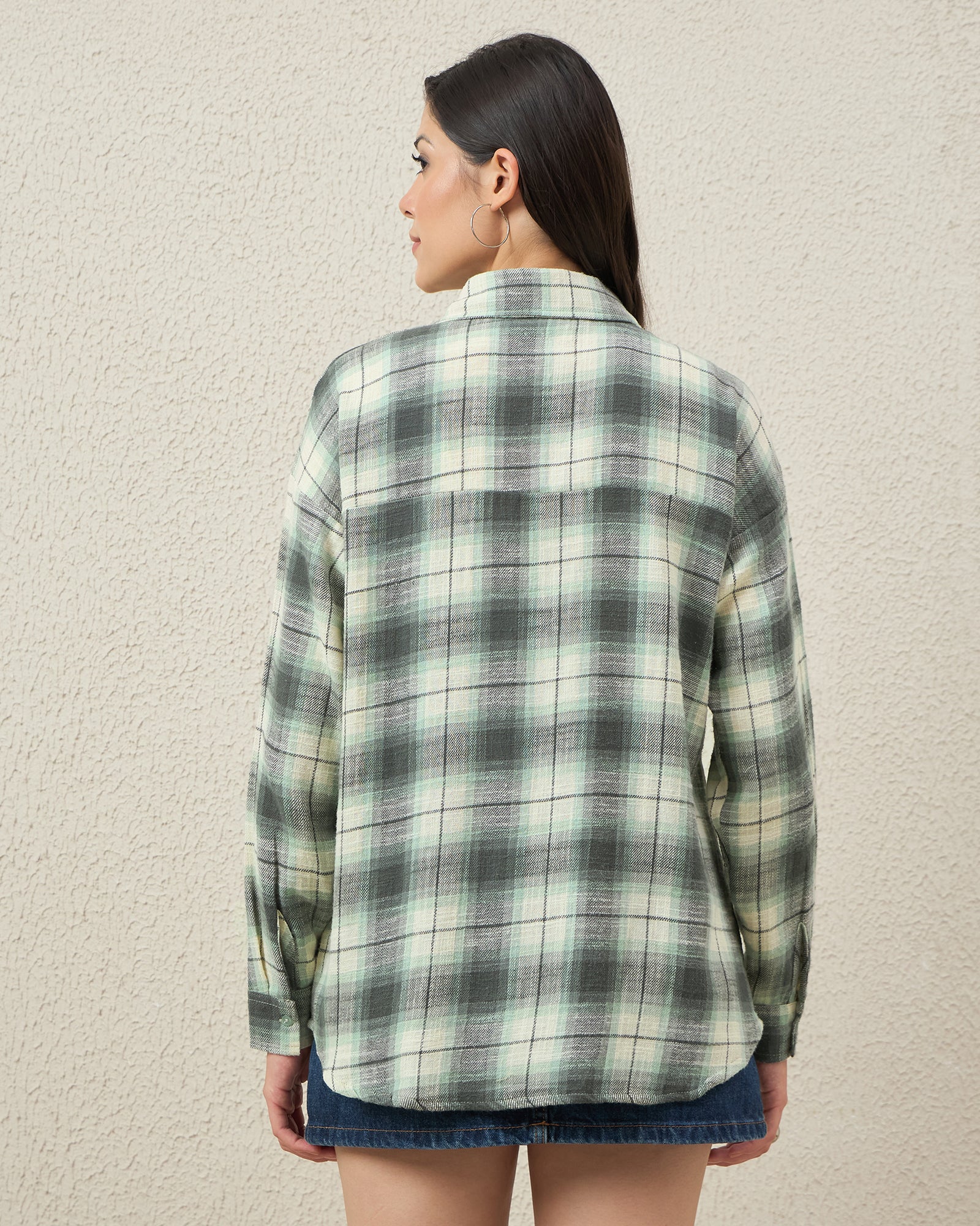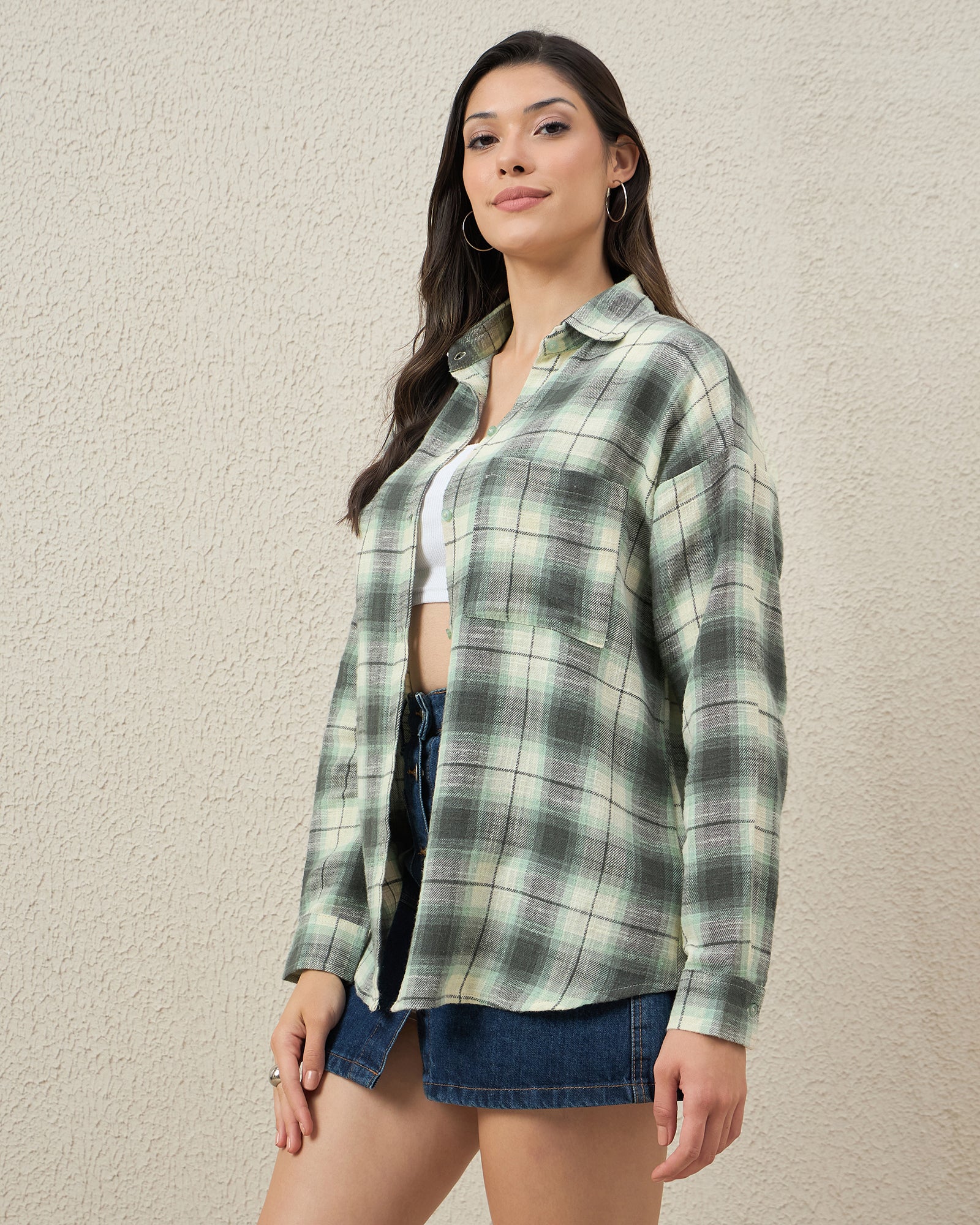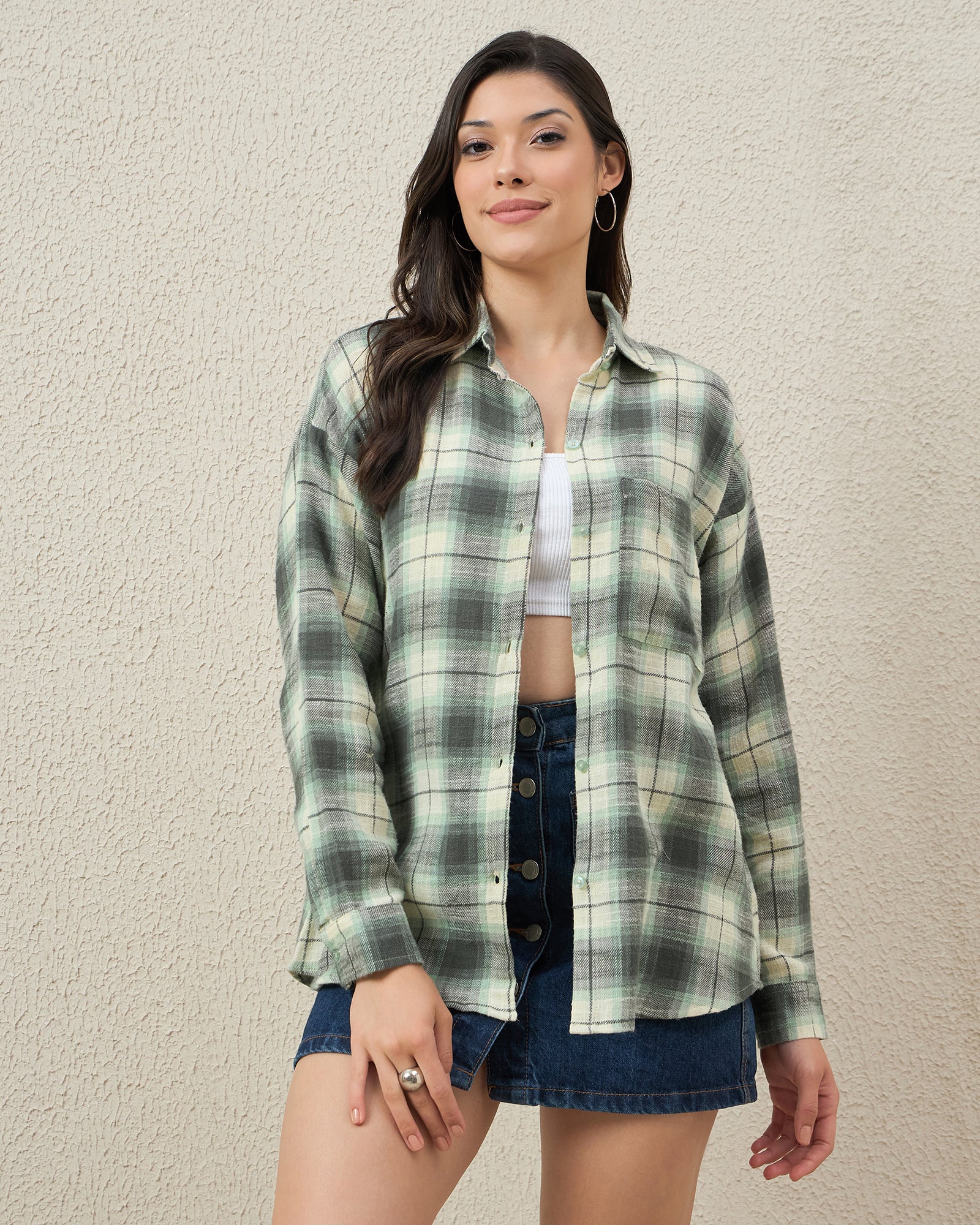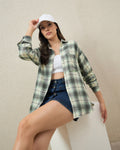 Chimpaaanzee Women Green & Beige Oversized Shirt