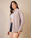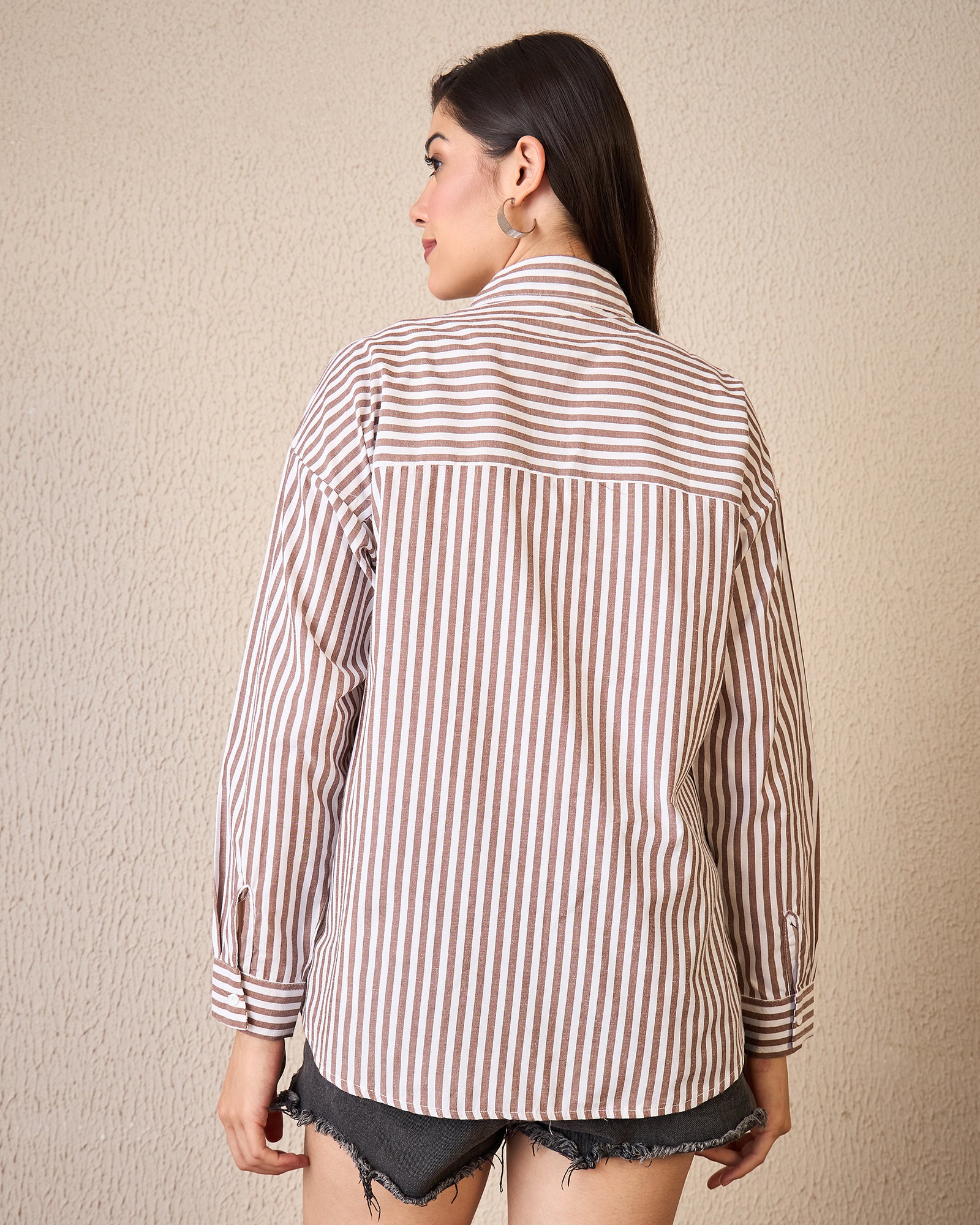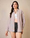 Chimpaaanzee Women Brown & White Oversized Shirt