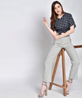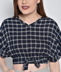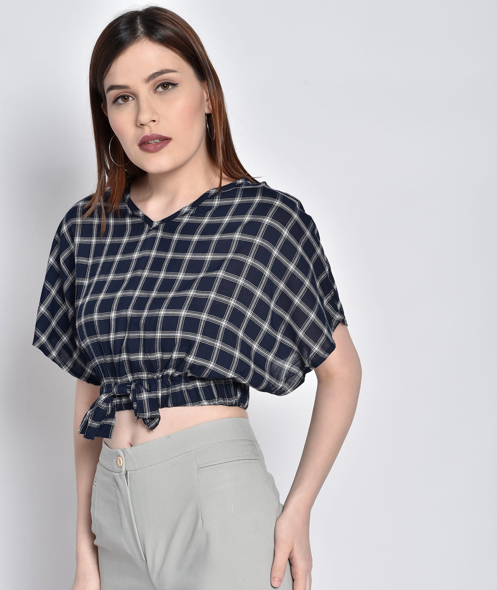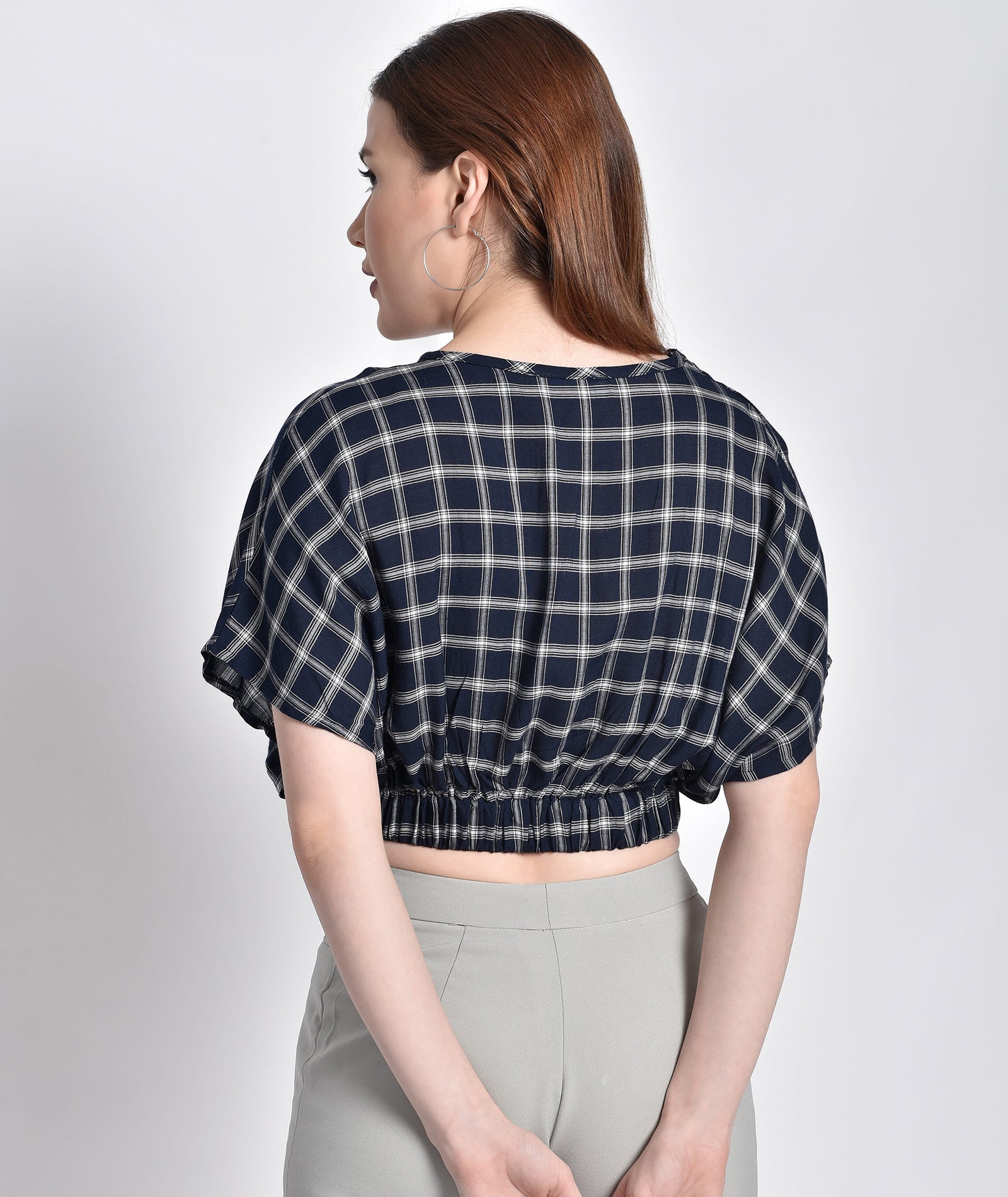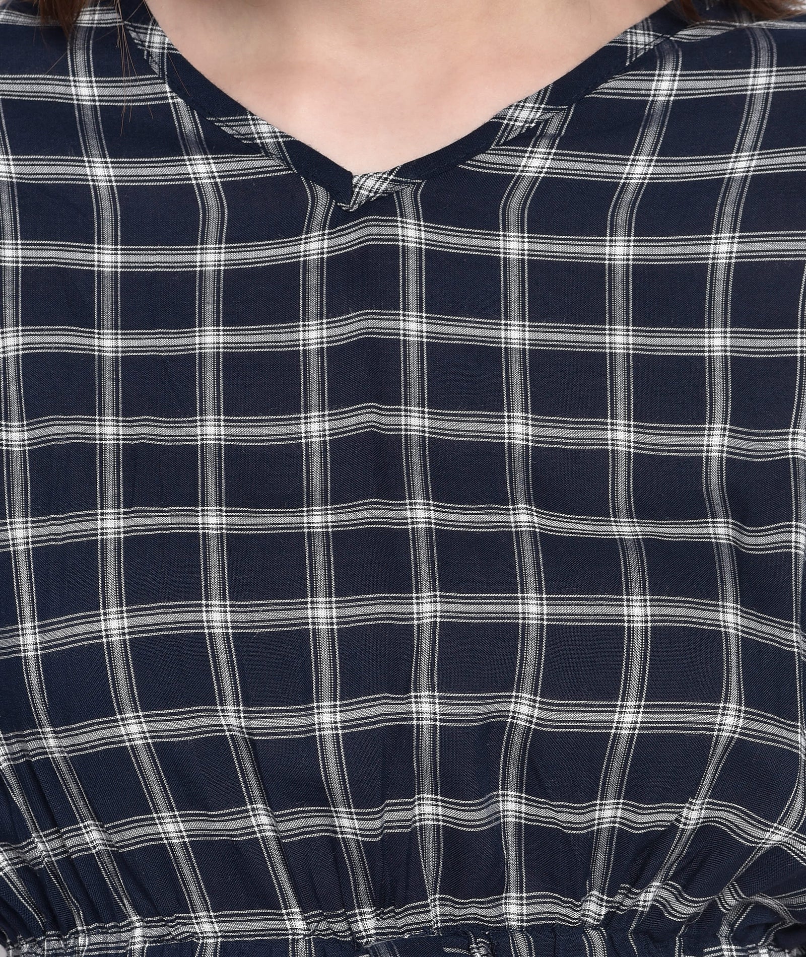 Chimpaaanzee Women Checkered Bat Sleeve Navy Top
