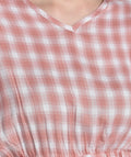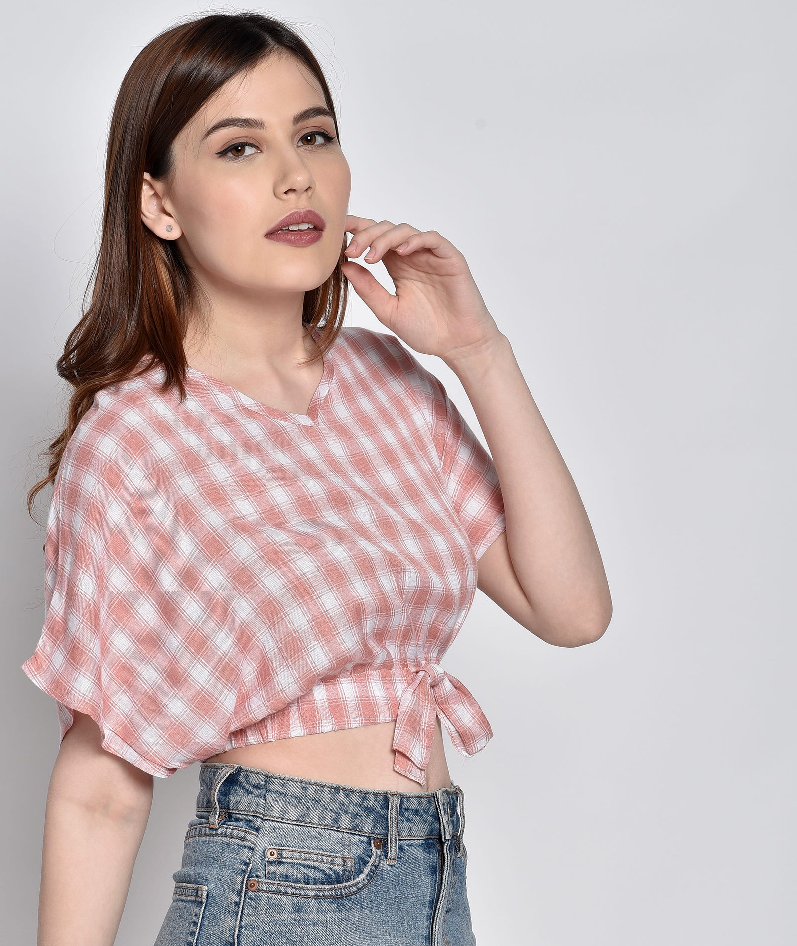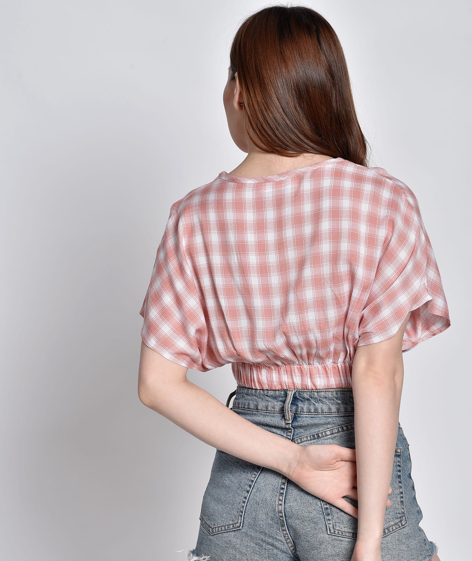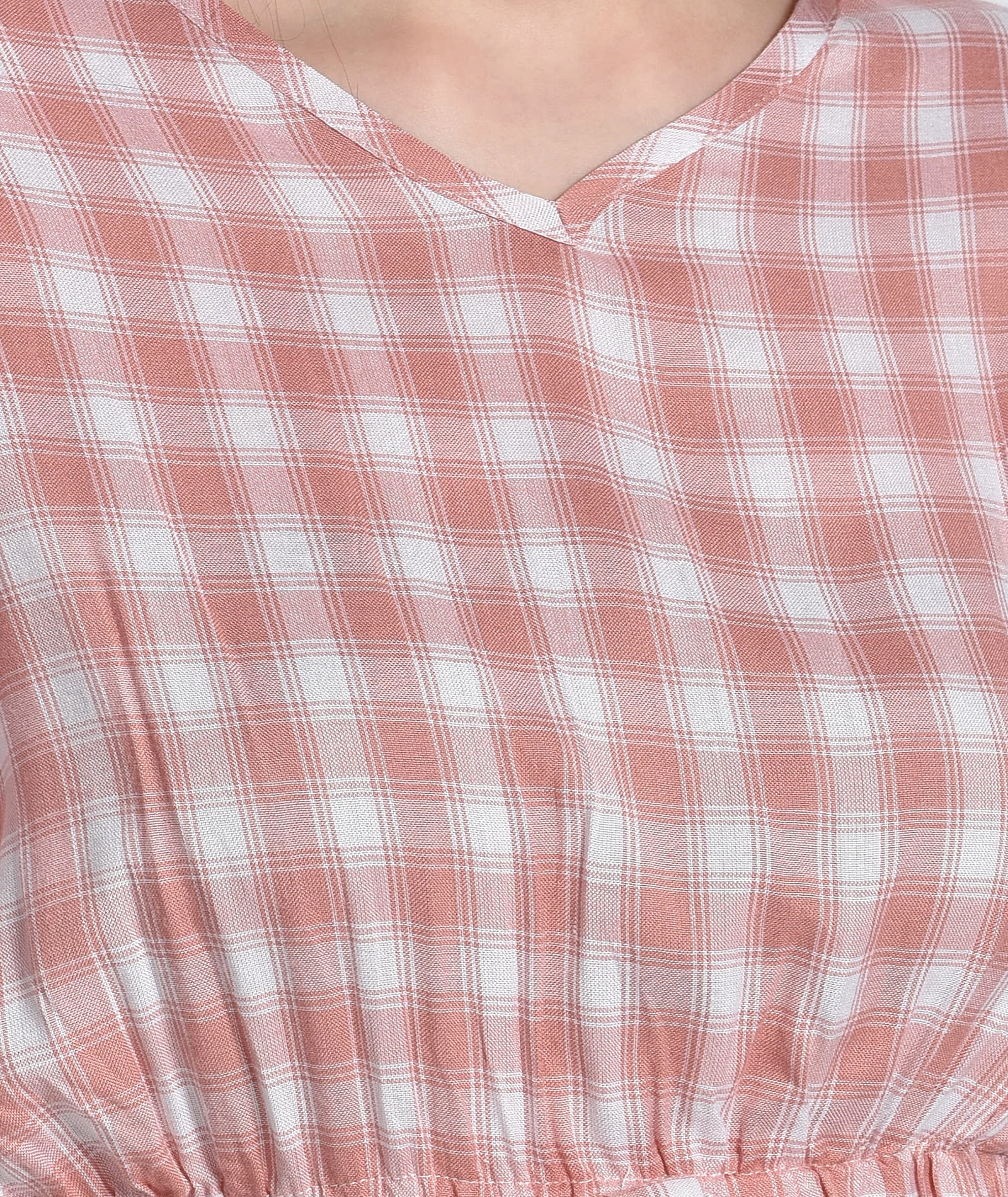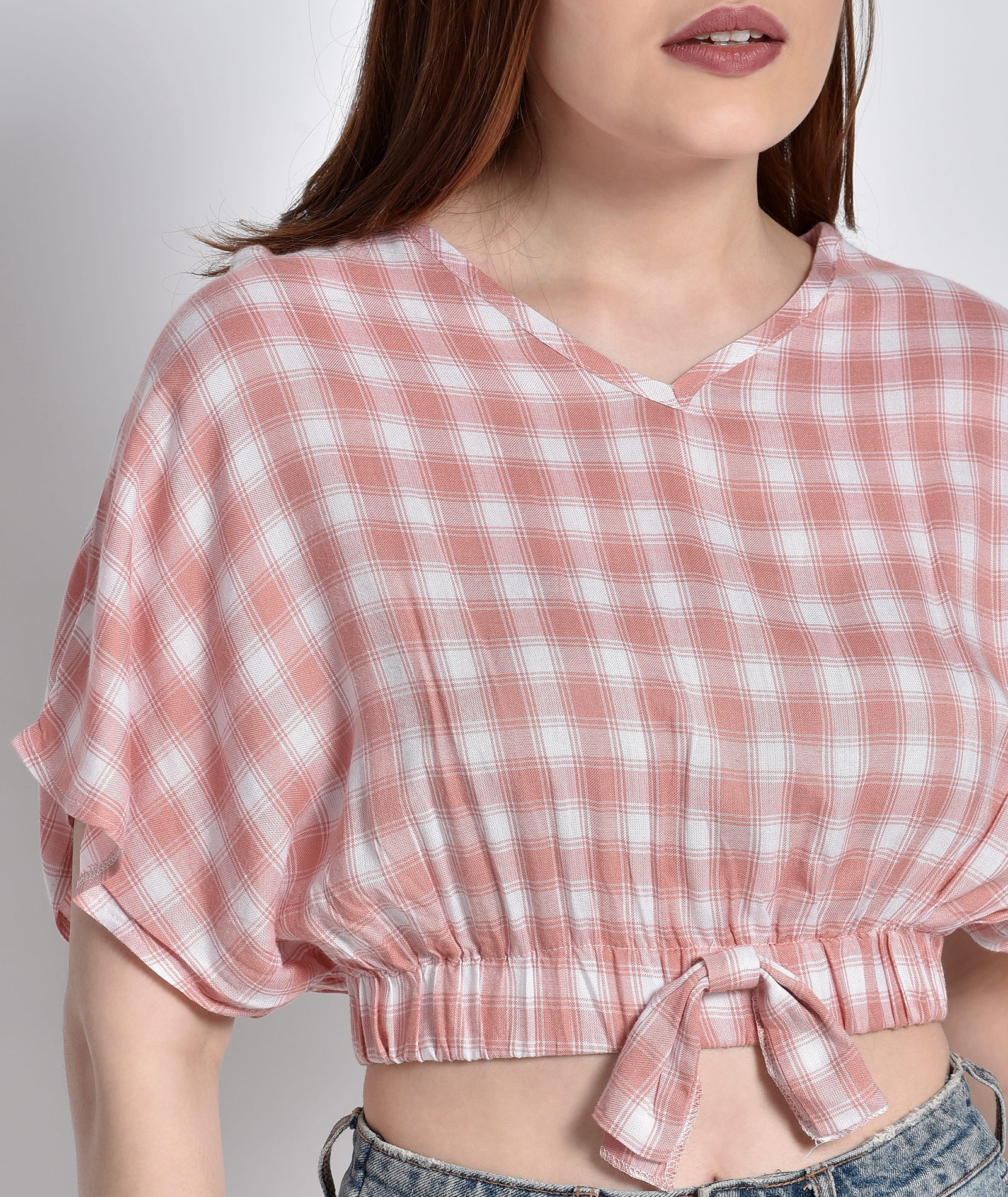 Chimpaaanzee Women Checkered Bat Sleeve Pink Top