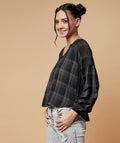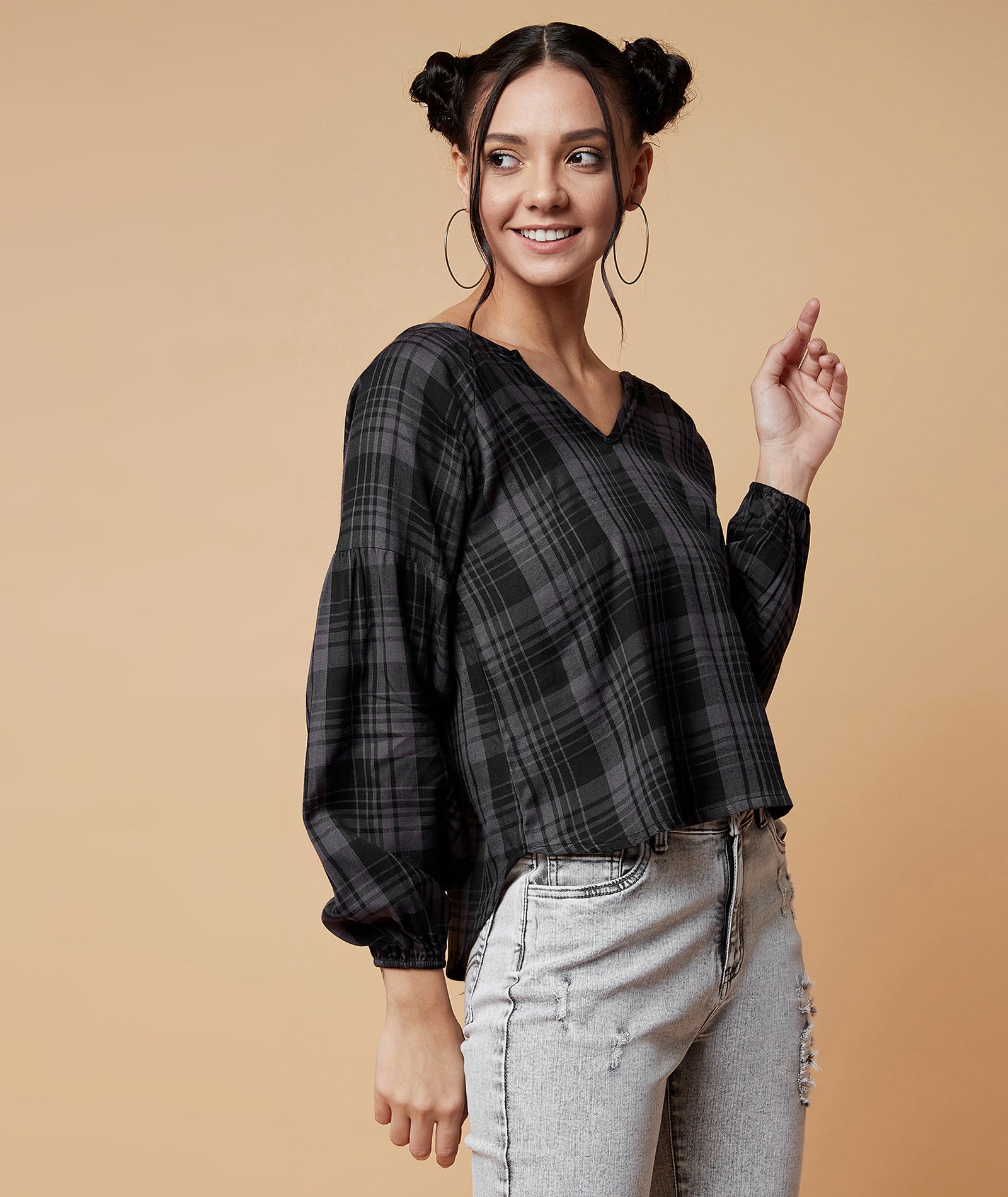 Chimpaaanzee Women Checkered Rangalan Sleeve Top Grey