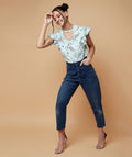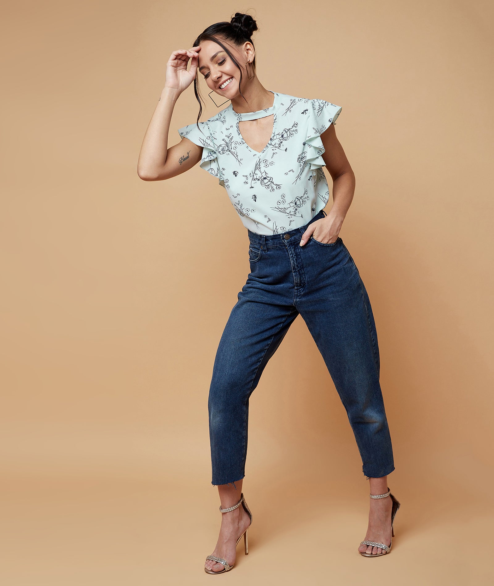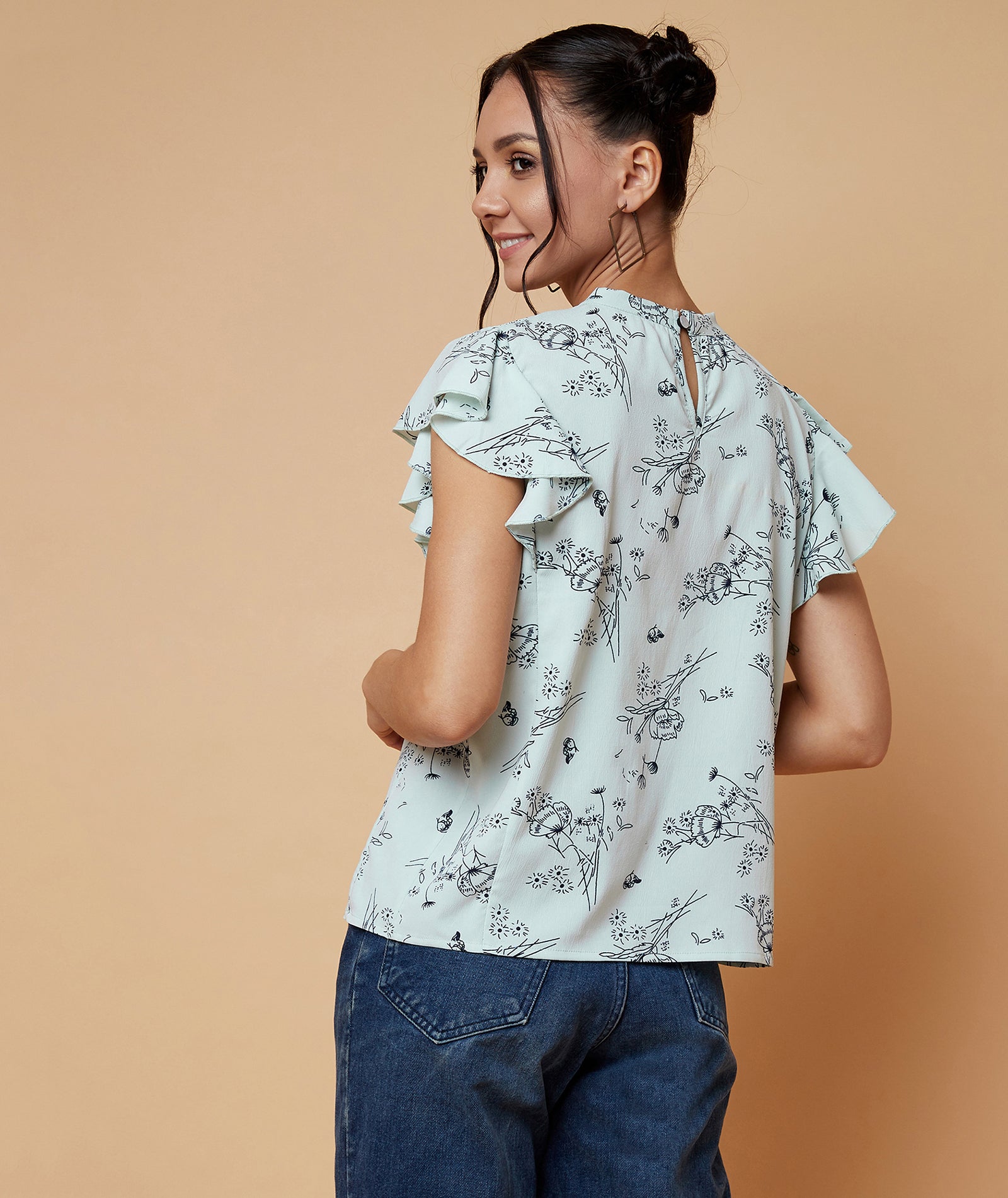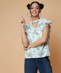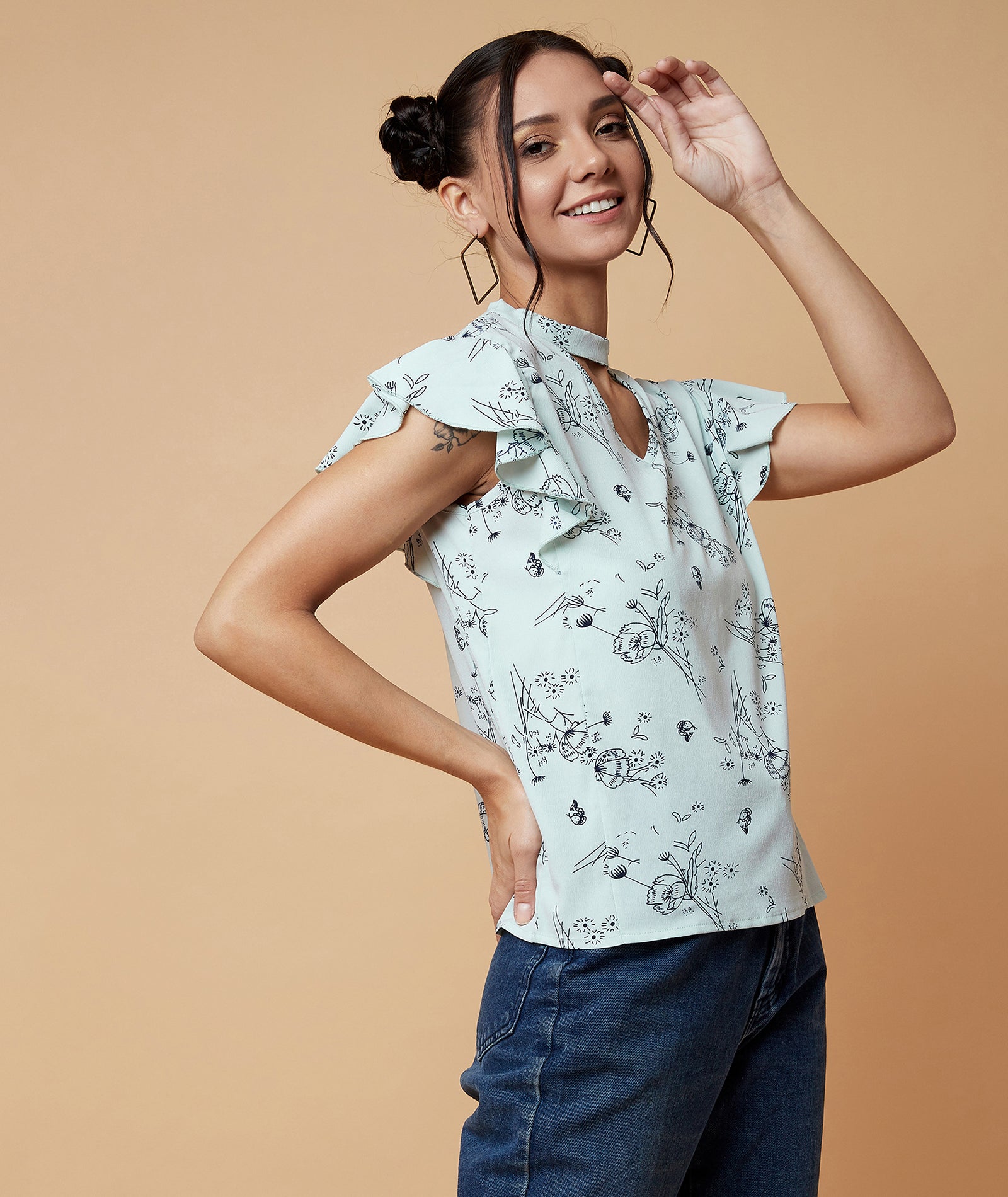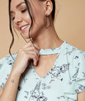 Chimpaaanzee Women Choker Neck Floral Print Top Green