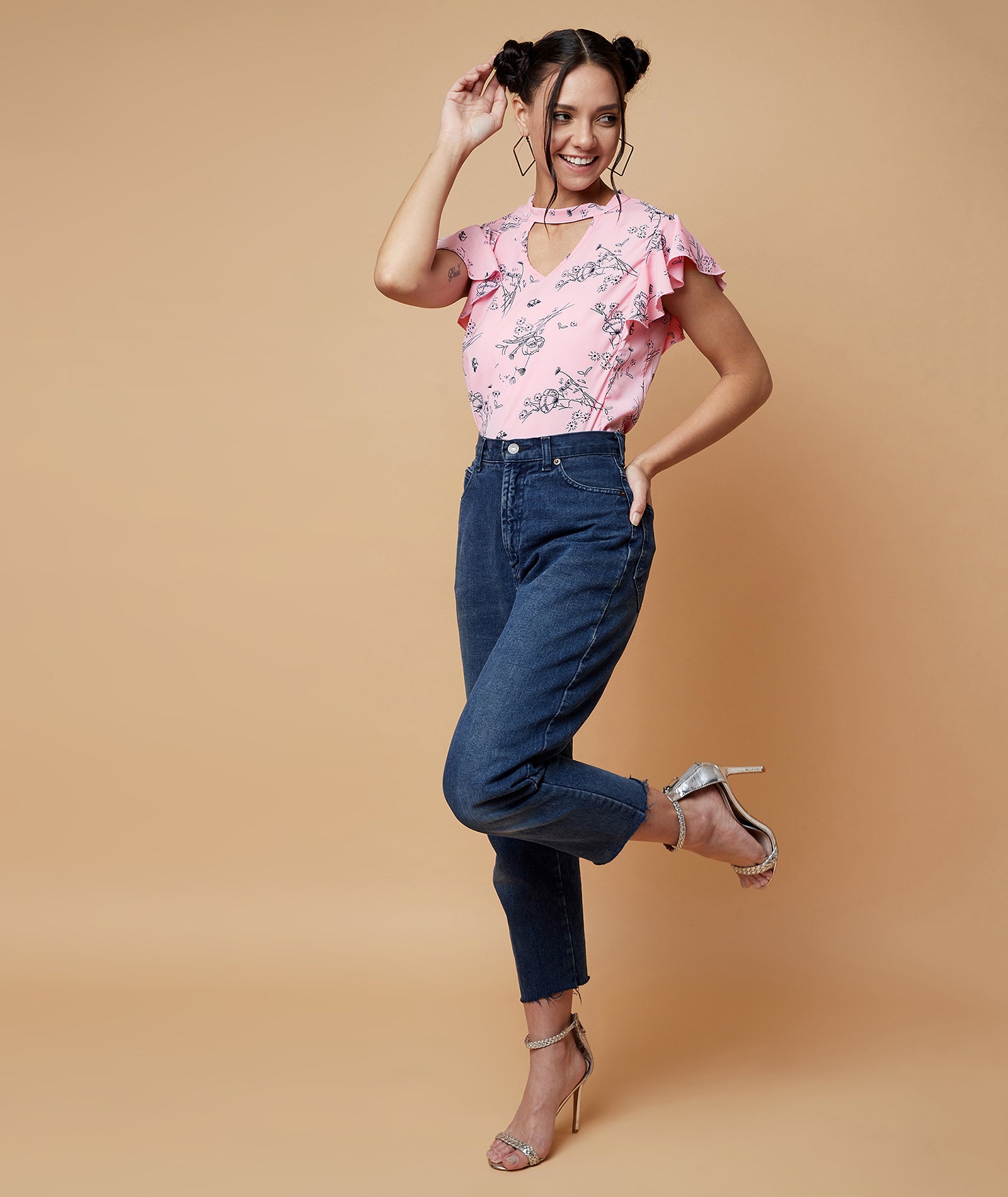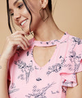 Chimpaaanzee Women Choker Neck Floral Print Top Pink