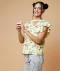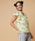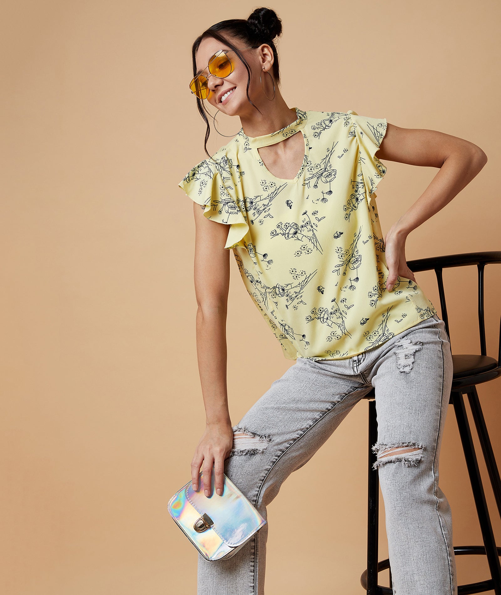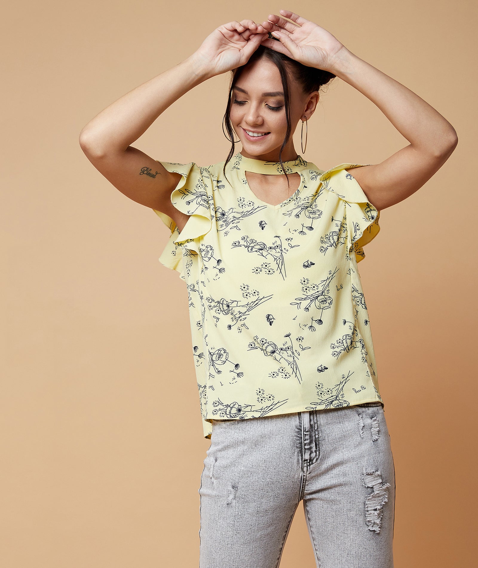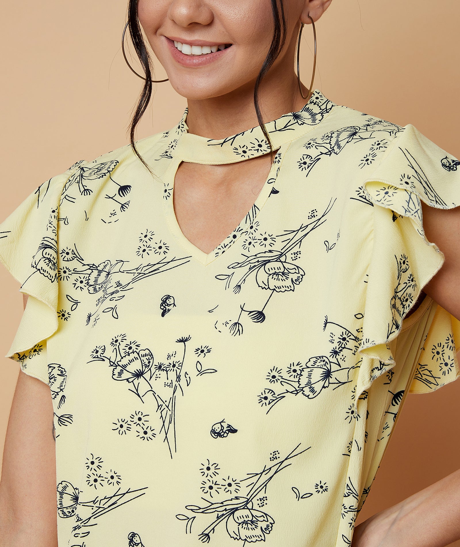 Chimpaaanzee Women Choker Neck Floral Print Top Yellow