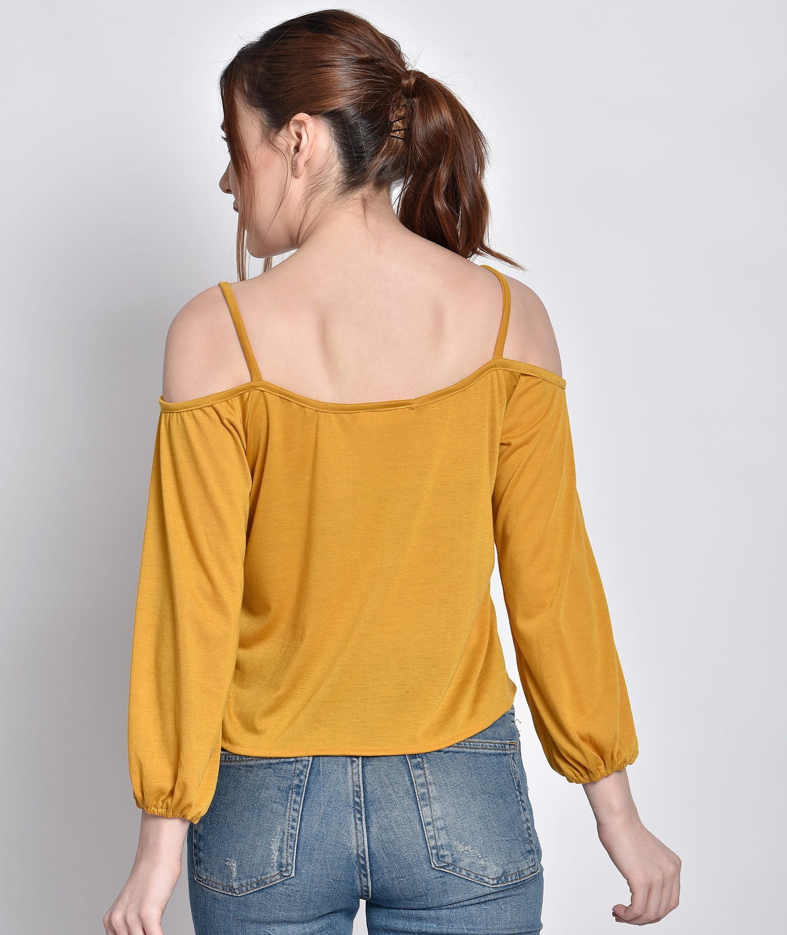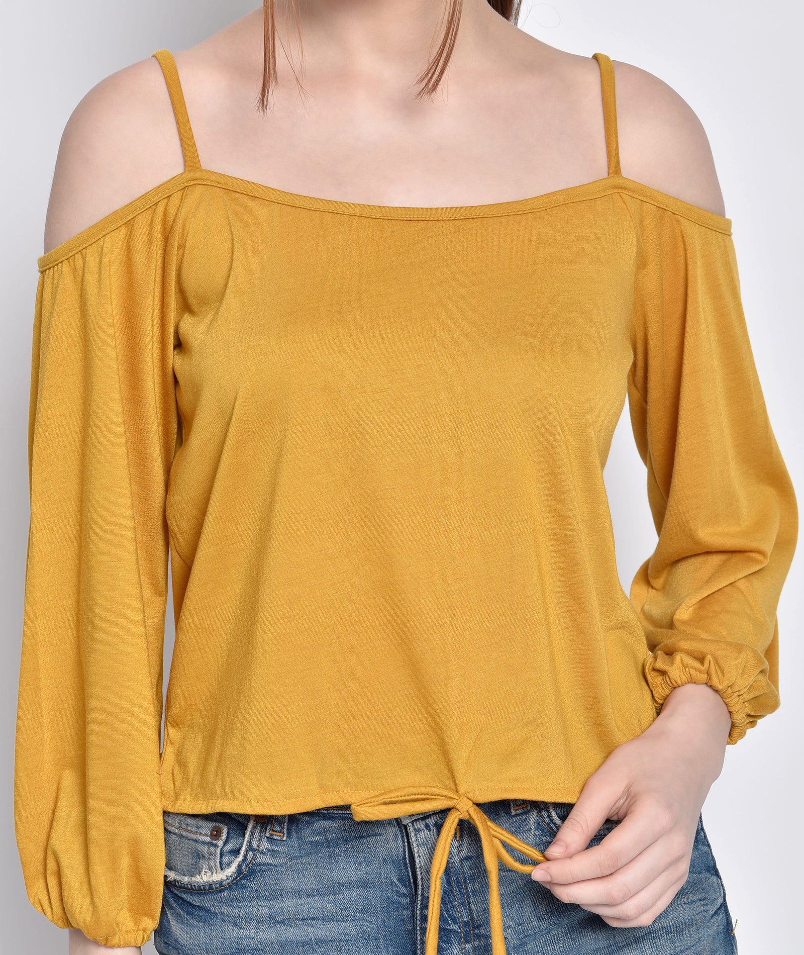 Chimpaaanzee Women Cold Shoulder Yellow Top