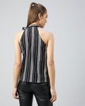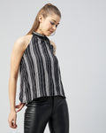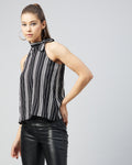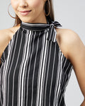 Chimpaaanzee Women Crepe Black and White Side Tie Knot Neck Top
