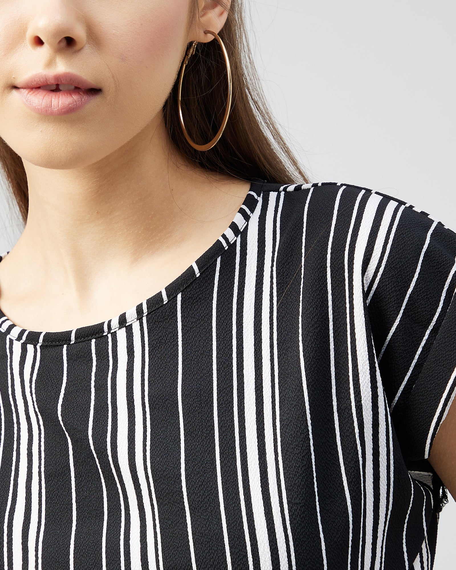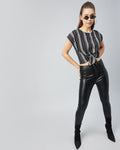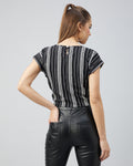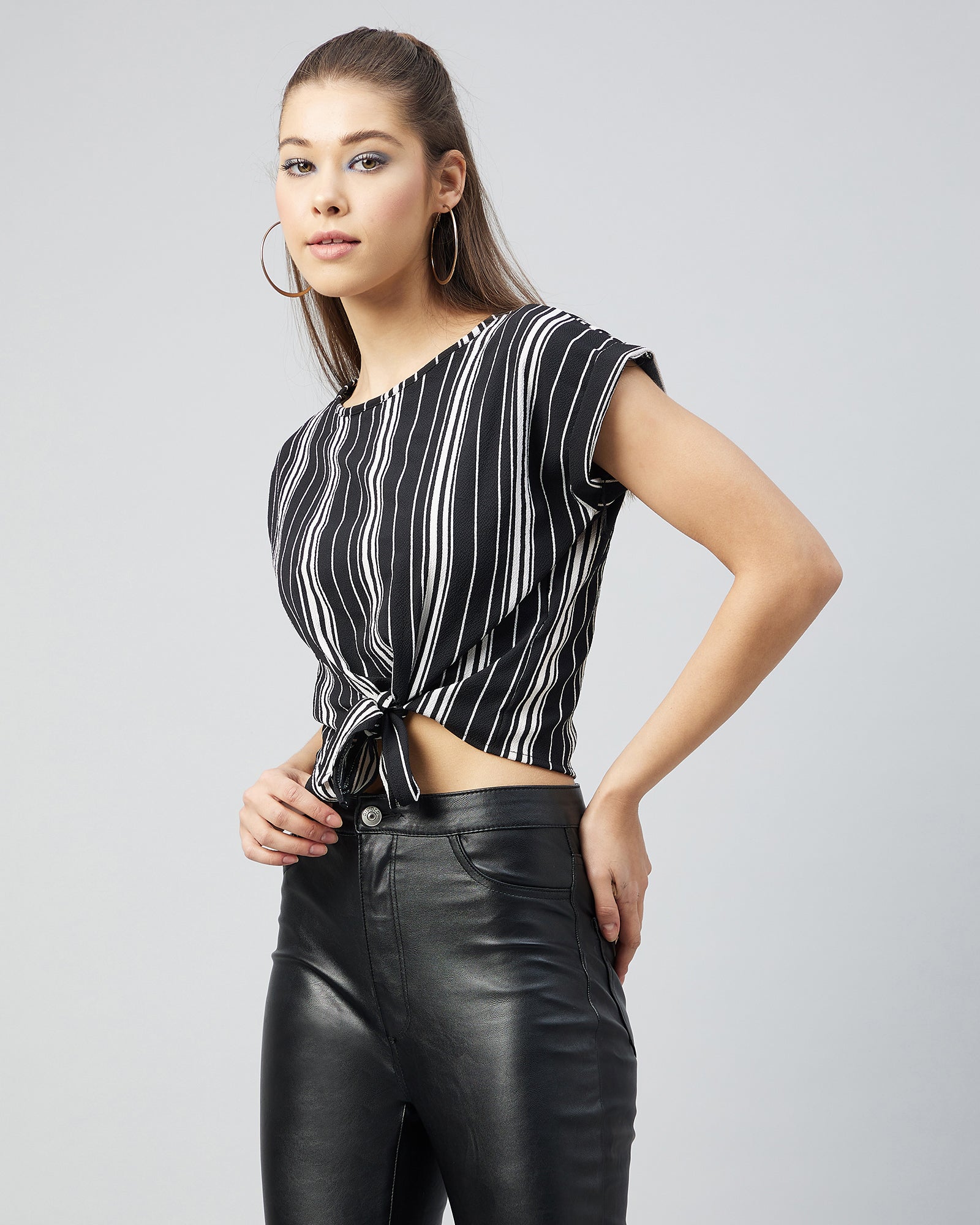 Chimpaaanzee Women Crepe Black and White Sleeveless Knotted Crop Top