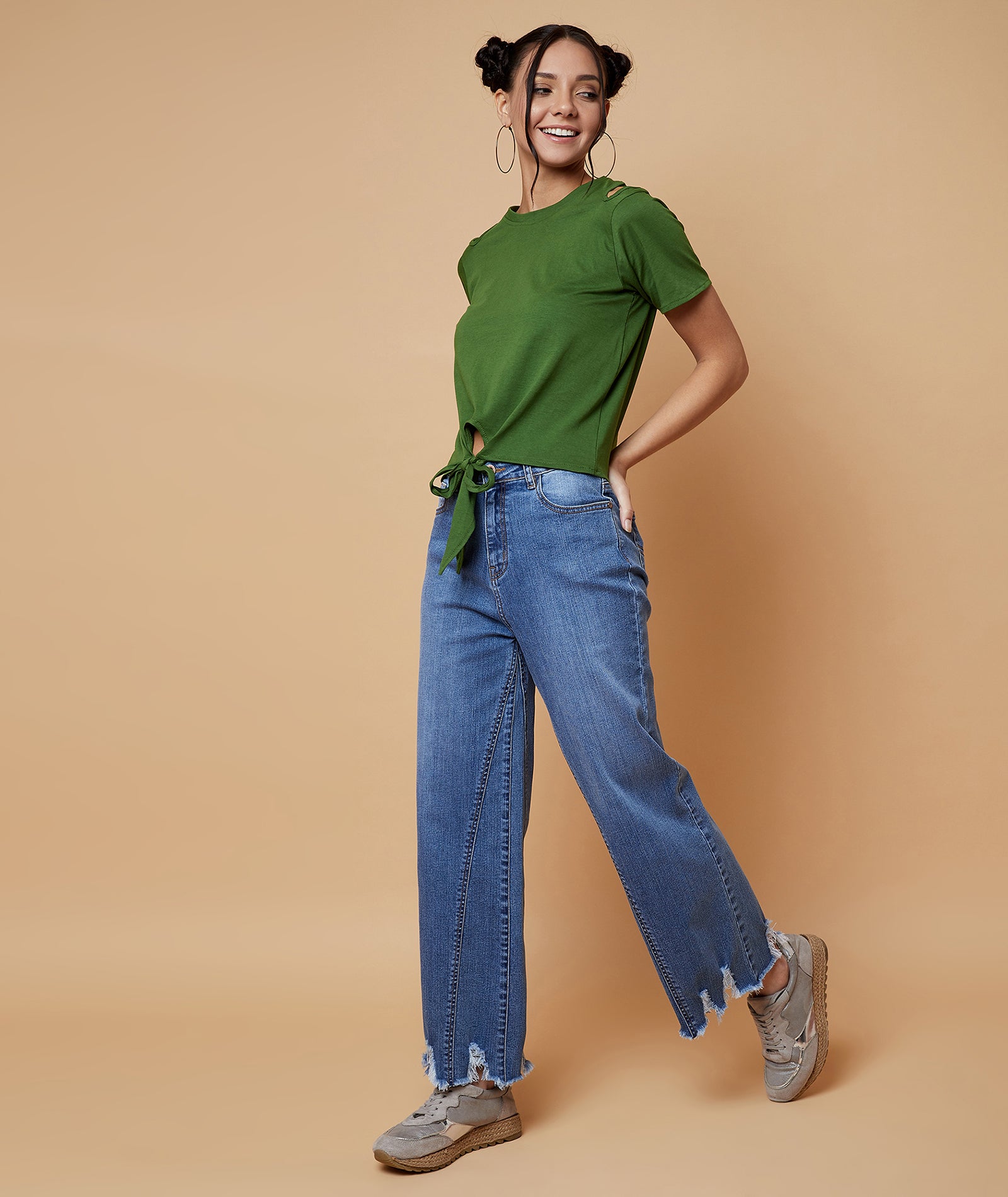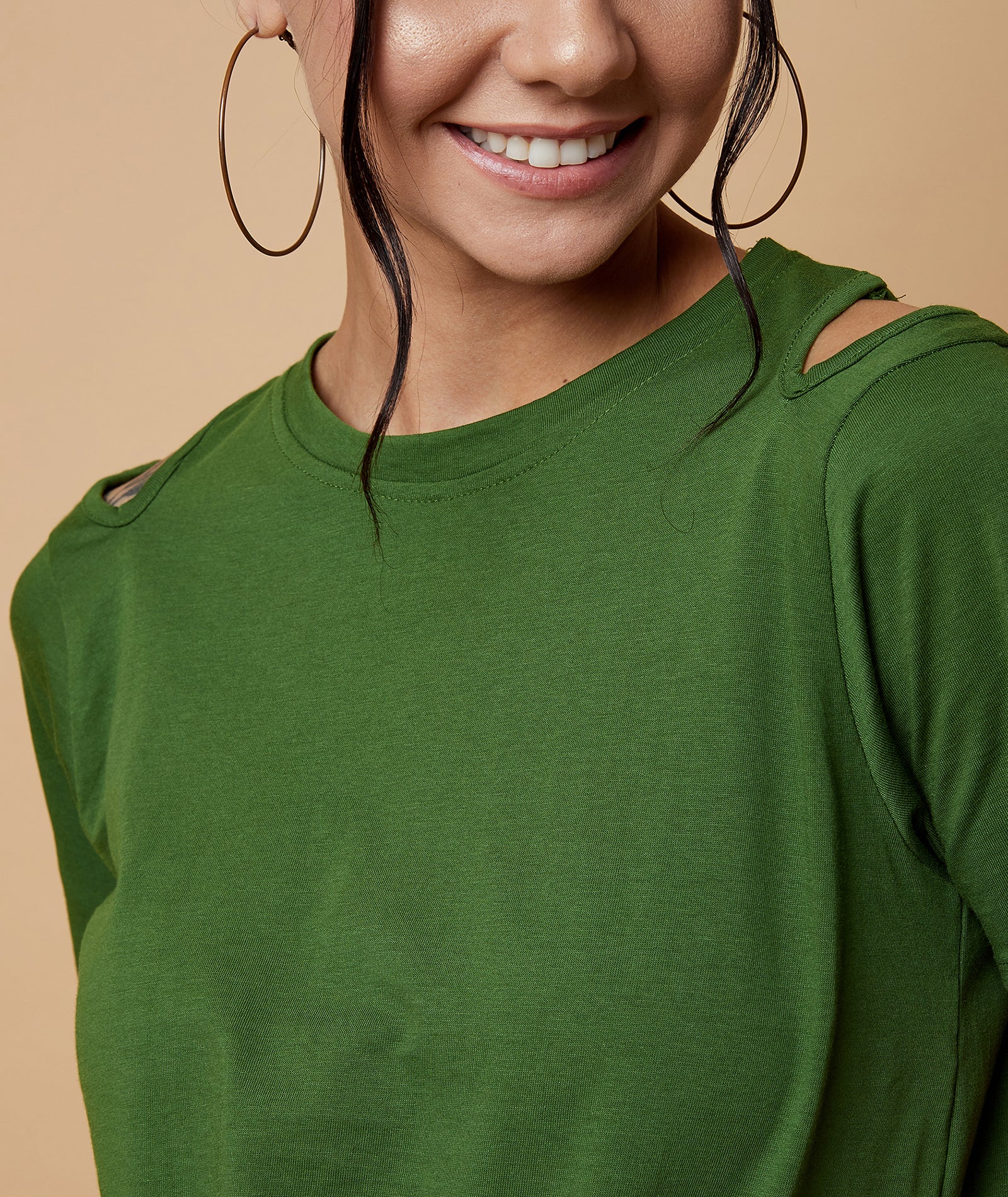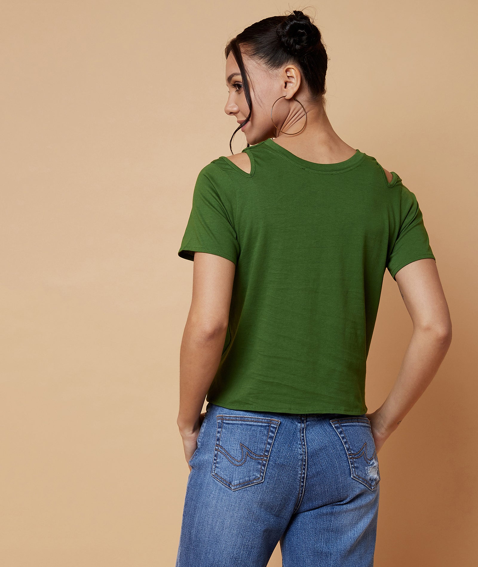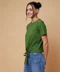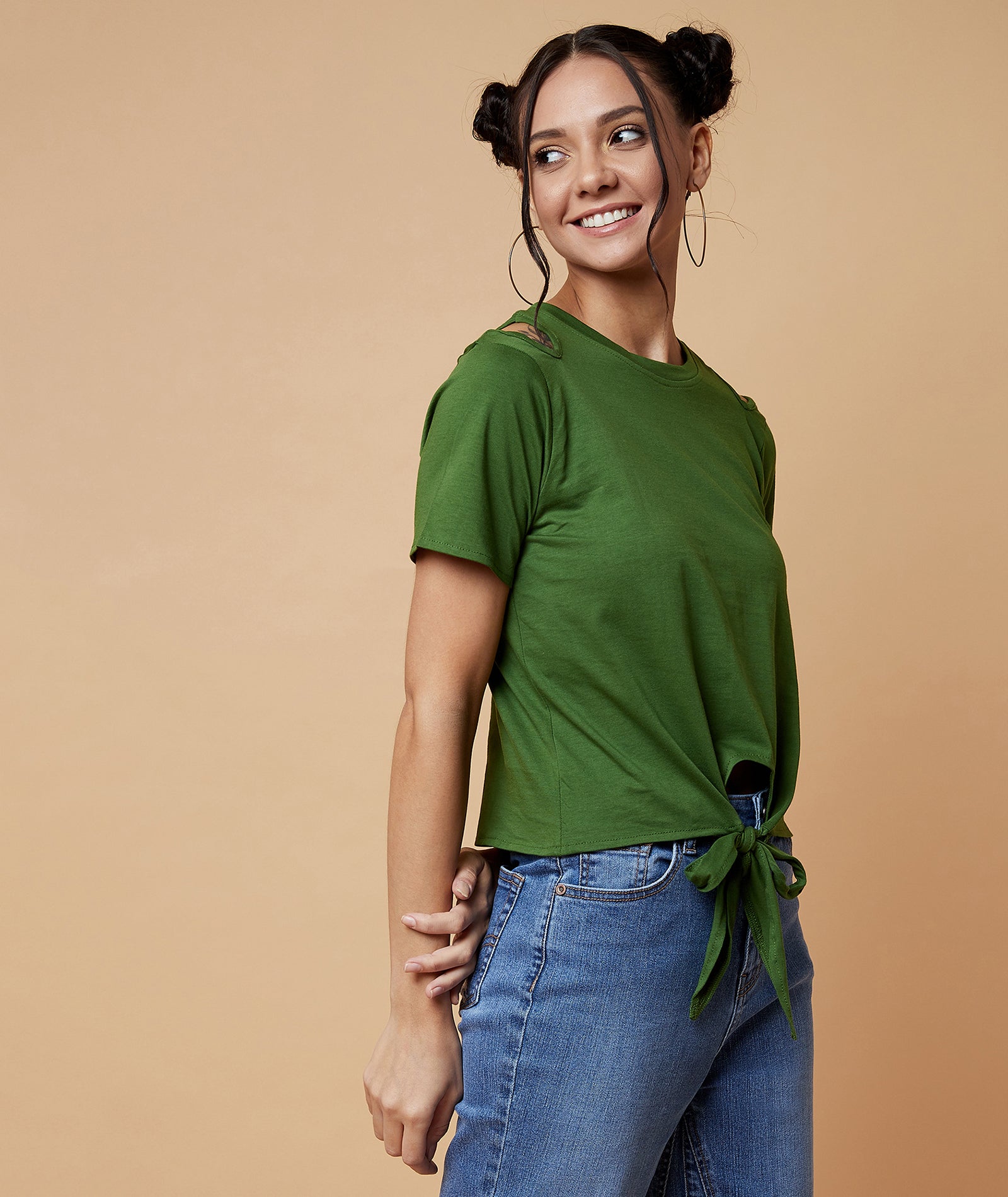 Chimpaaanzee Women Cut Out Neck Front Knot Top Green