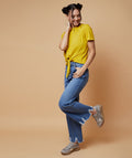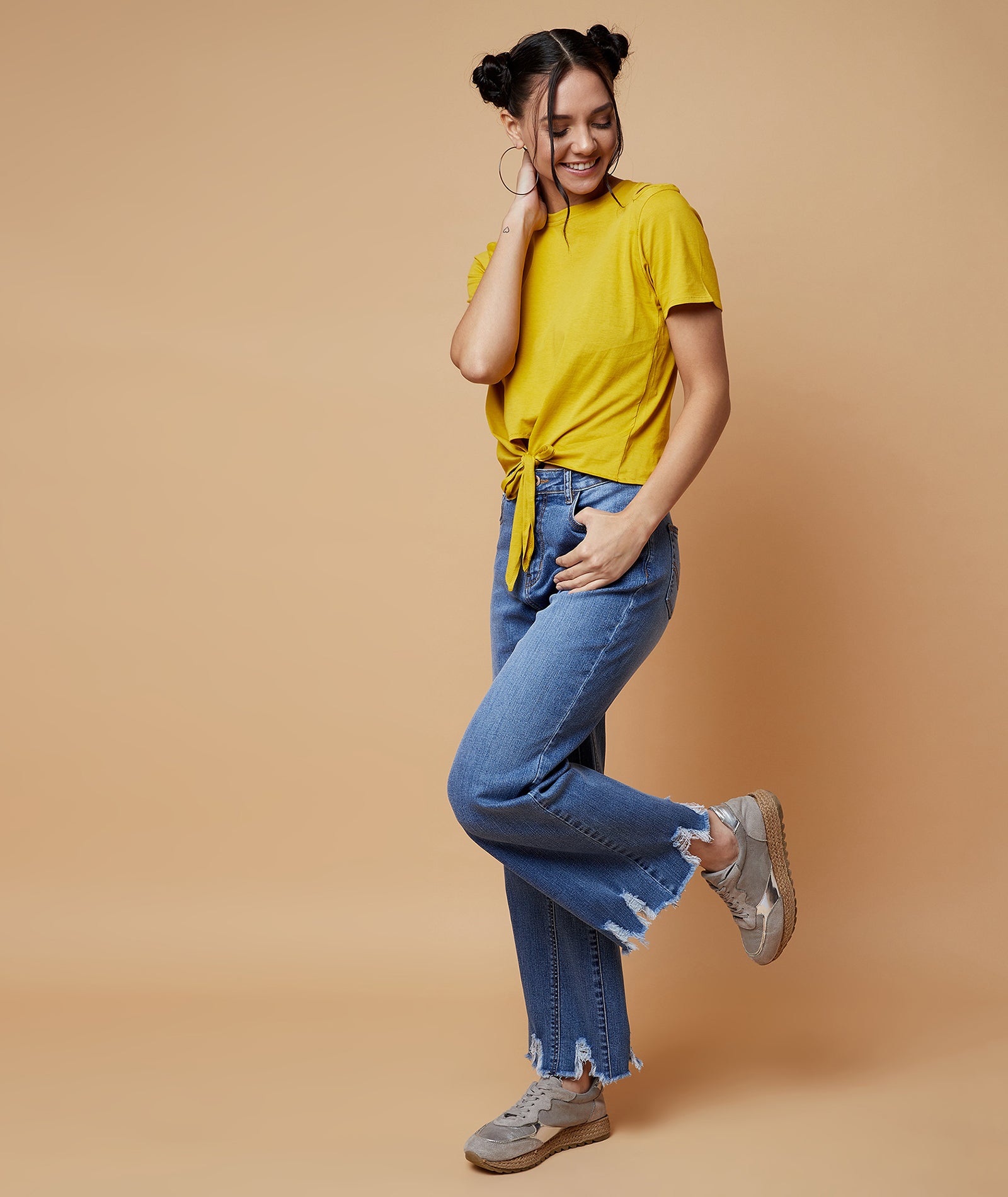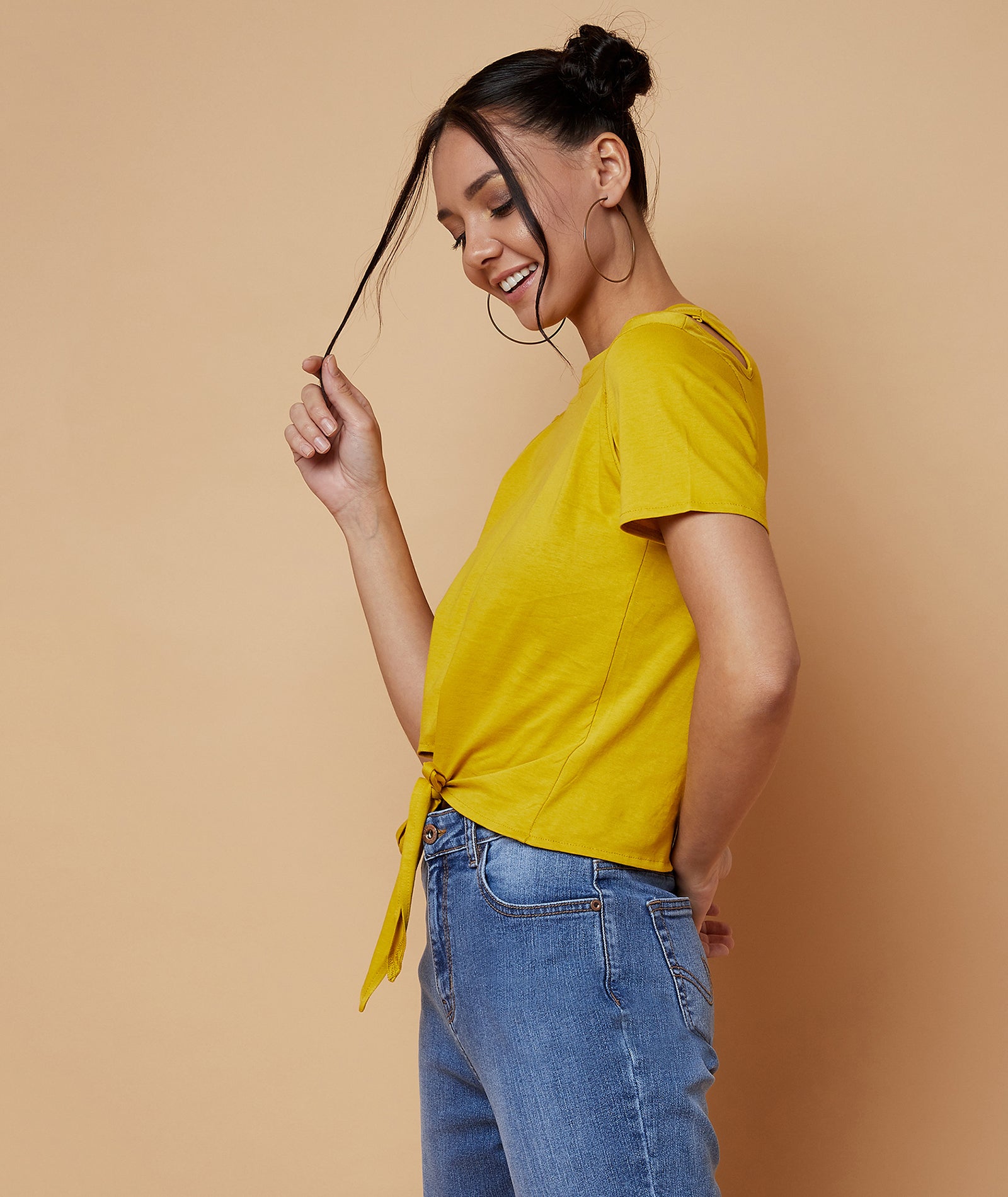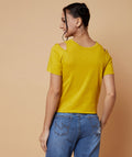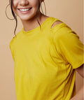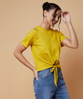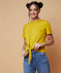 Chimpaaanzee Women Cut Out Neck Front Knot Top Yellow