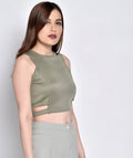 Chimpaaanzee Women Cut Out Waist Green Bodycon Top