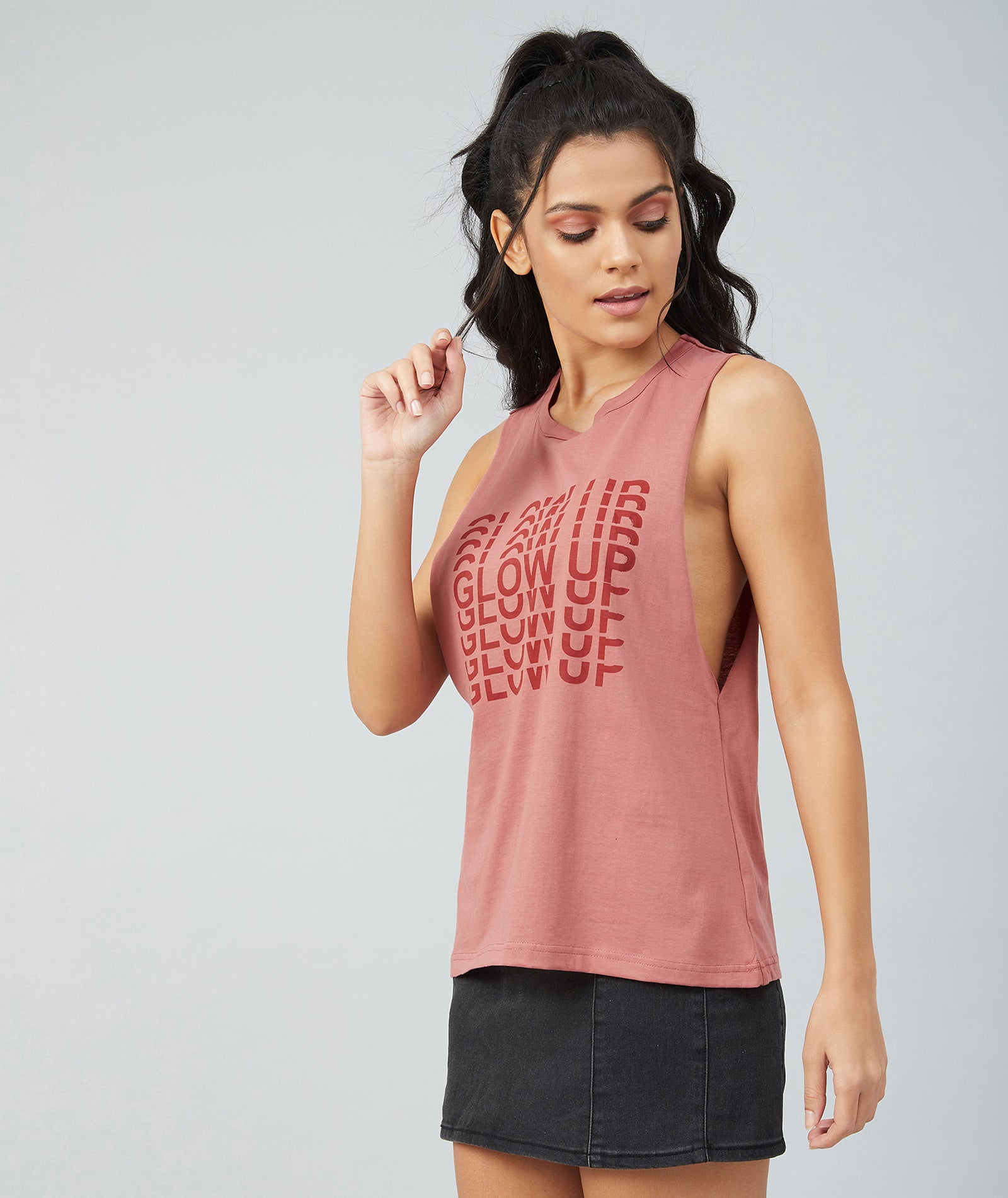 Chimpaaanzee Women Dark Pink Big Armhole Round Neck T-shirt