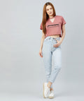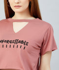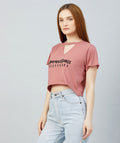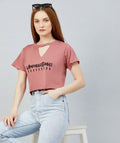 Chimpaaanzee Women Dark Pink Keyhole Neck Crop T-shirt