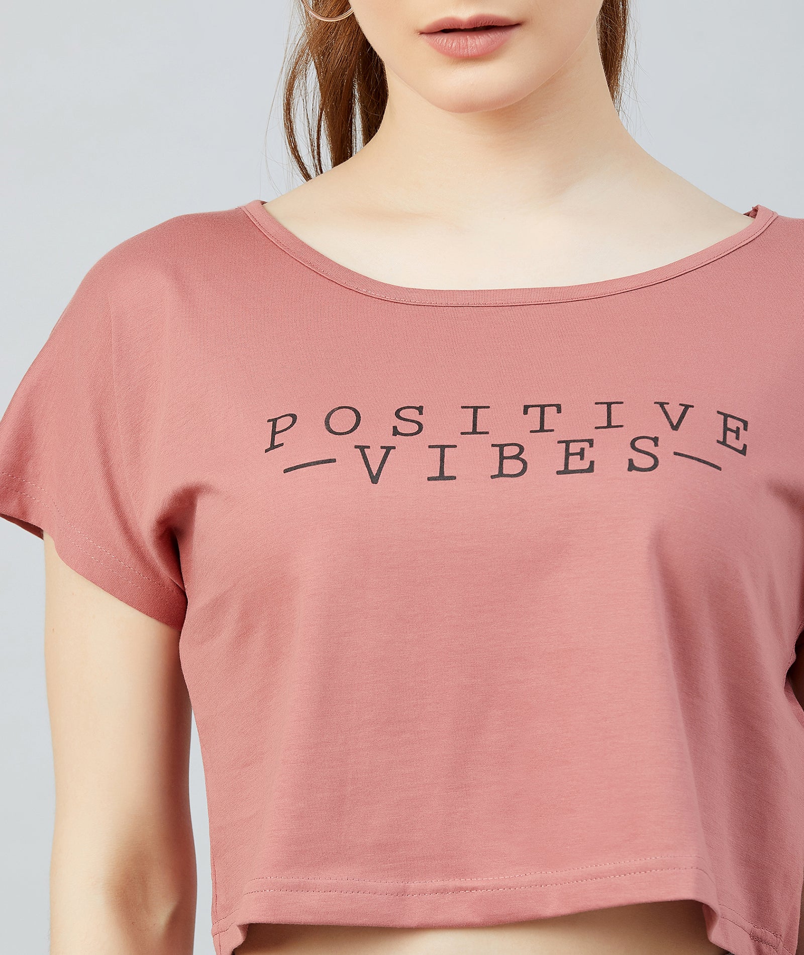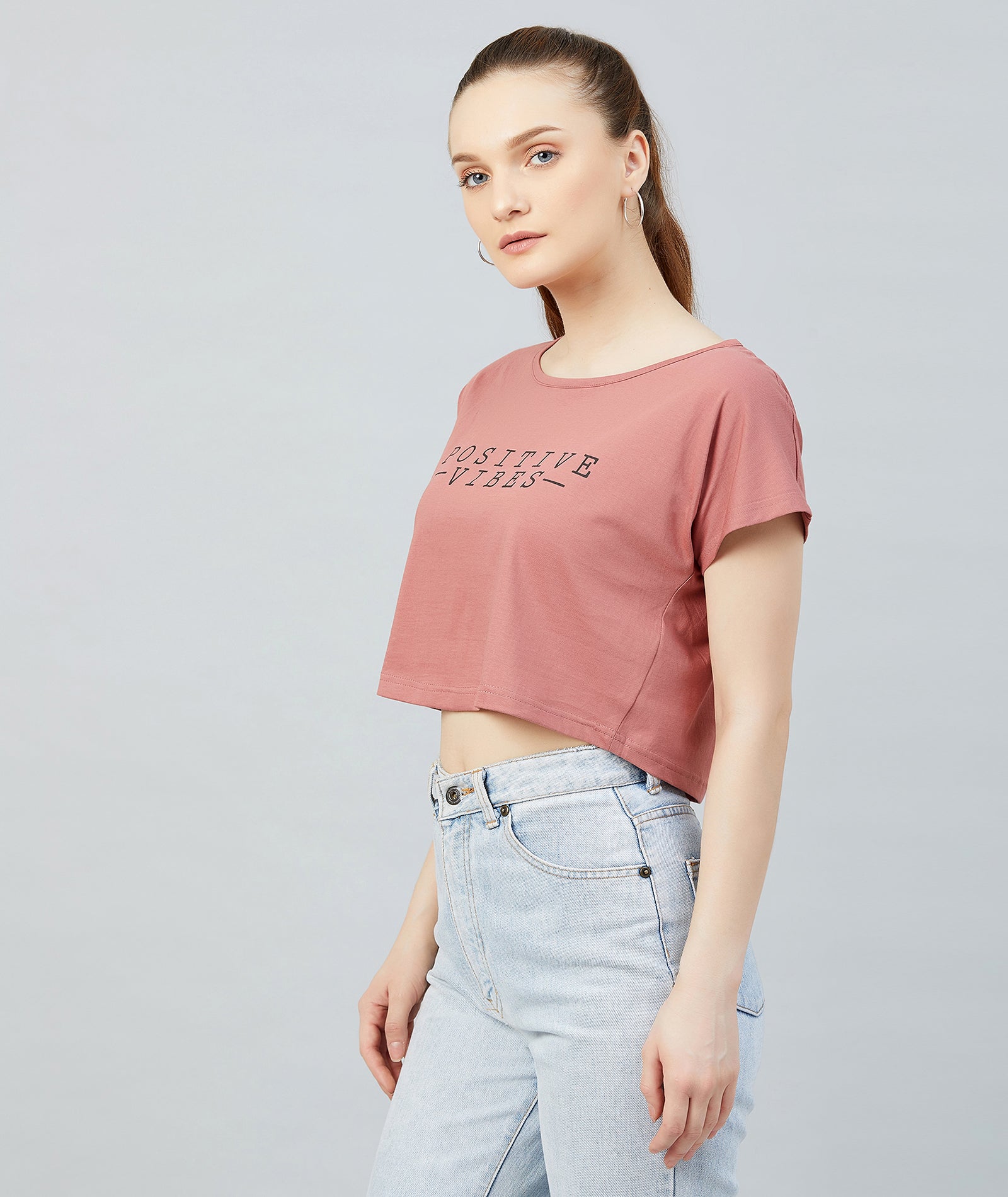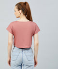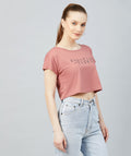 Chimpaaanzee Women Dark Pink Round Neck Crop T-shirt