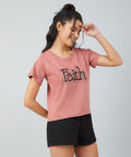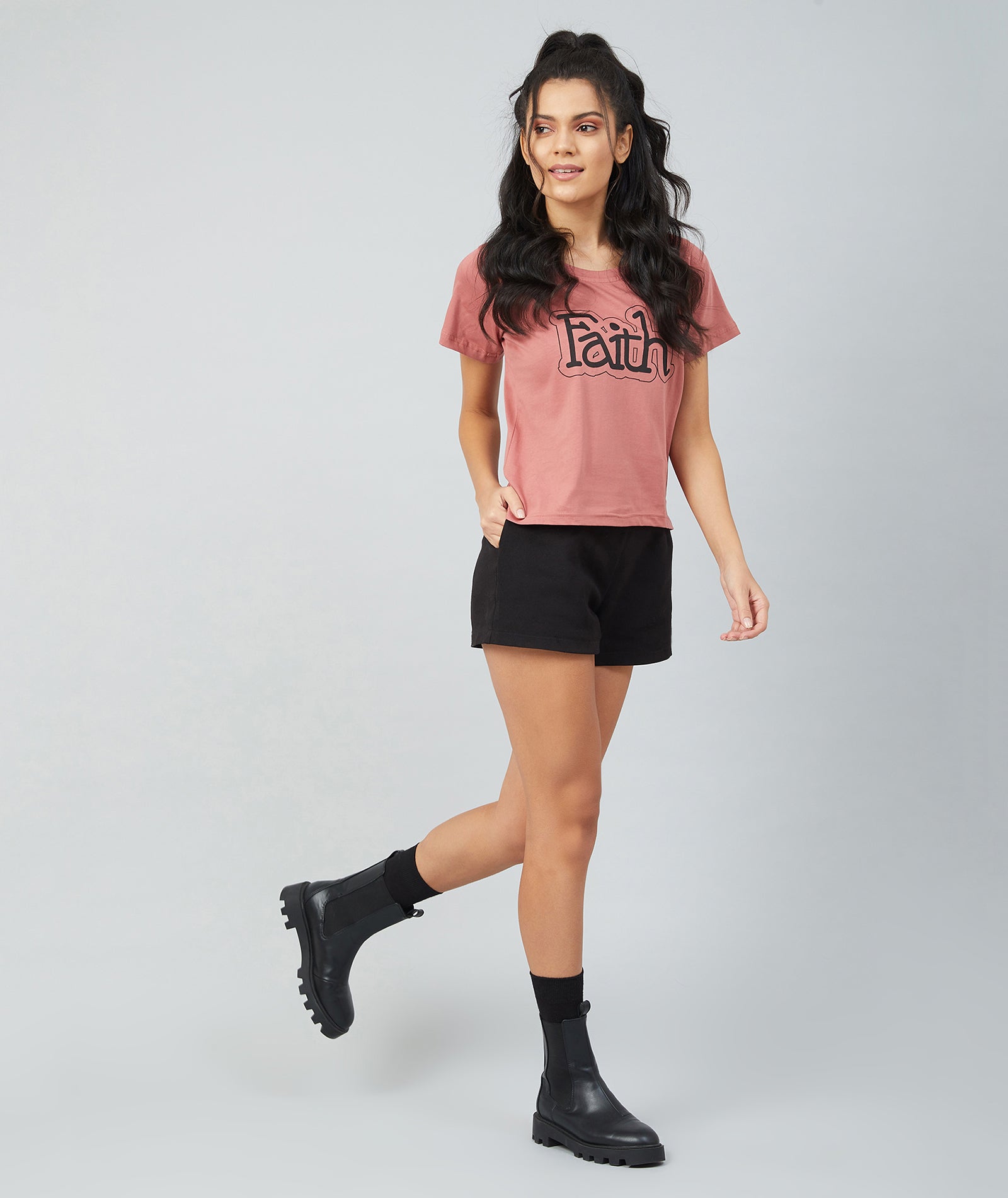 Chimpaaanzee Women Dark Pink Round Neck T-shirt