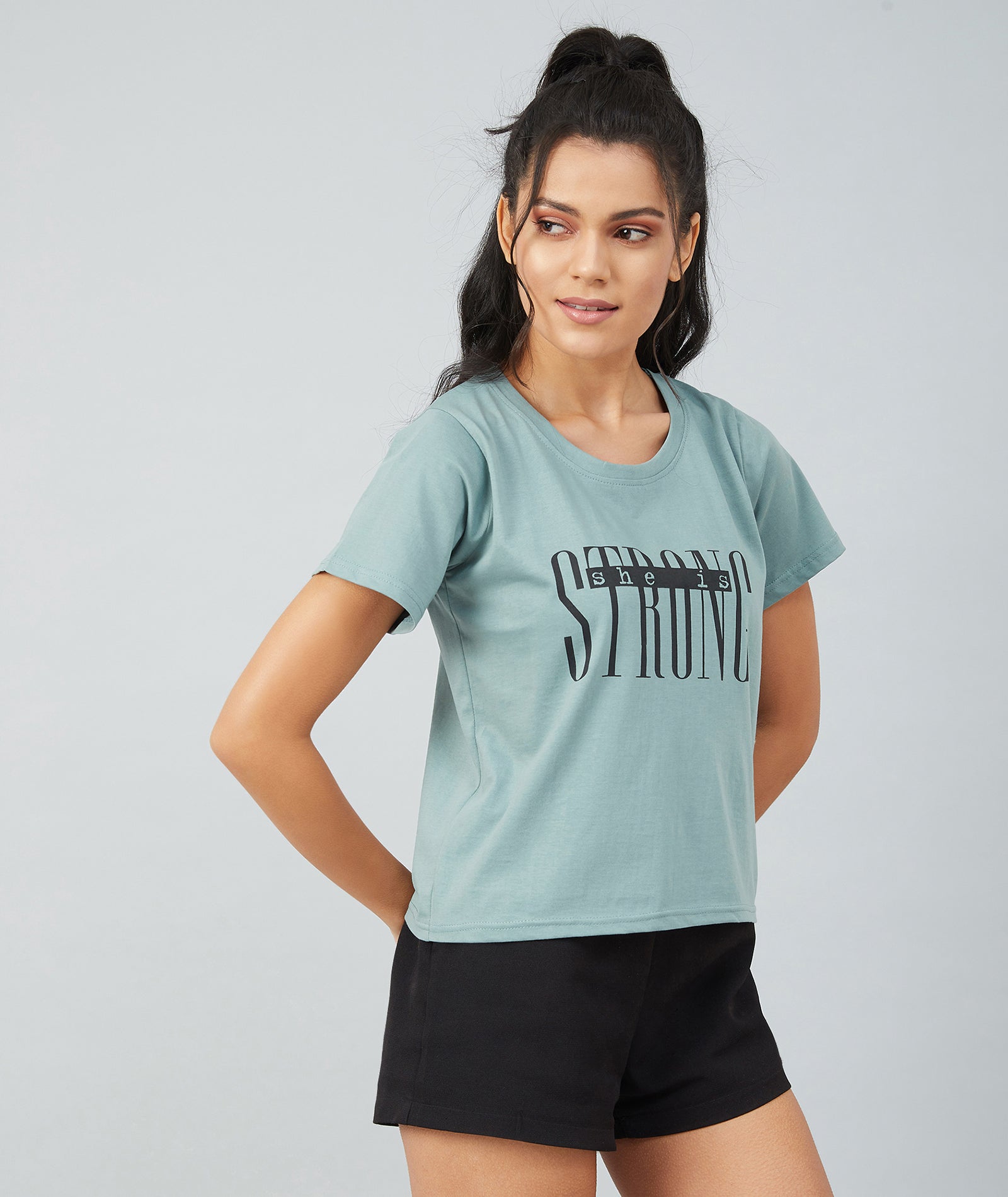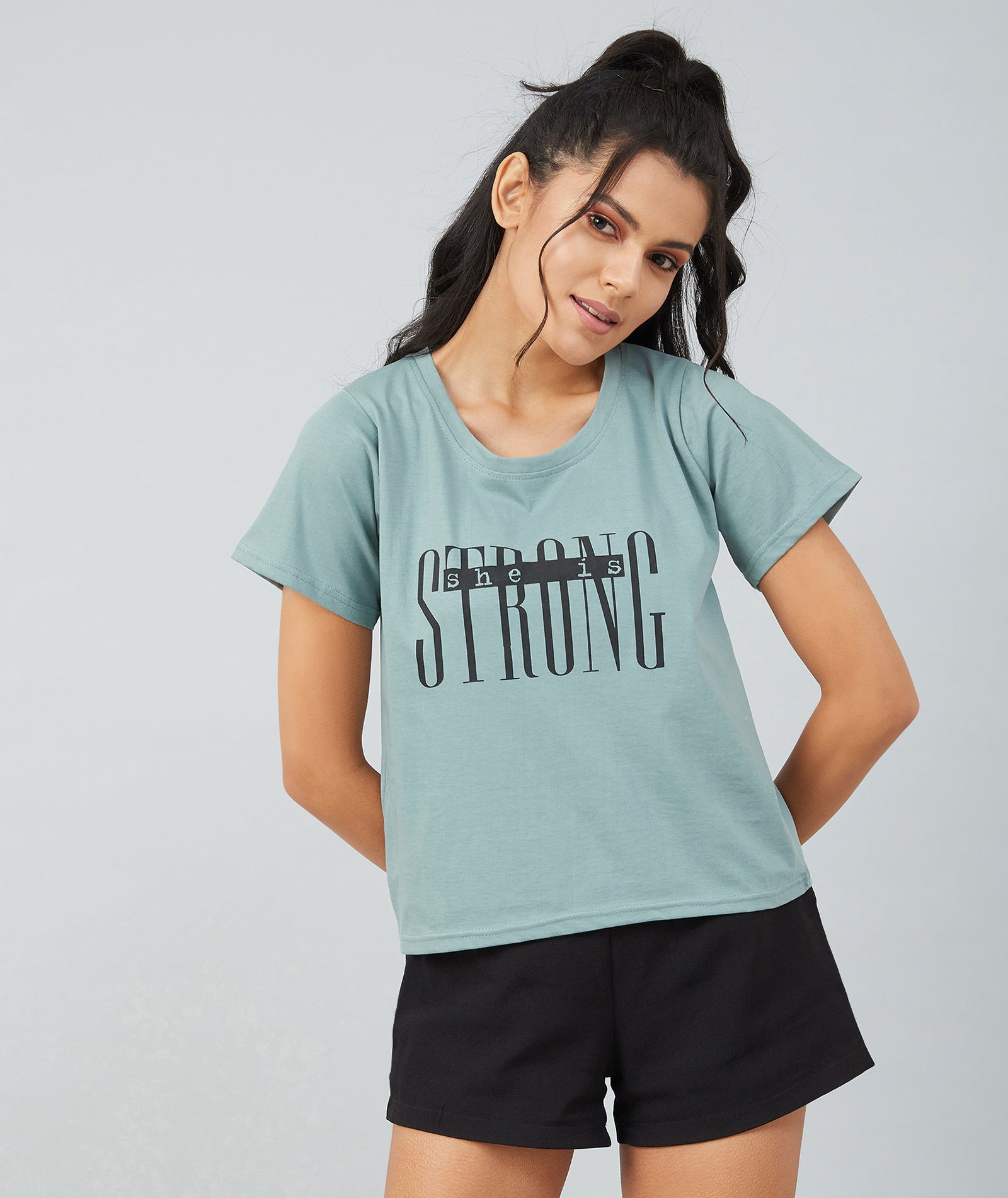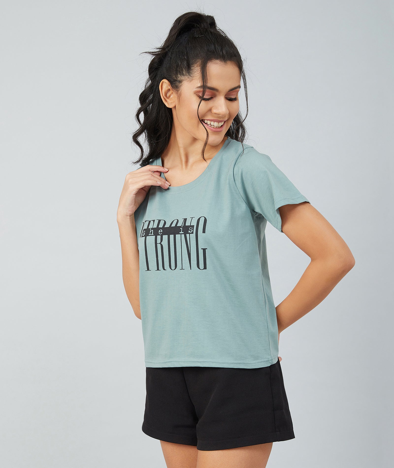 Chimpaaanzee Women Dusty Green Round Neck T-shirt