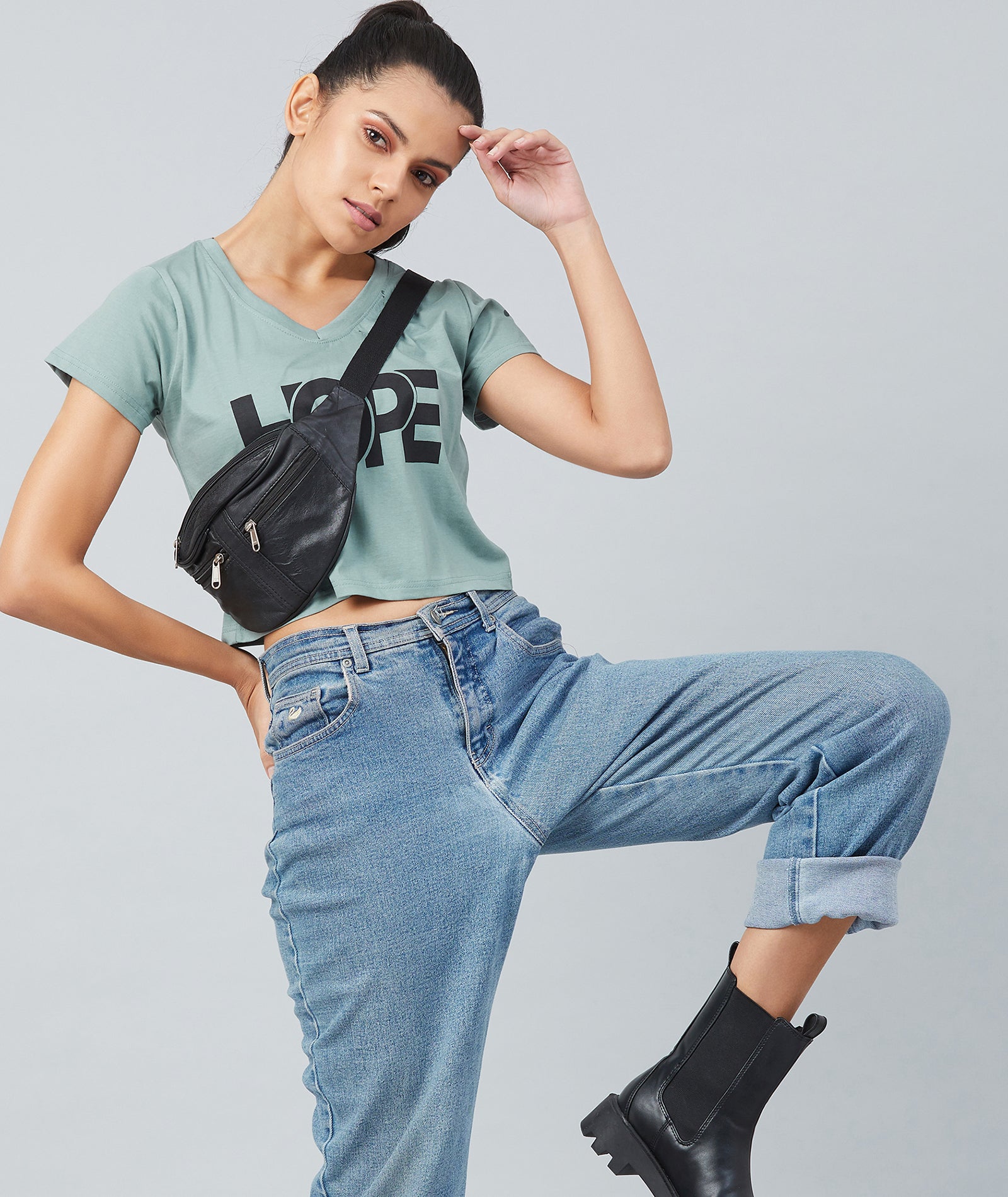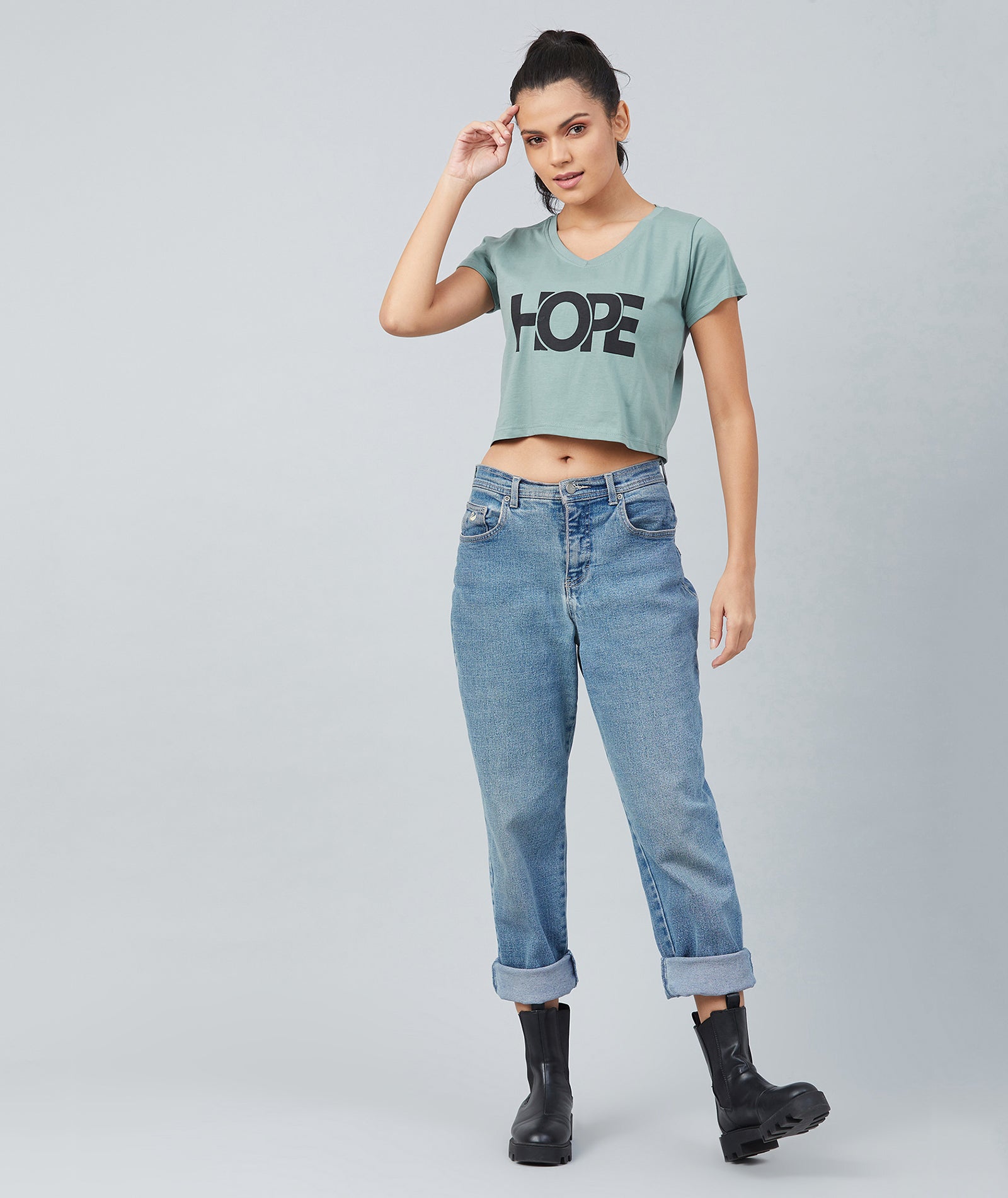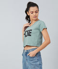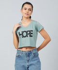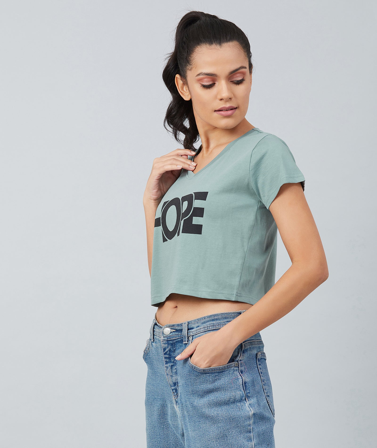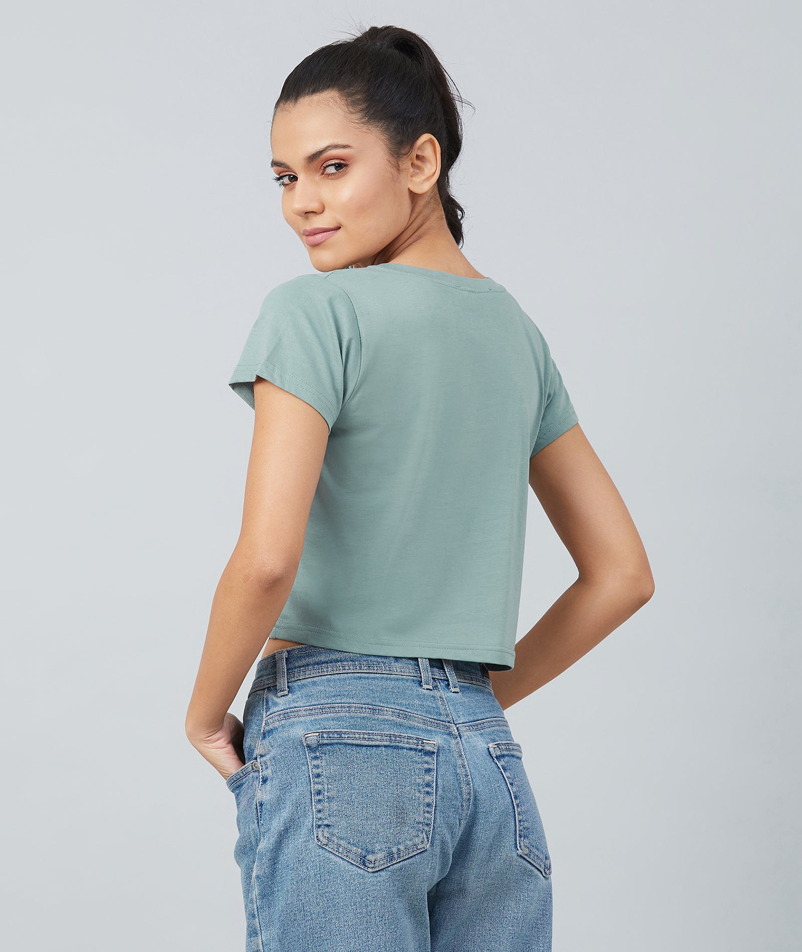 Chimpaaanzee Women Dusty Green V-Neck Crop T-shirt