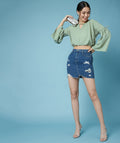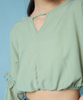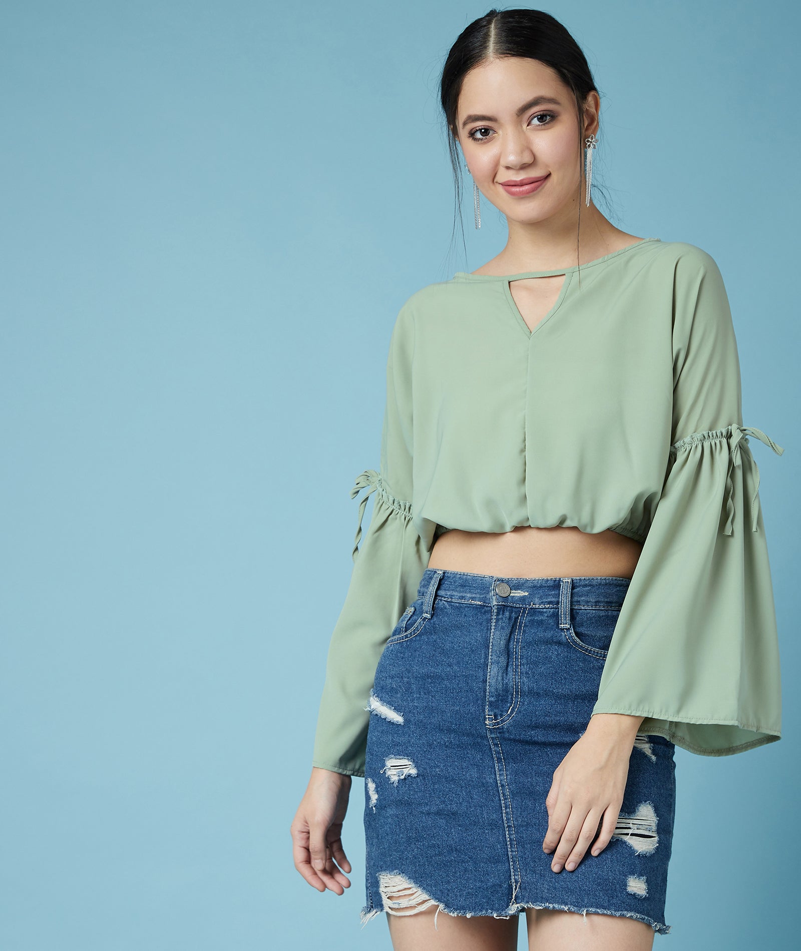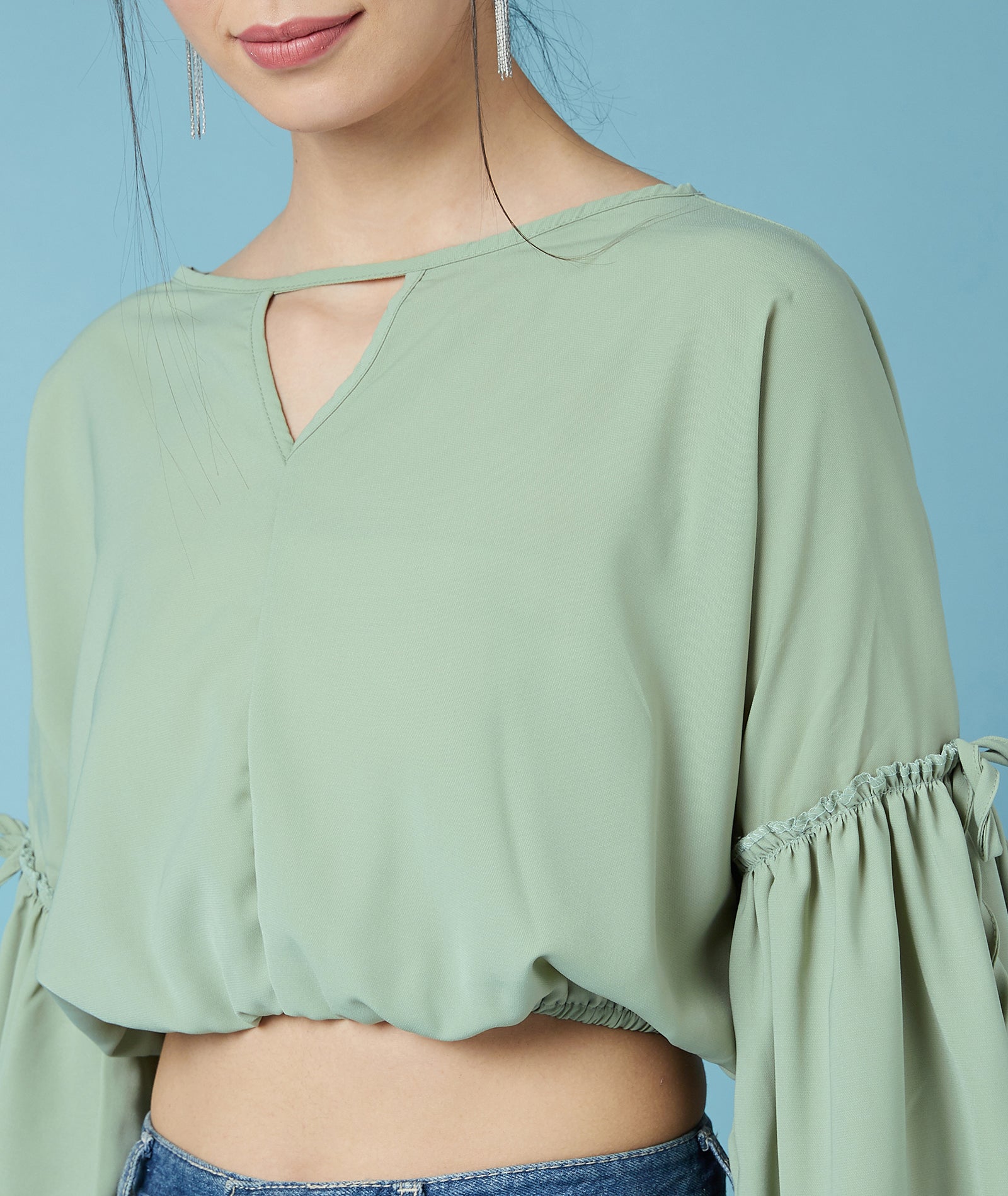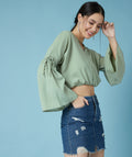 Chimpaaanzee Women Flared Sleeve Crop Olive Top