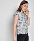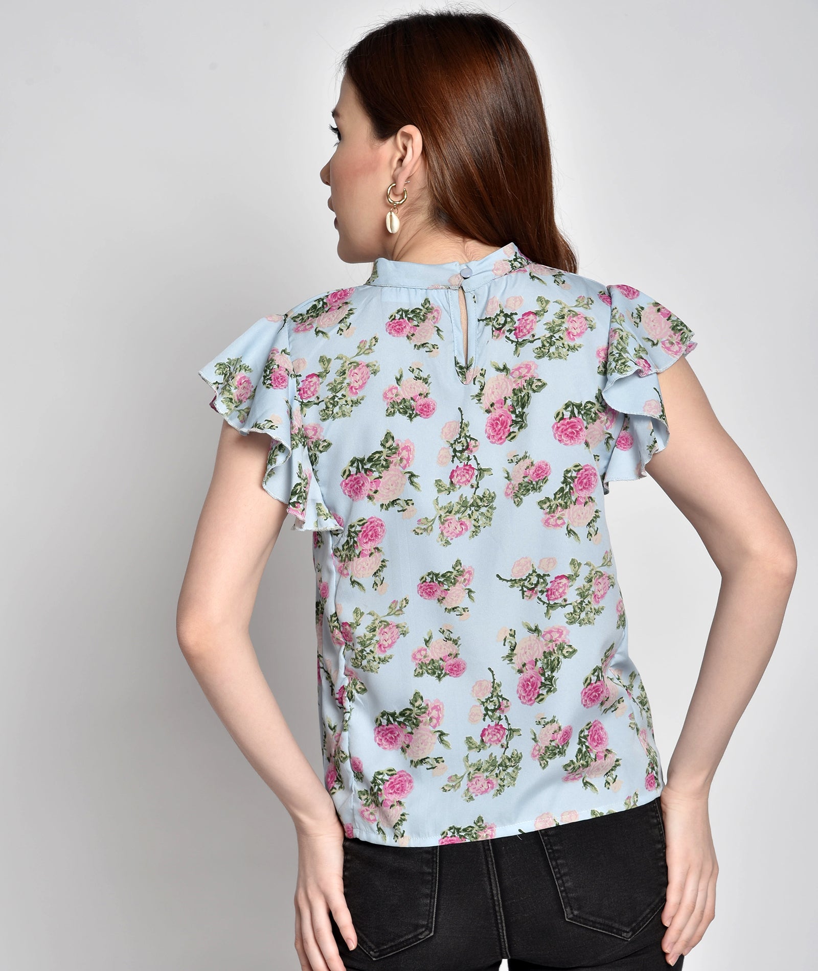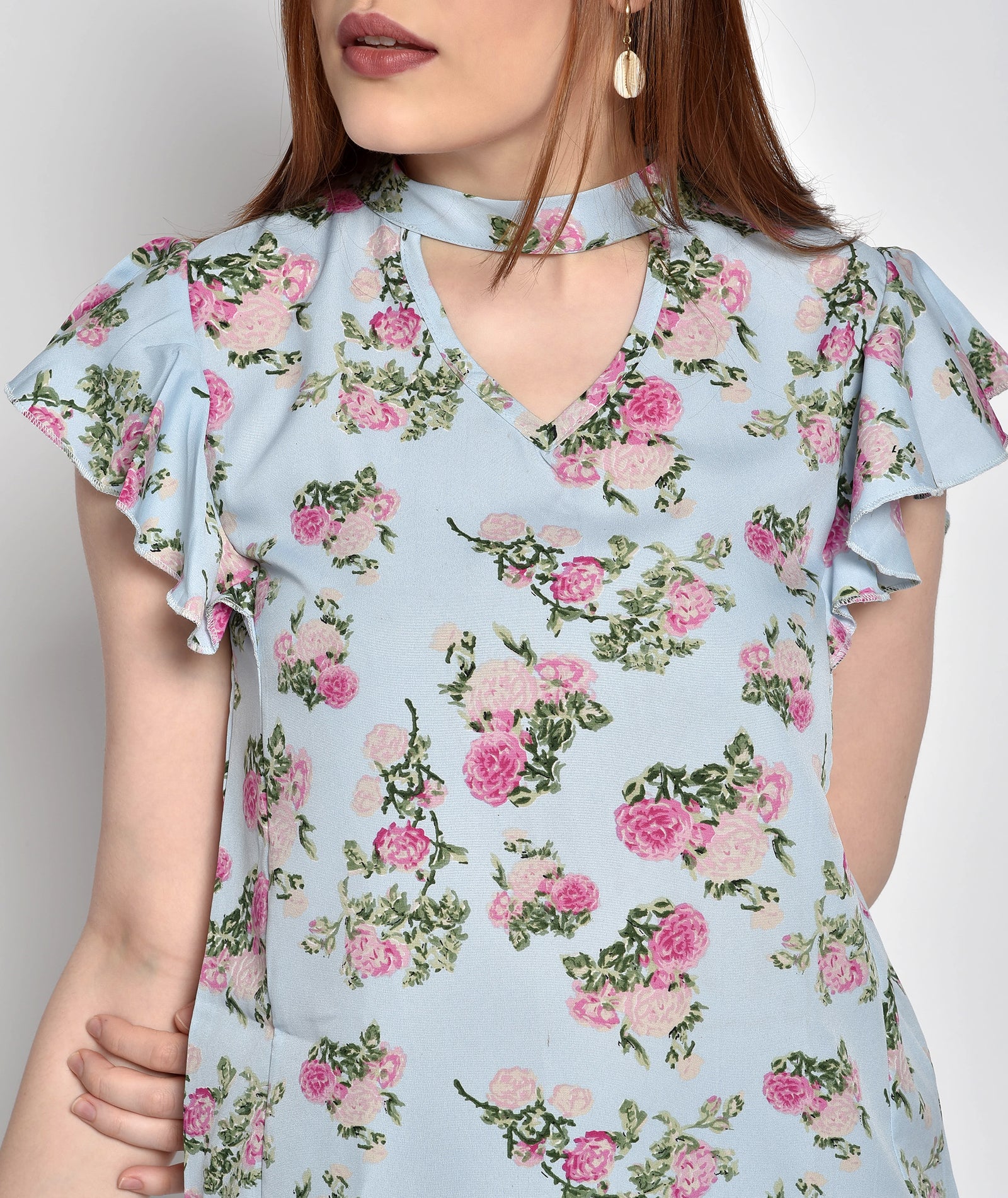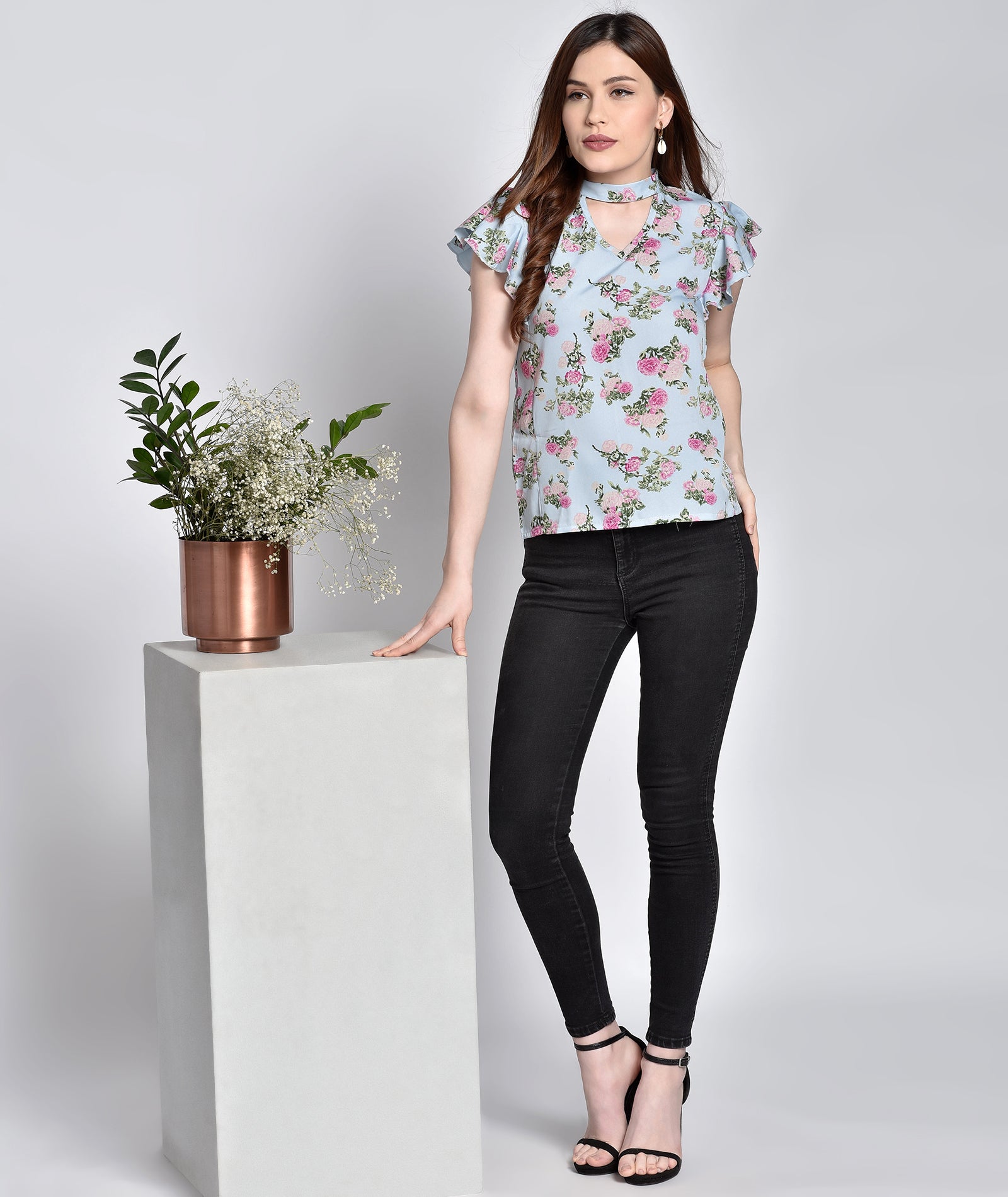 Chimpaaanzee Women Flower Printed Choker Neck Purple Top