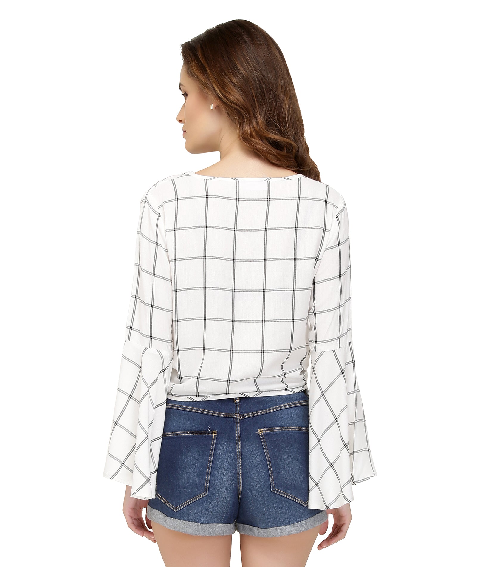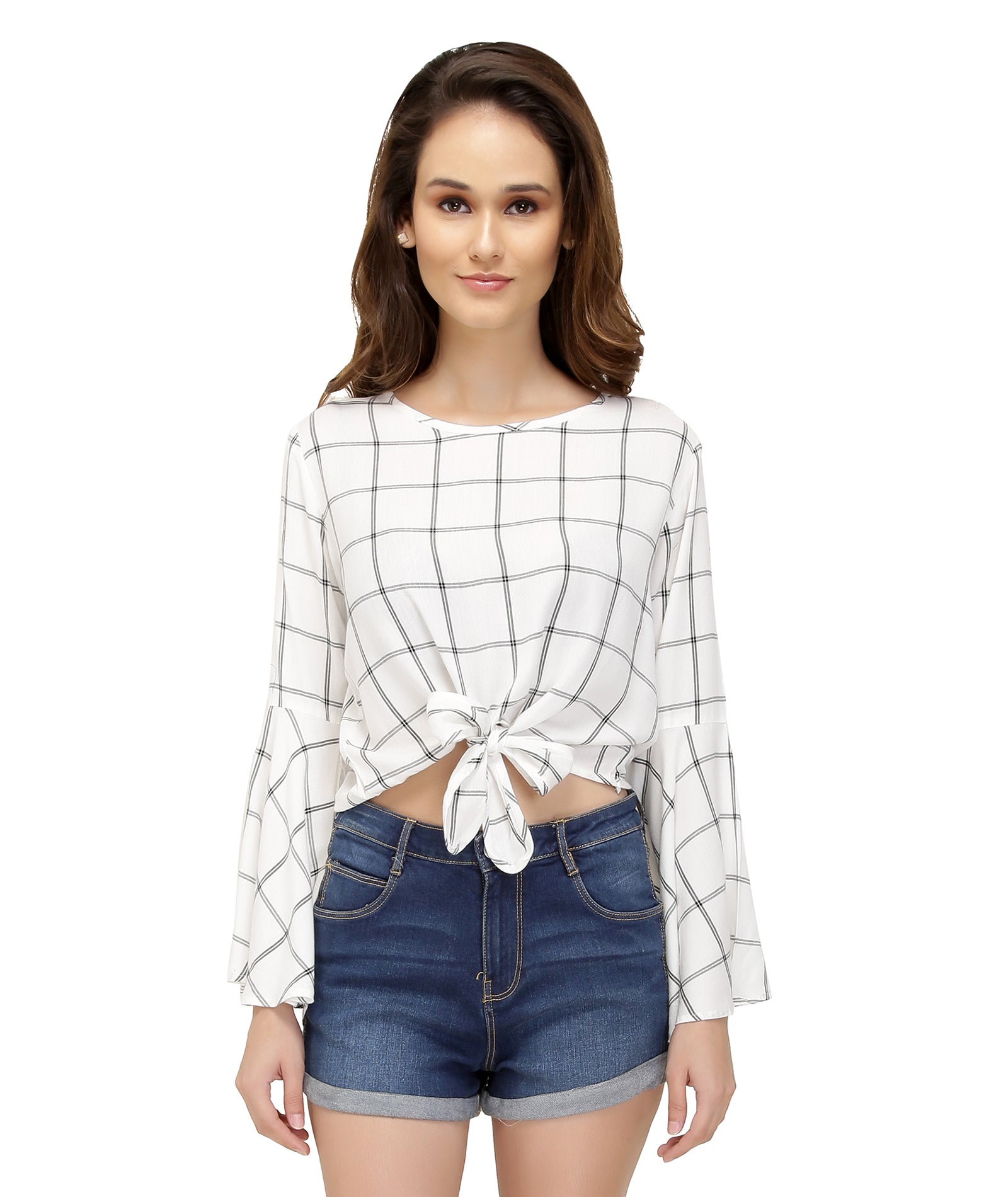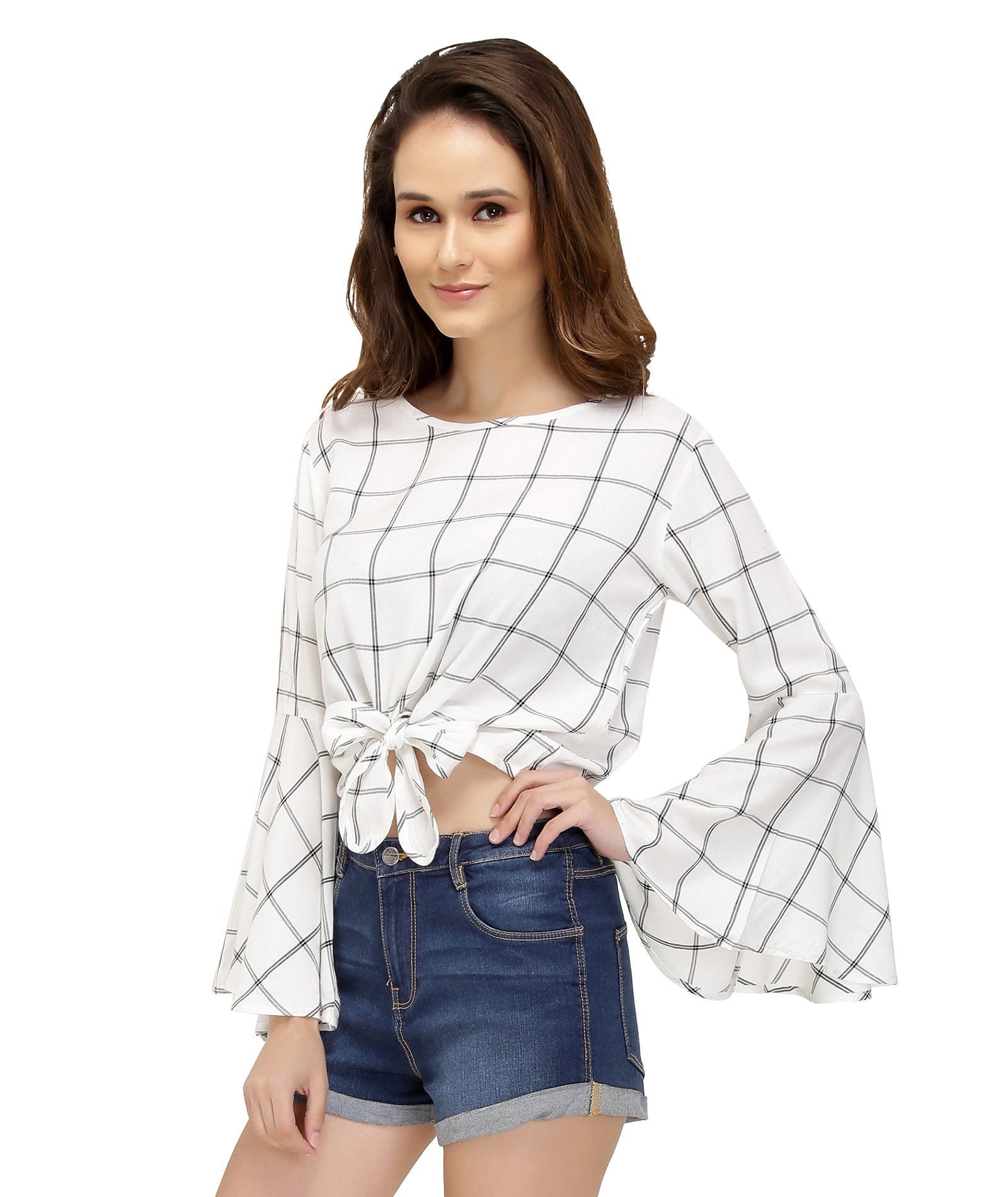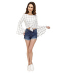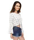Chimpaaanzee Women Front Knot Bell Sleeve White Top