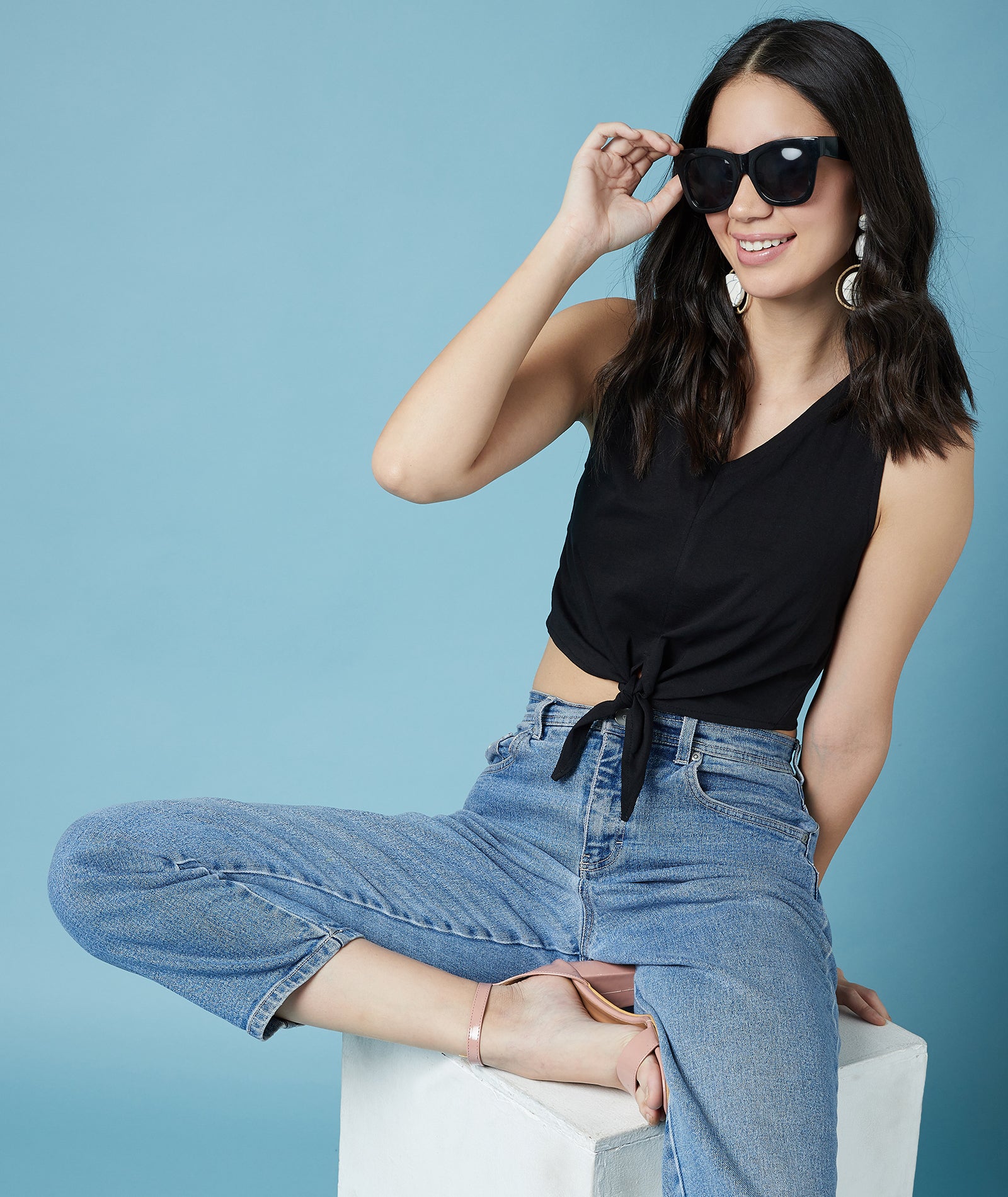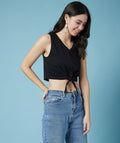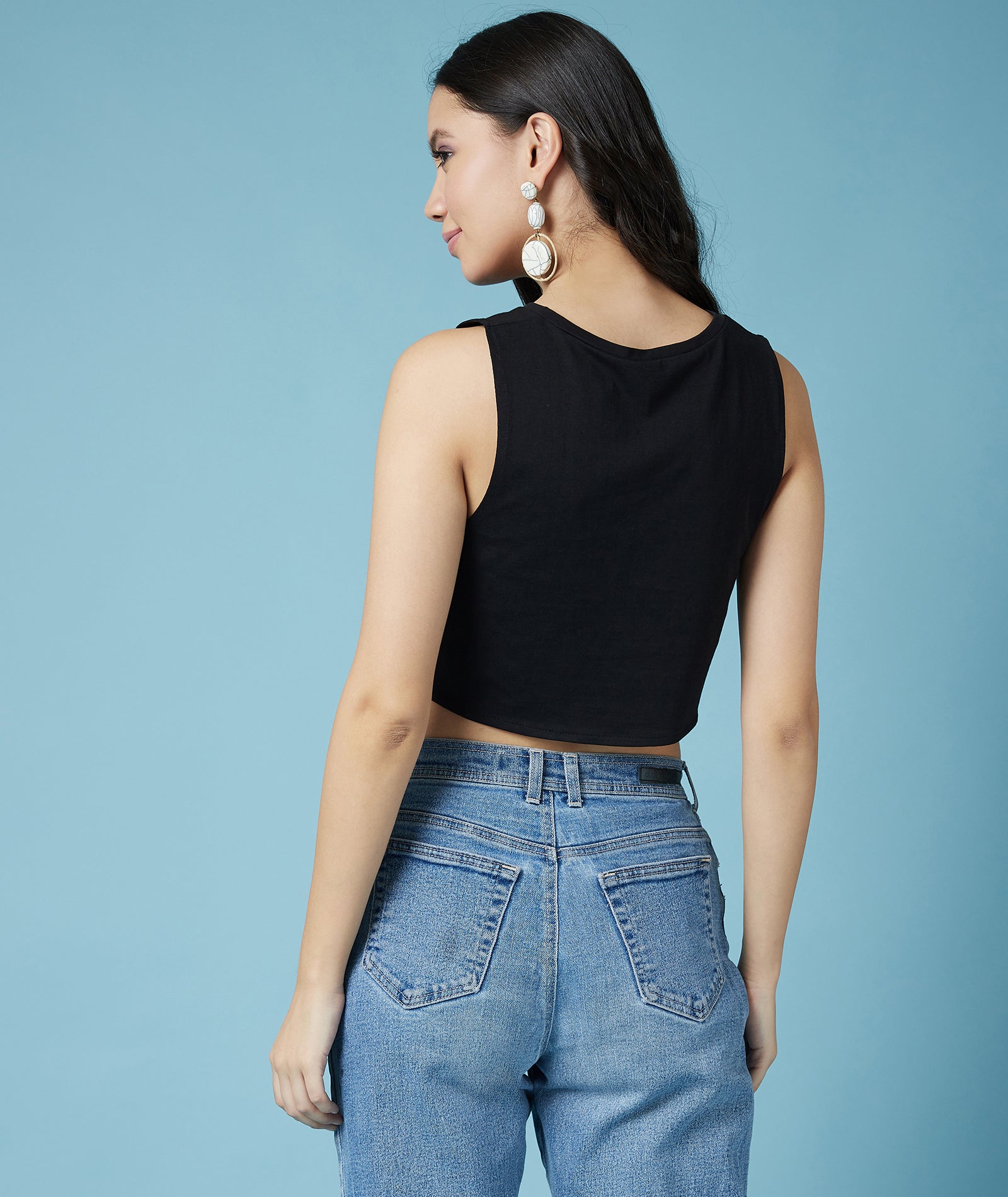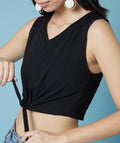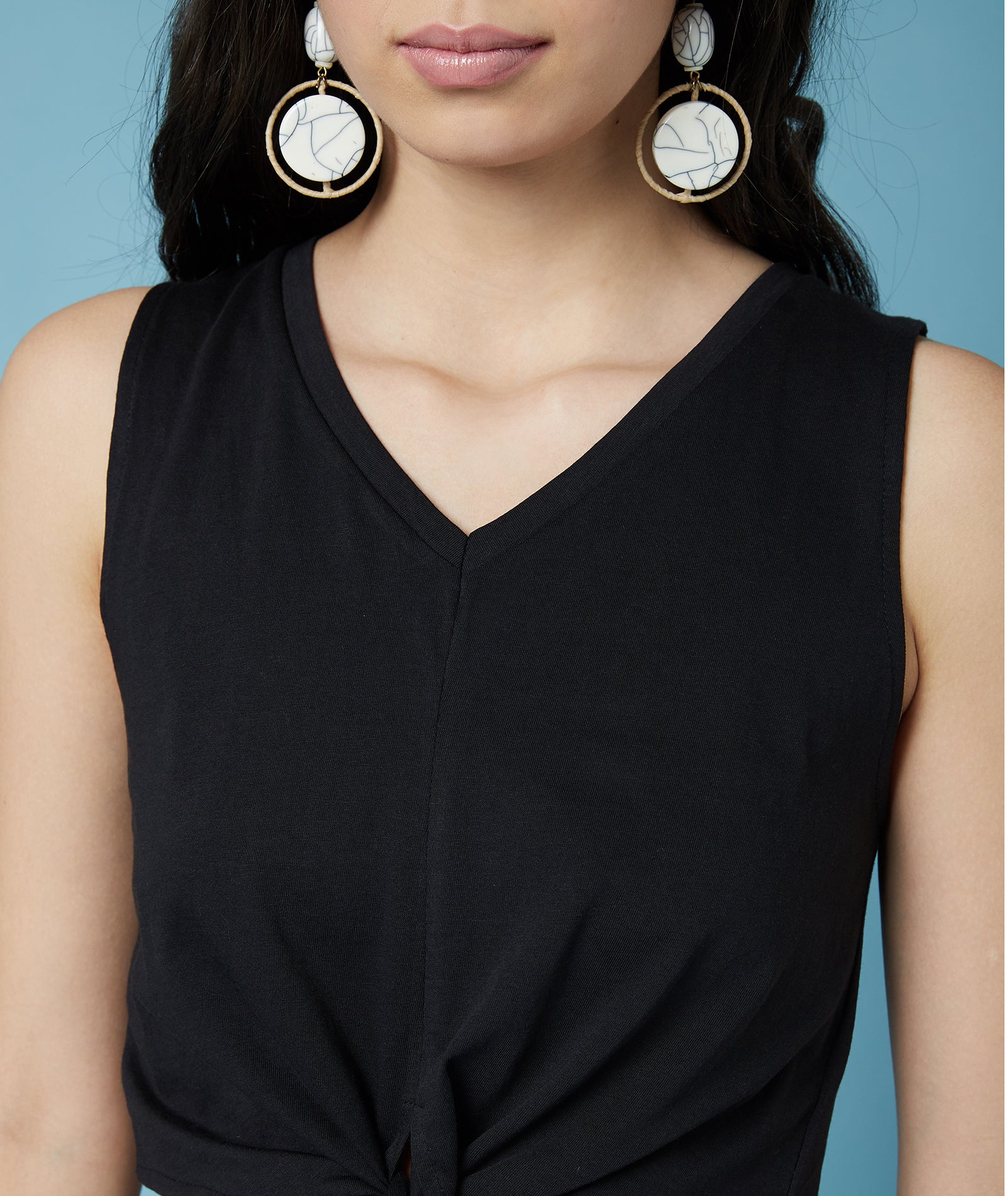 Chimpaaanzee Women Front Knot Cotton Black Tee