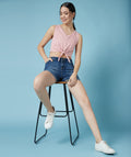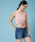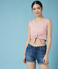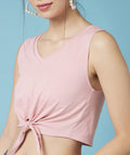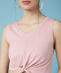 Chimpaaanzee Women Front Knot Cotton Pink Tee