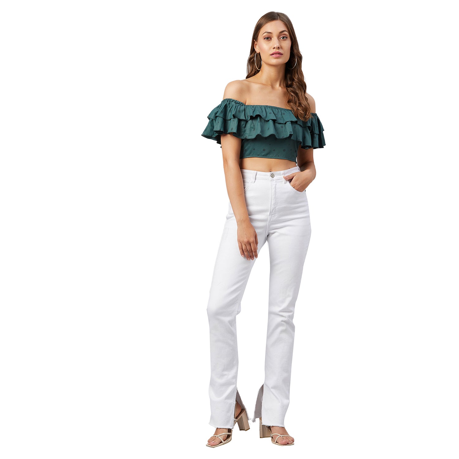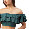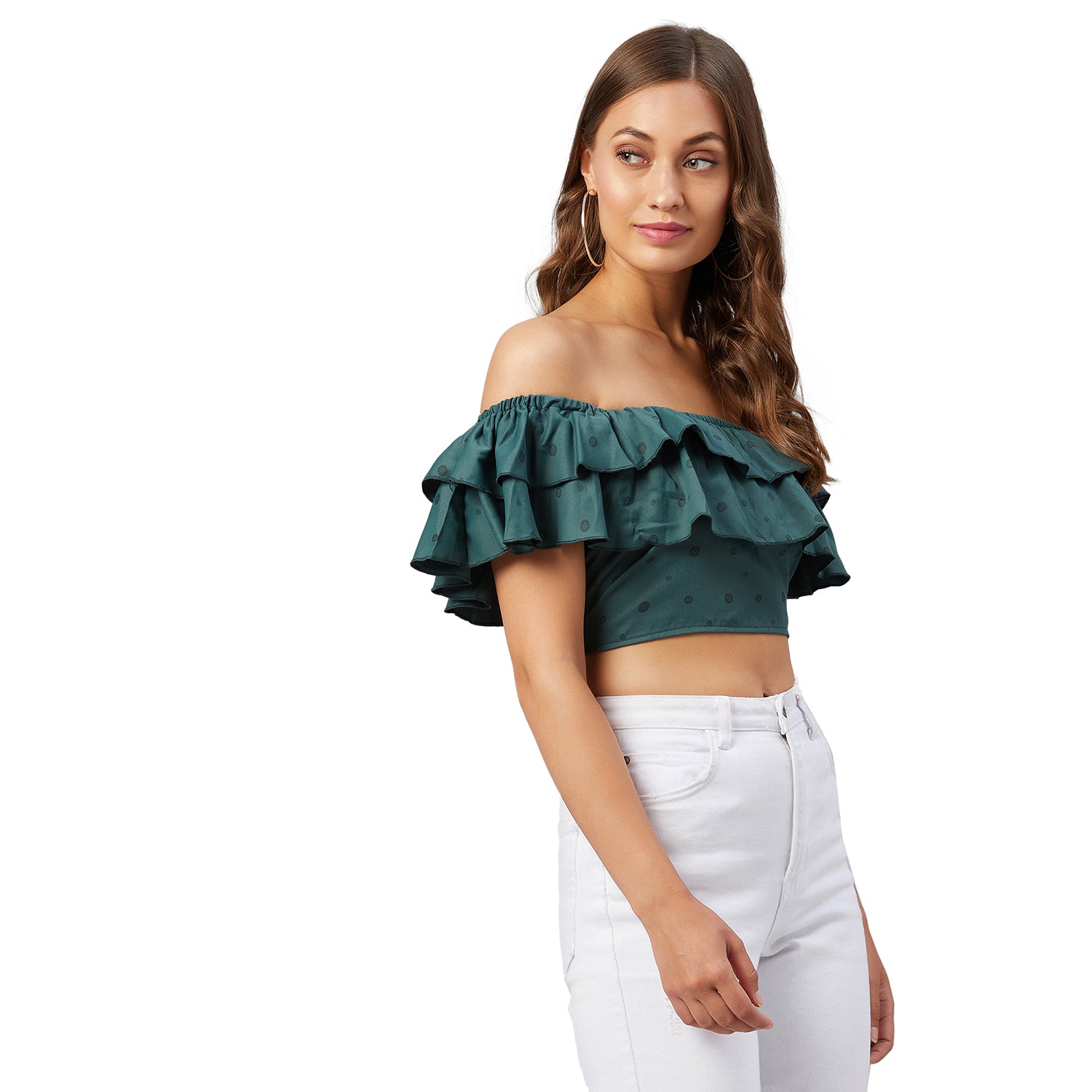 Chimpaaanzee Women Green Doted Ruffled Crop Top