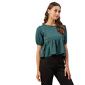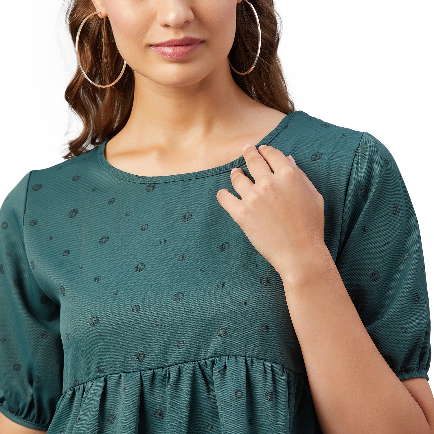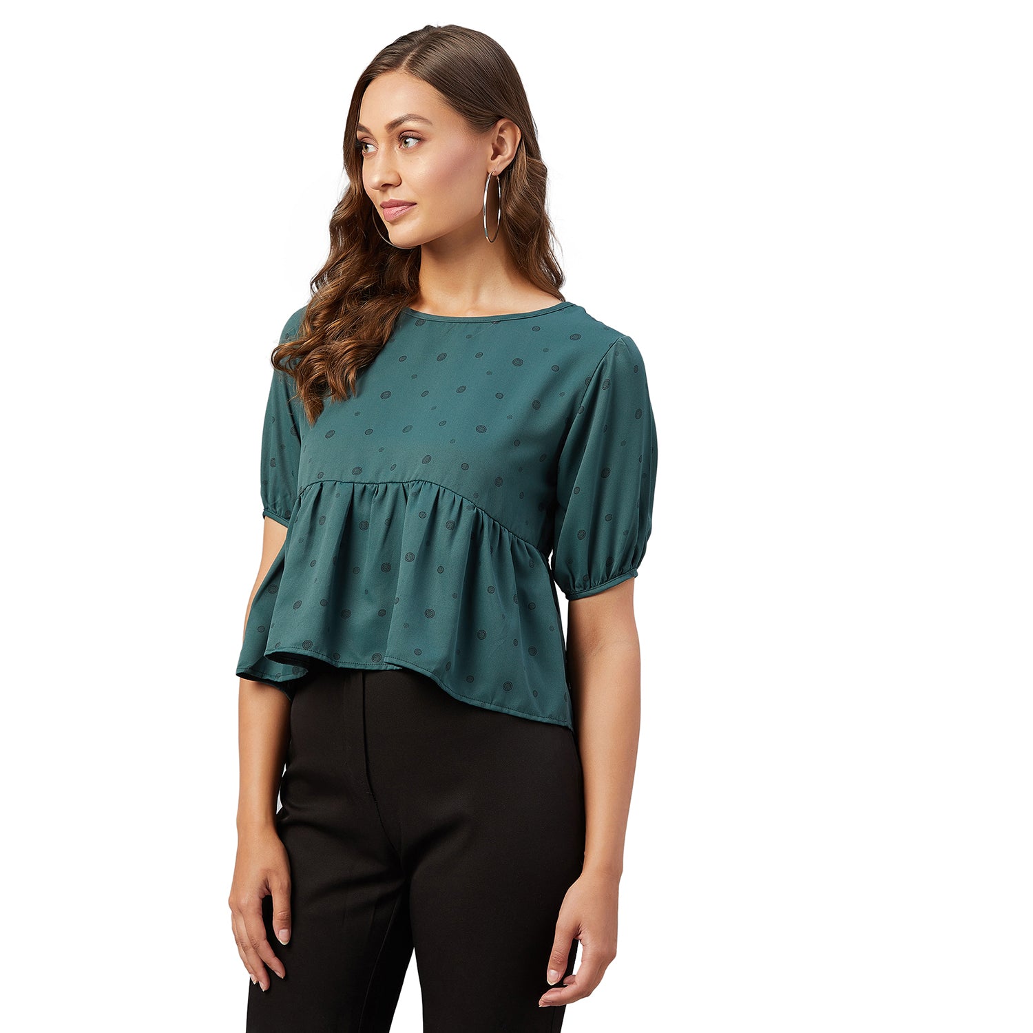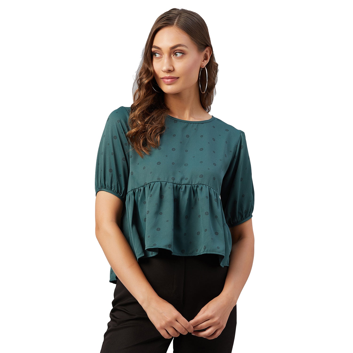 Chimpaaanzee Women Green Doted Ruffled Style Top
