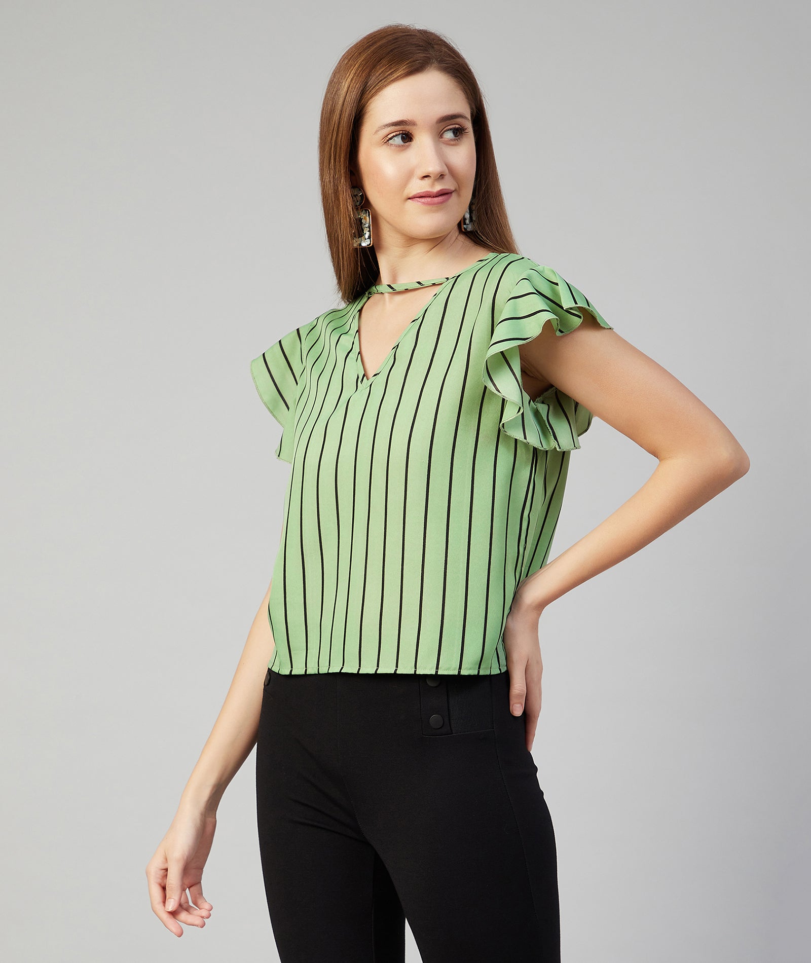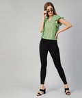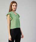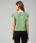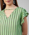 Chimpaaanzee Women Green Striped Crepe Ruffled Top