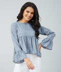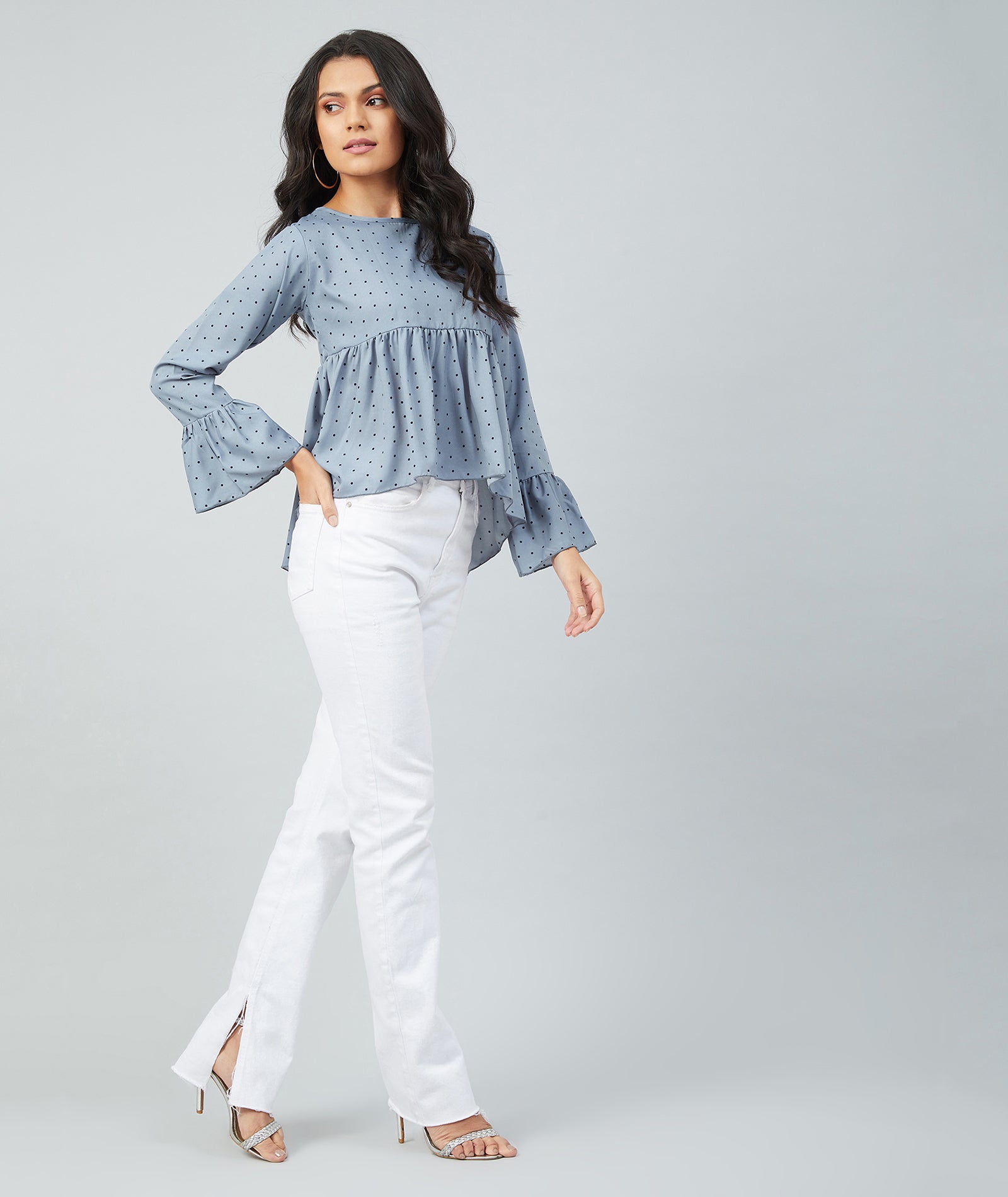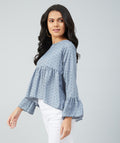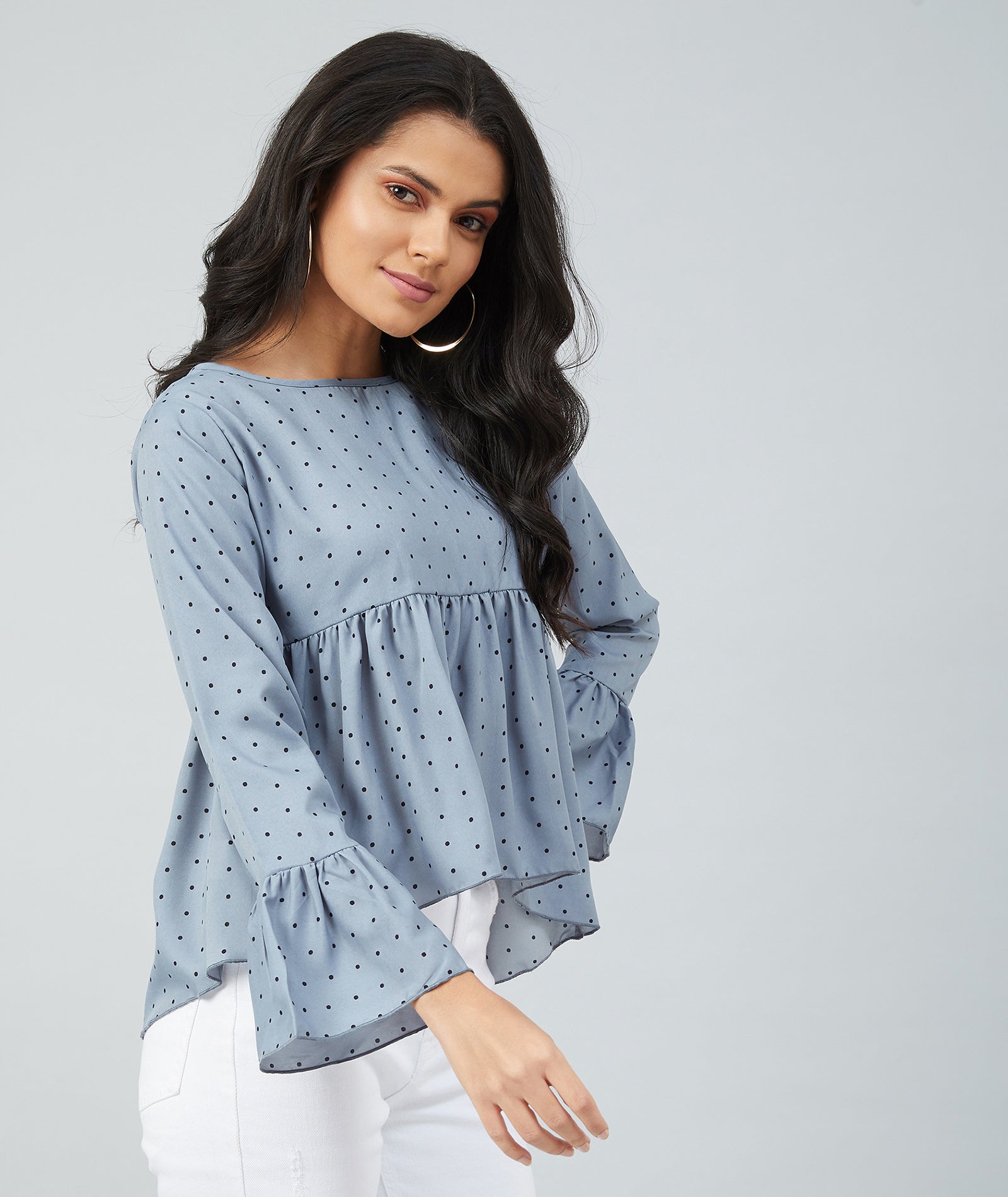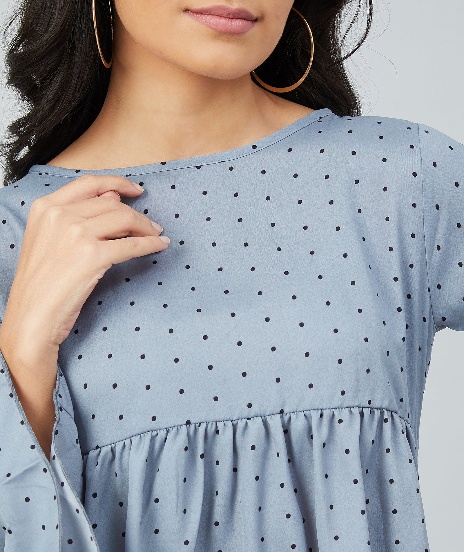 Chimpaaanzee women Grey Crepe Polka Doted Full Sleeve Top