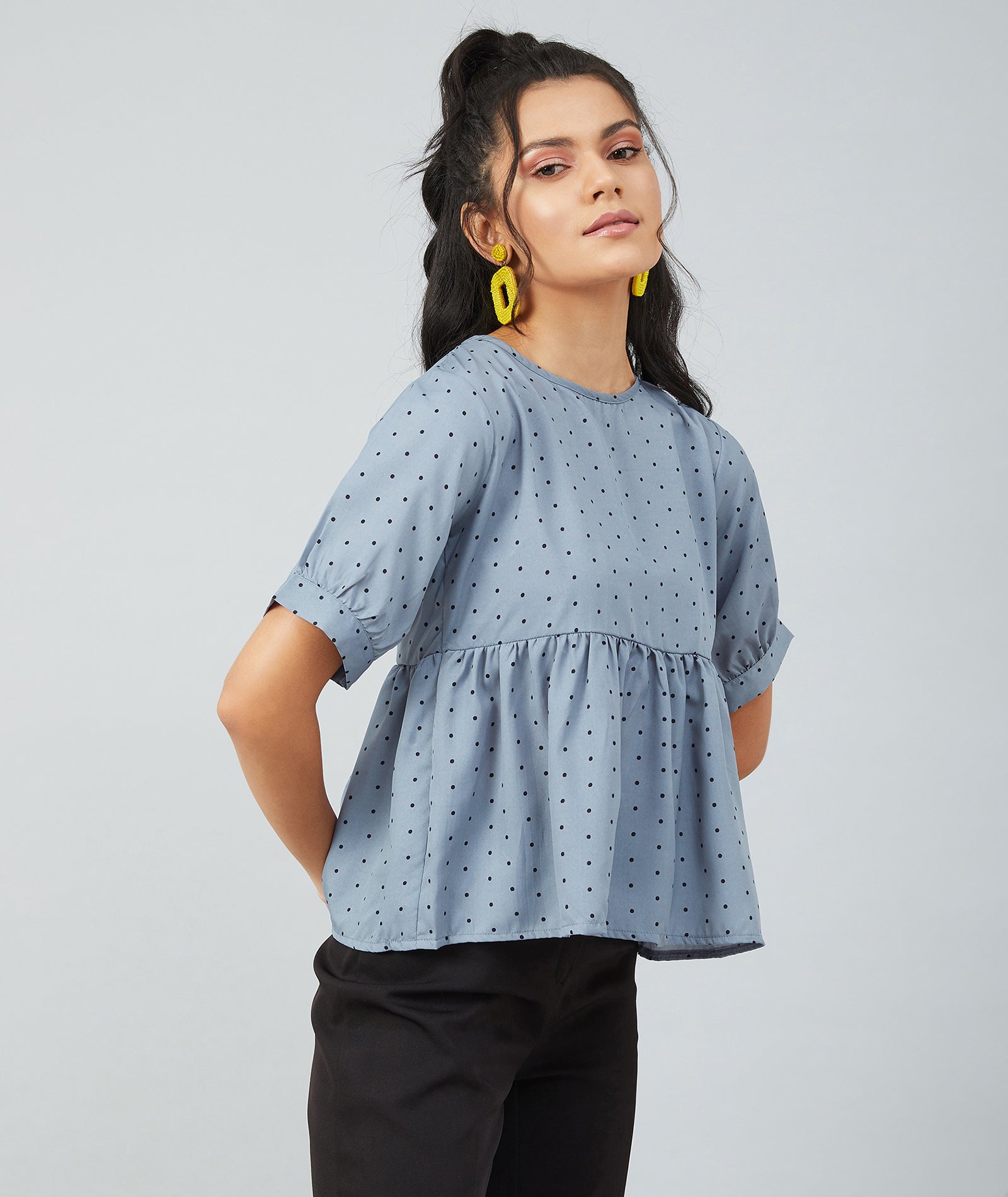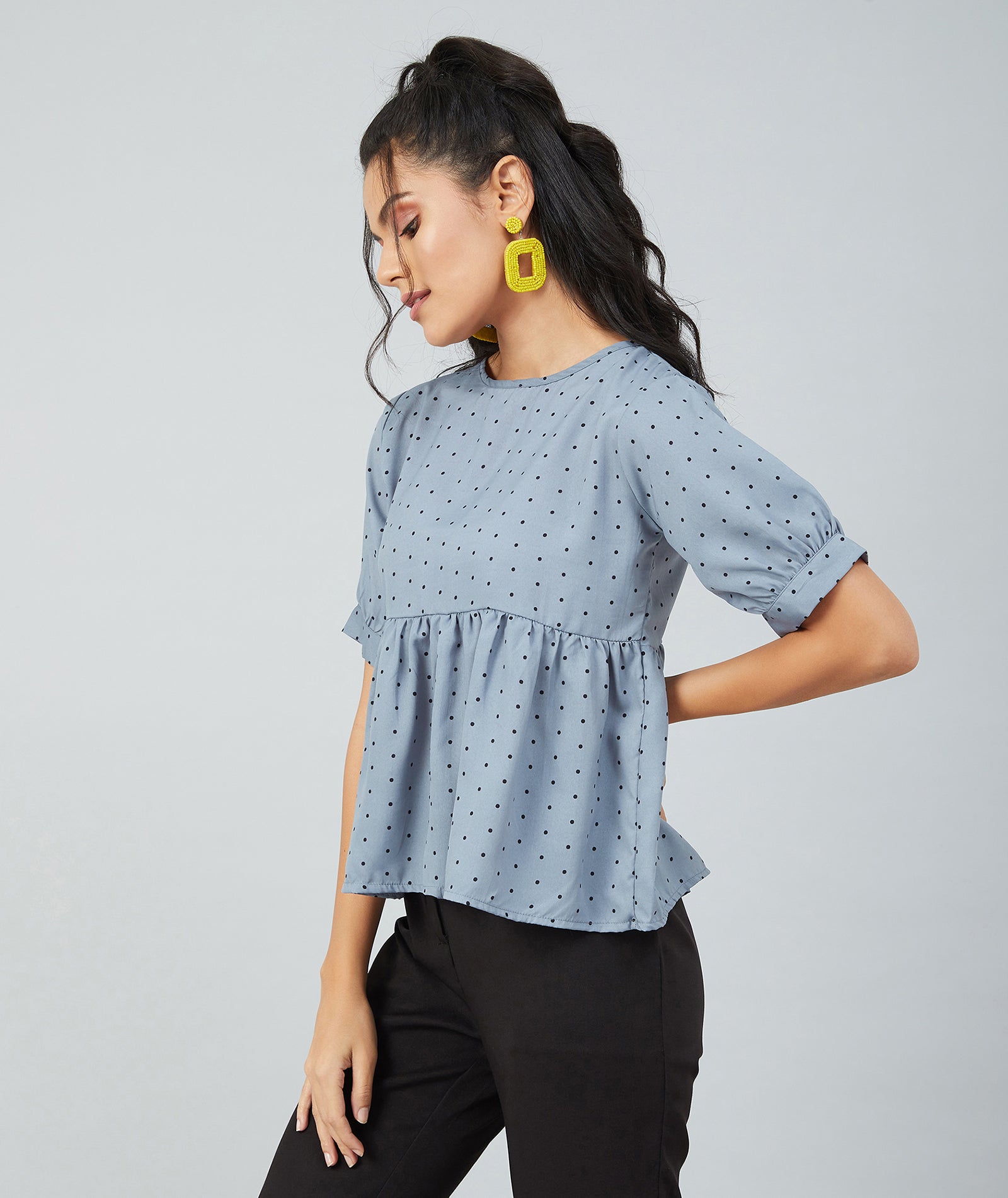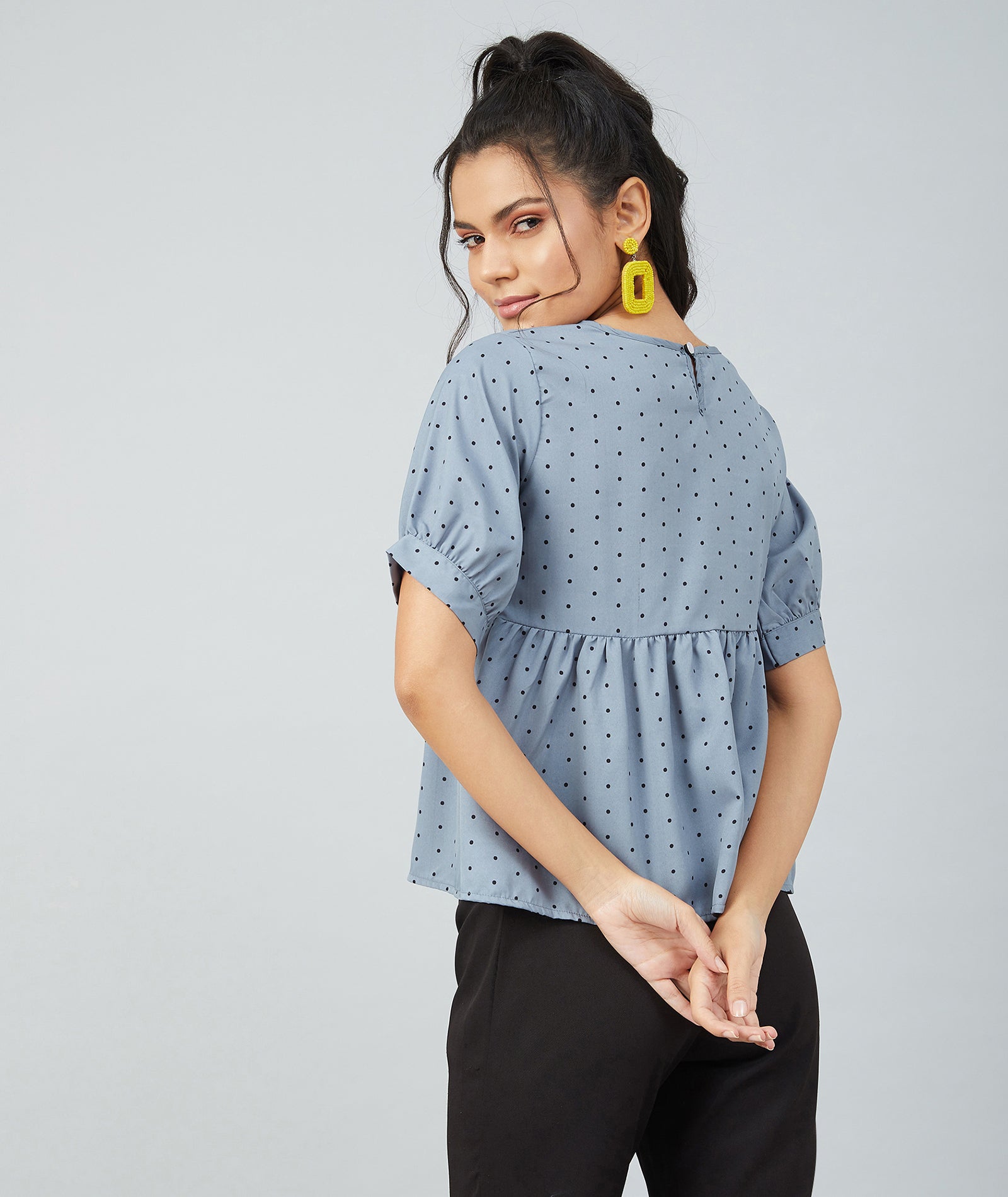 Chimpaaanzee women Grey Crepe Polka Doted Half Sleeve Style Top